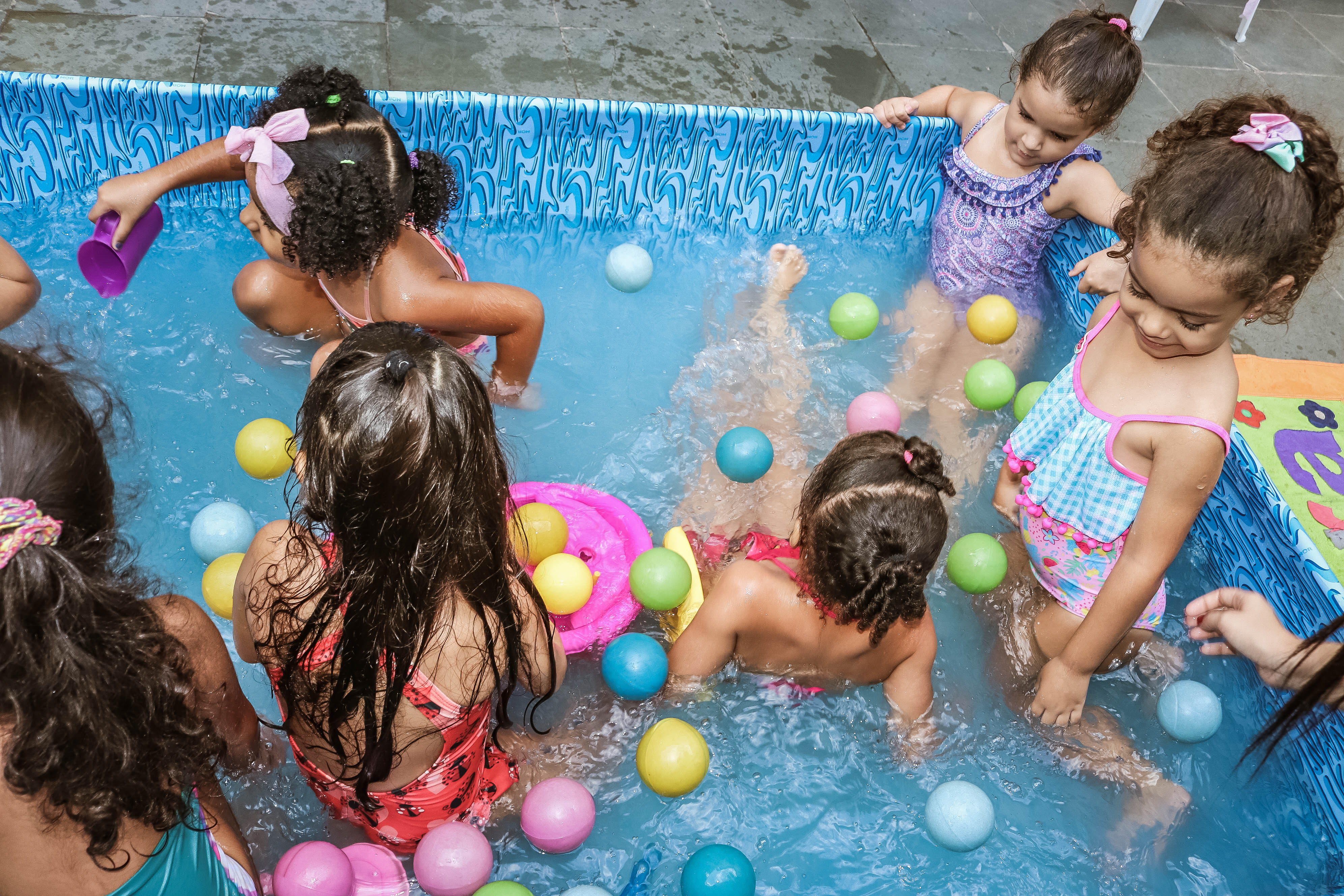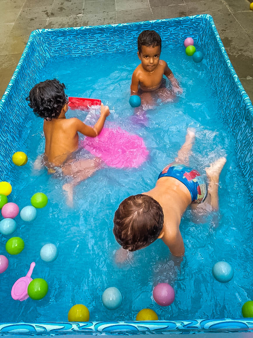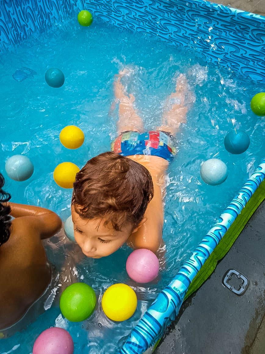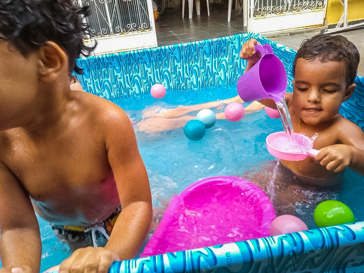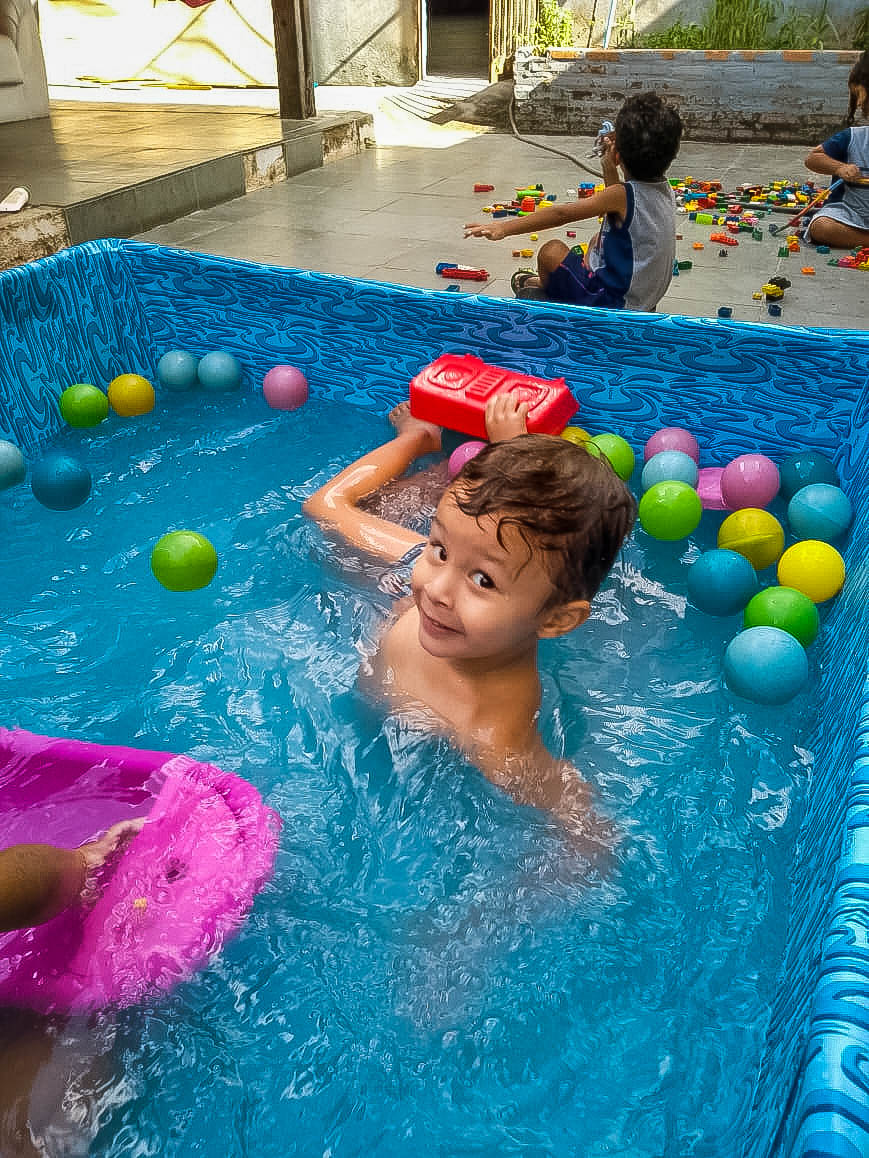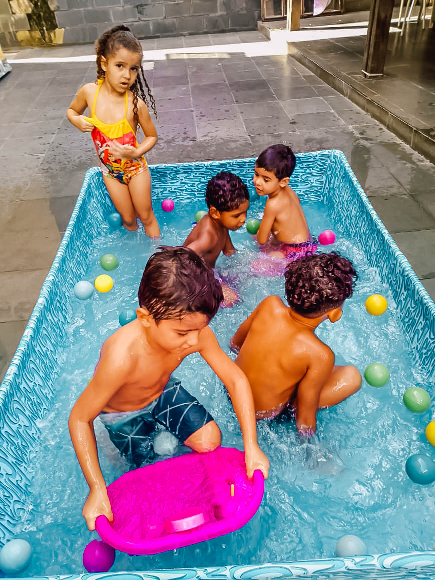 Pensando nisso, o banho de piscina propicia um excelente momento para o desenvolvimento do brincar e do criar.
