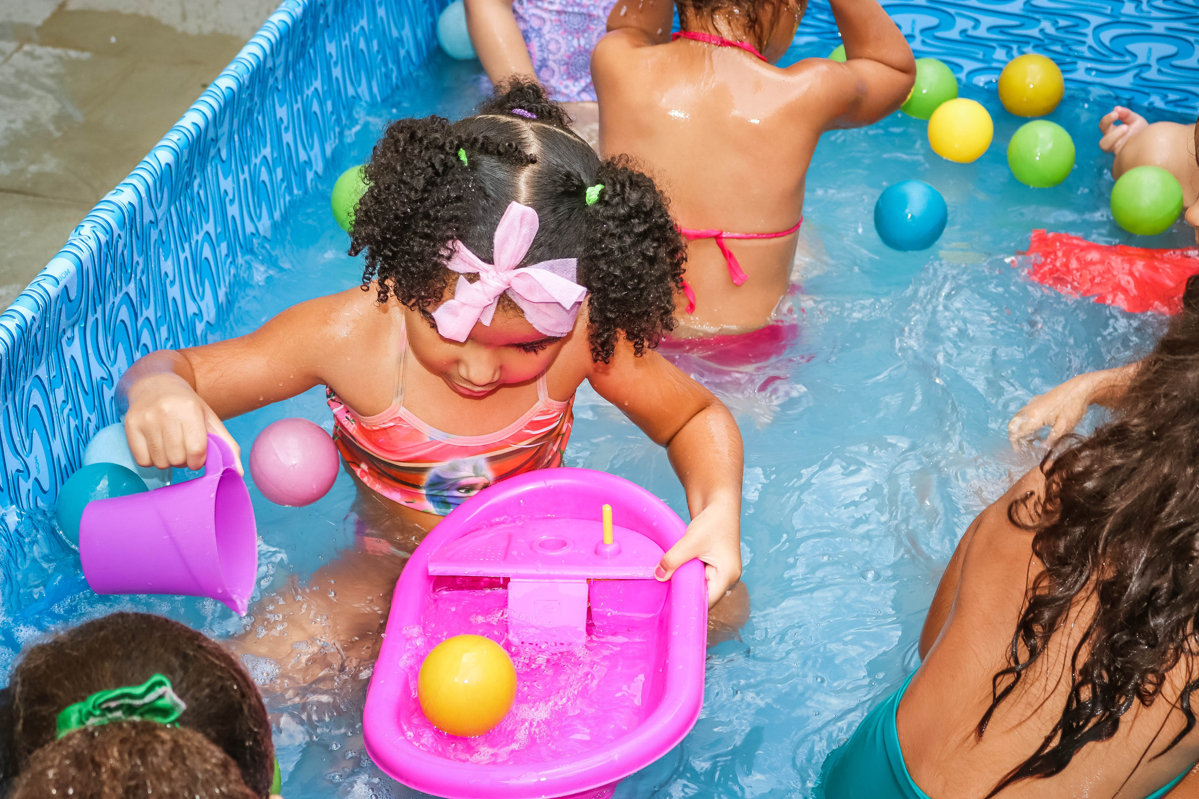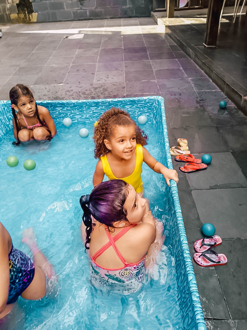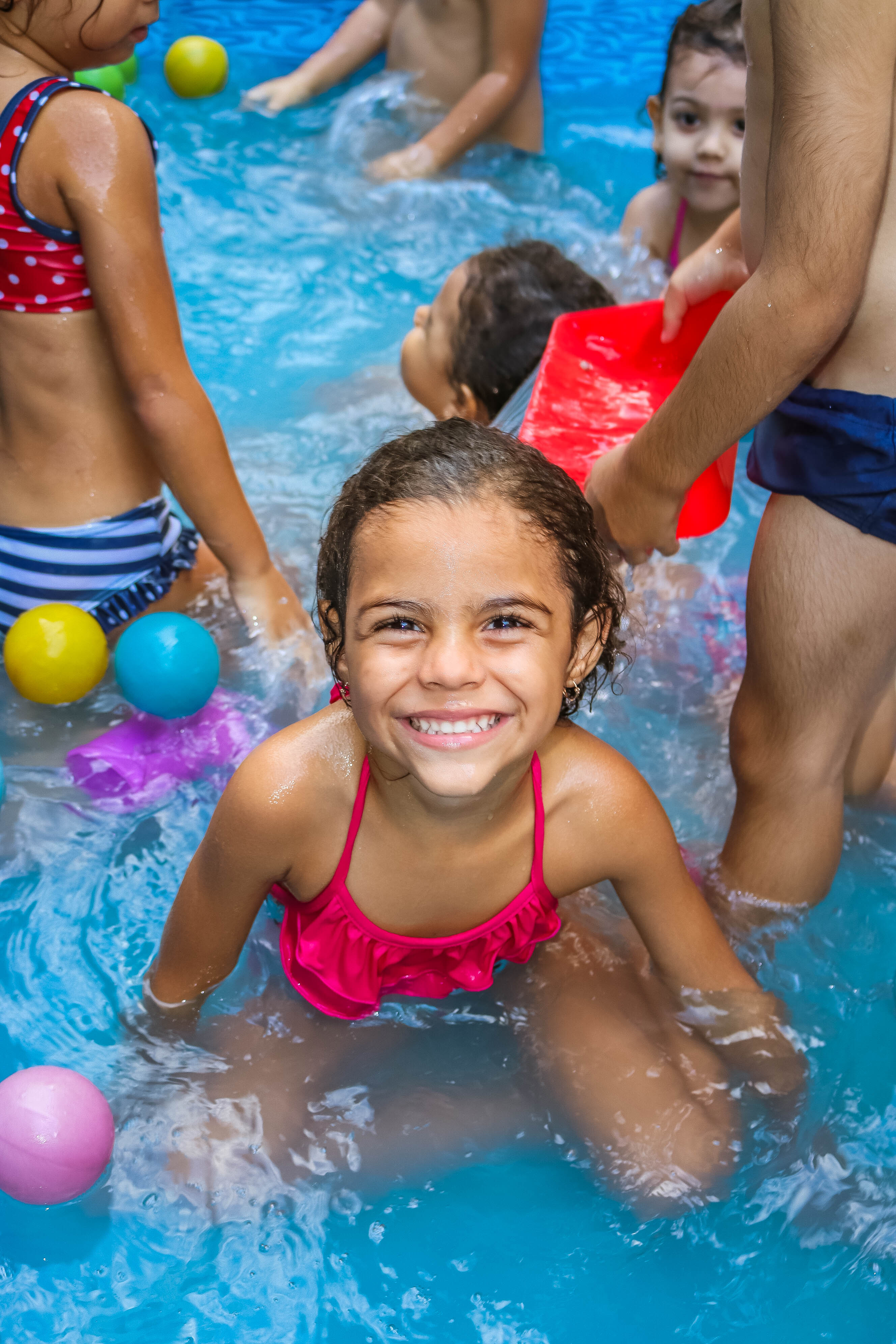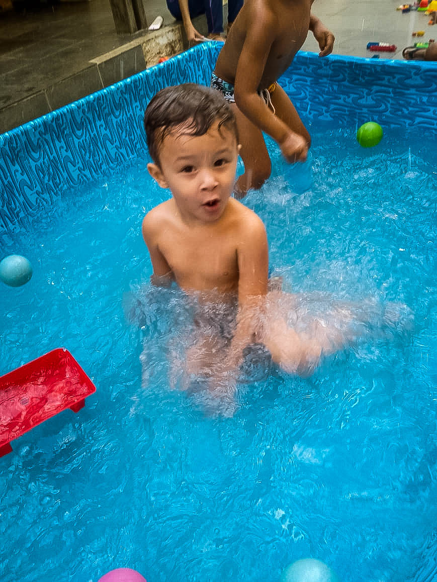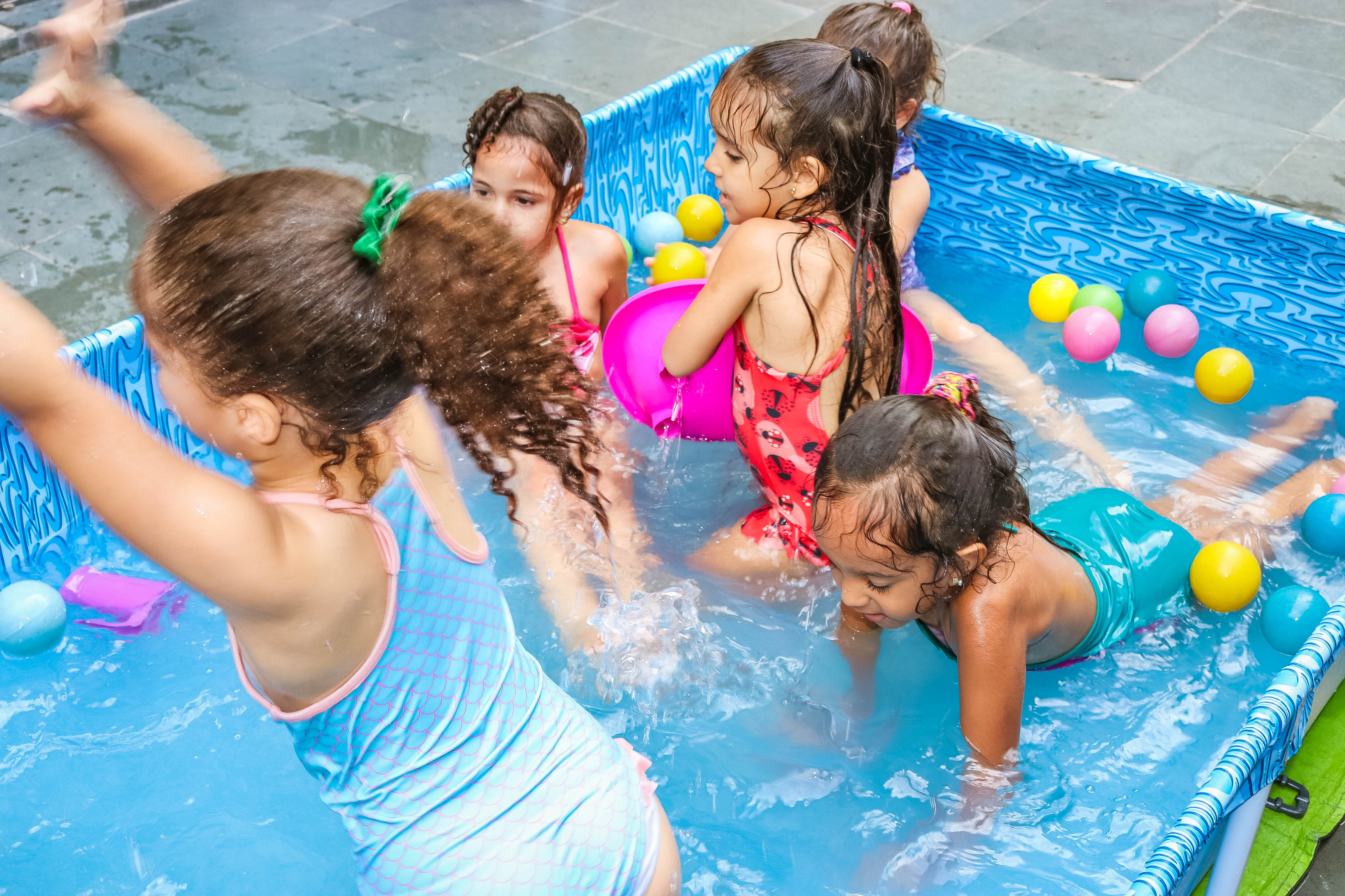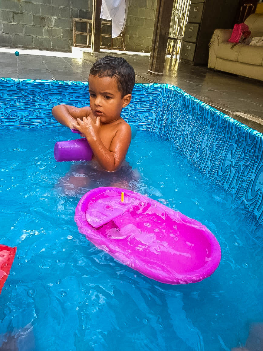 Pensando nisso, o banho de piscina propicia um excelente momento para o desenvolvimento do brincar e do criar.
