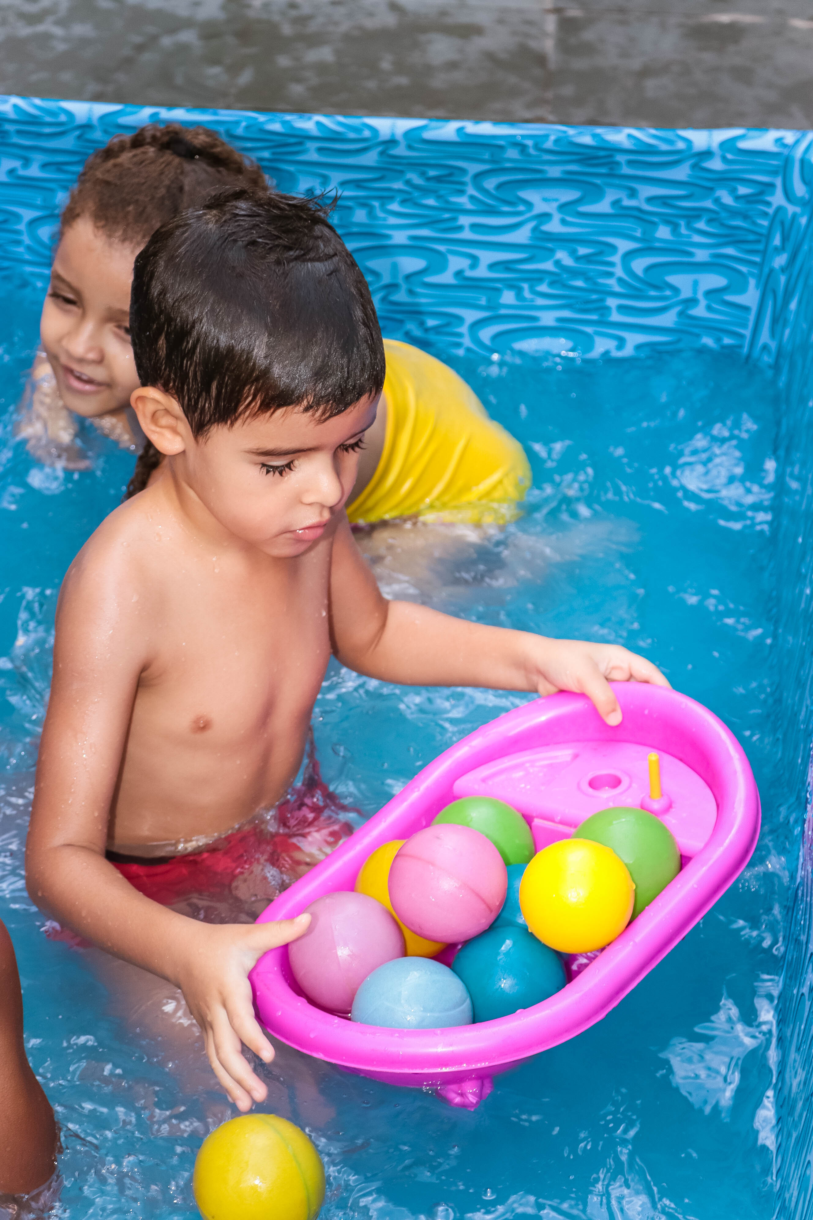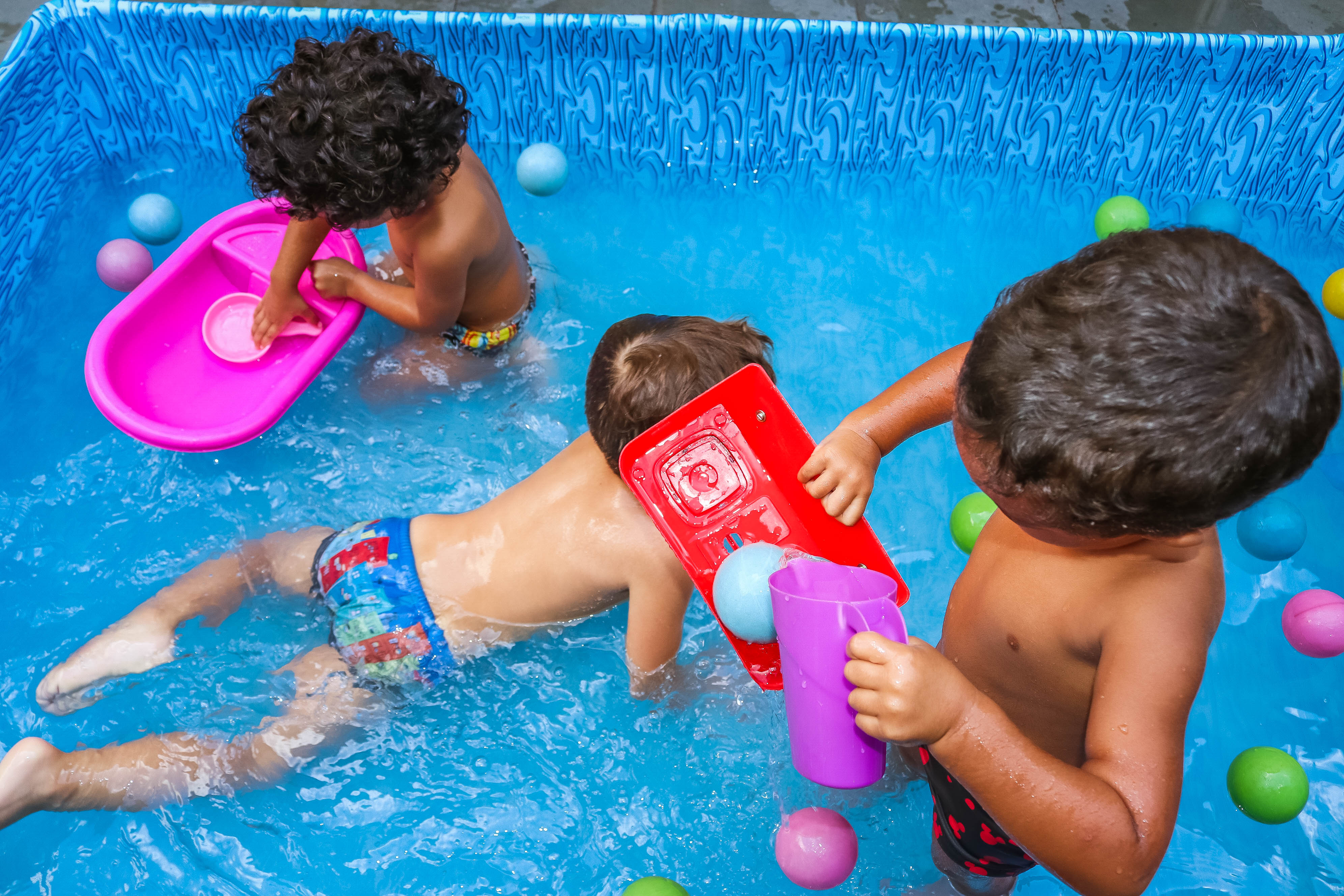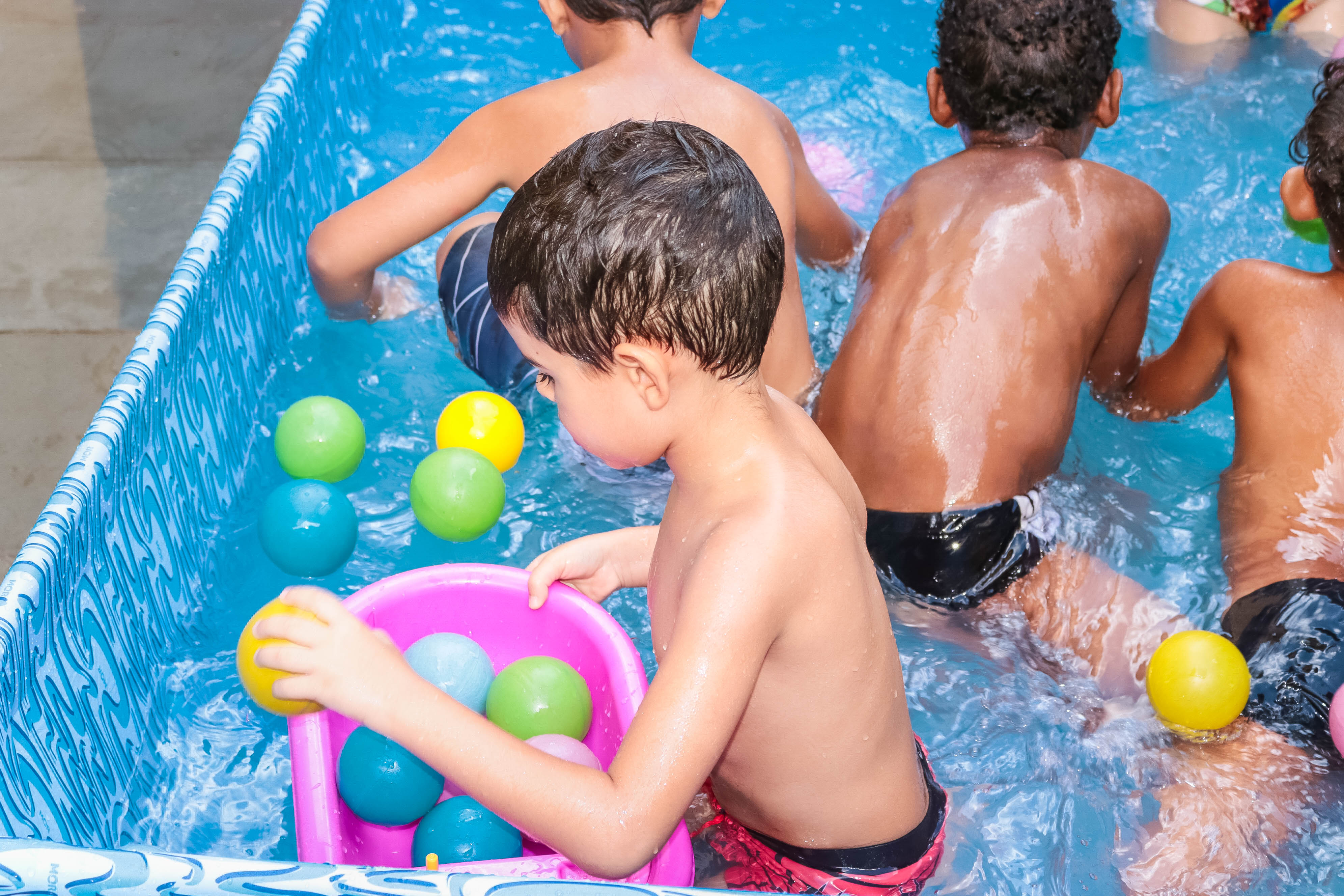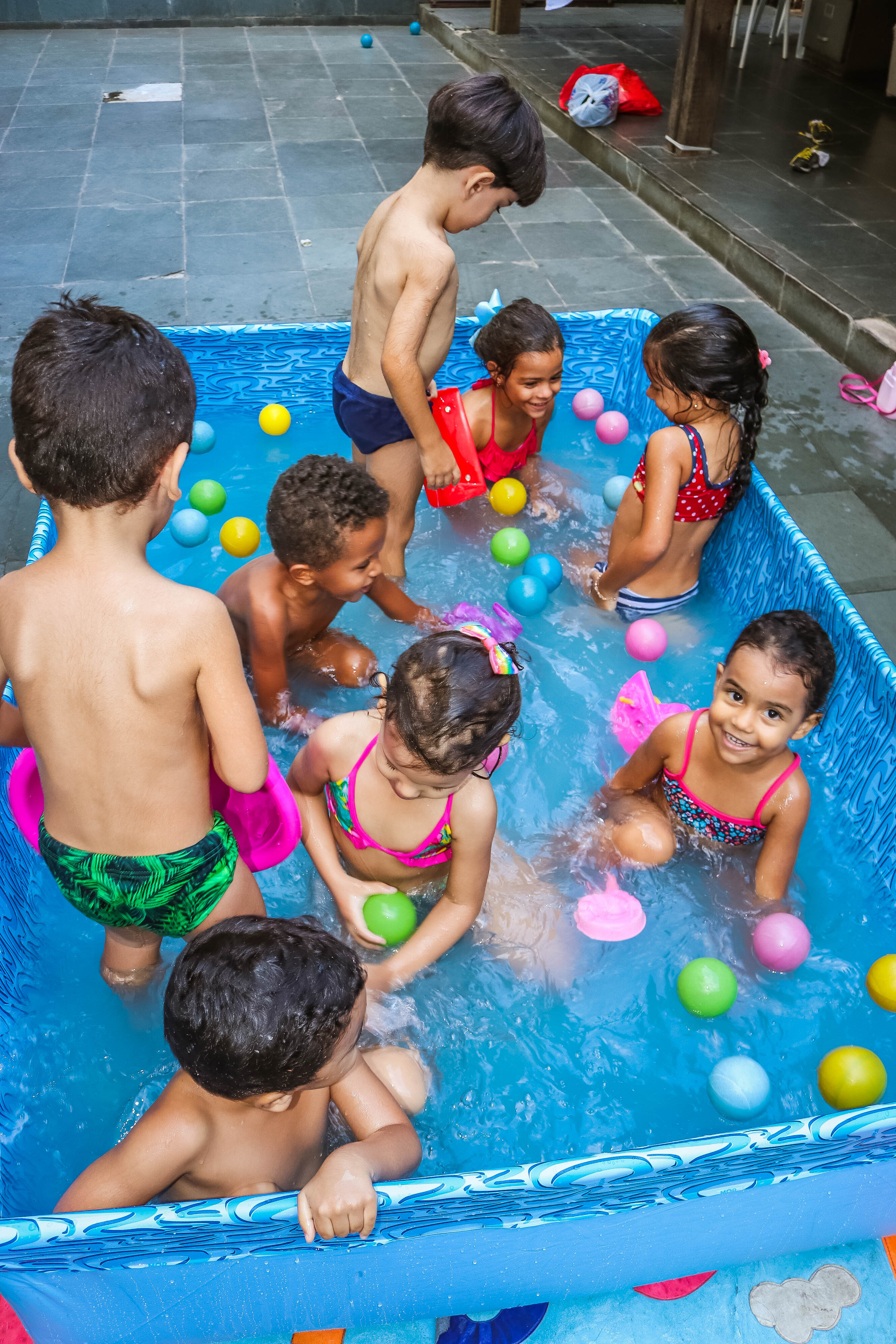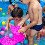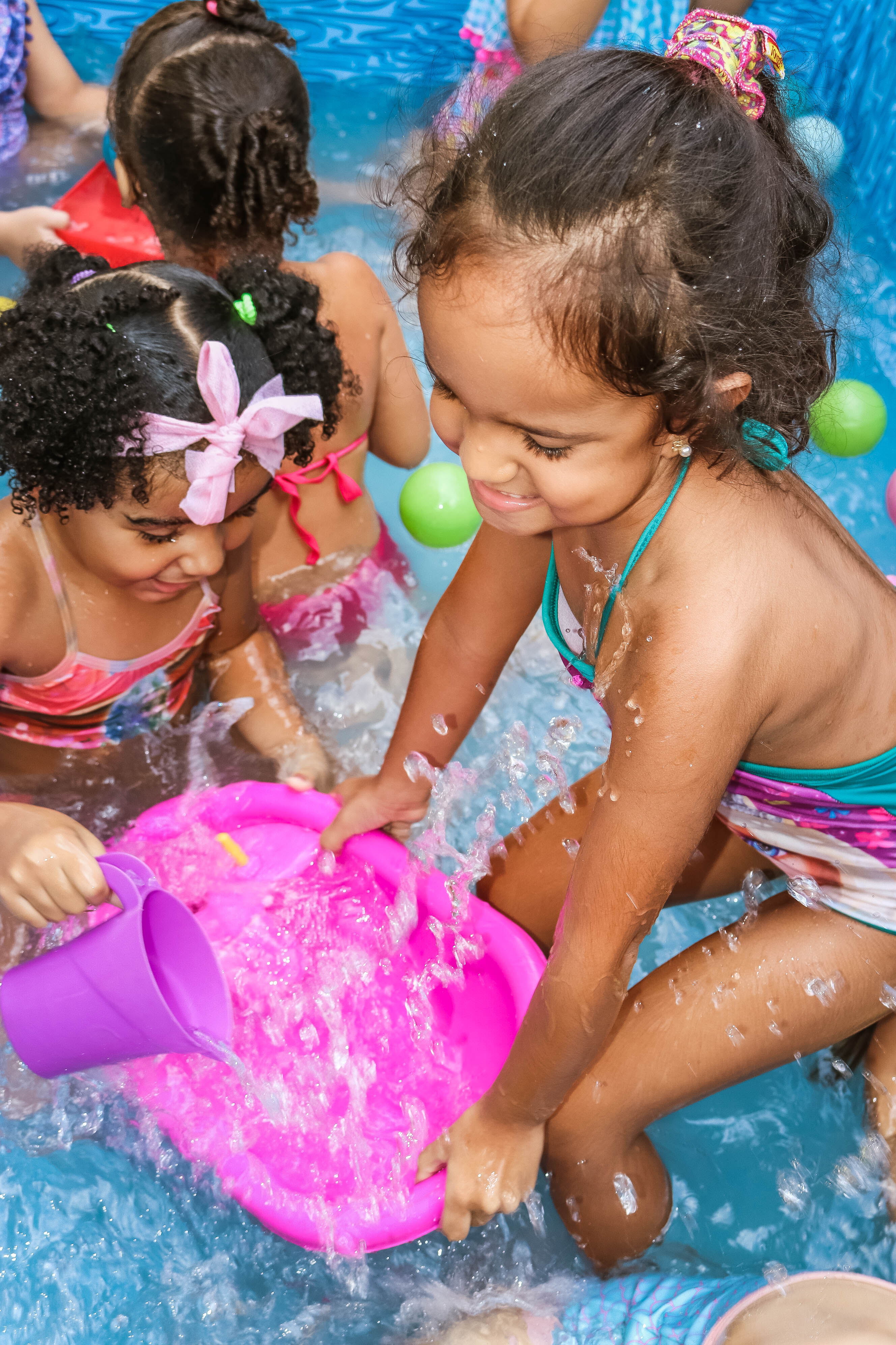 Pensando nisso, o banho de piscina propicia um excelente momento para o desenvolvimento do brincar e do criar.