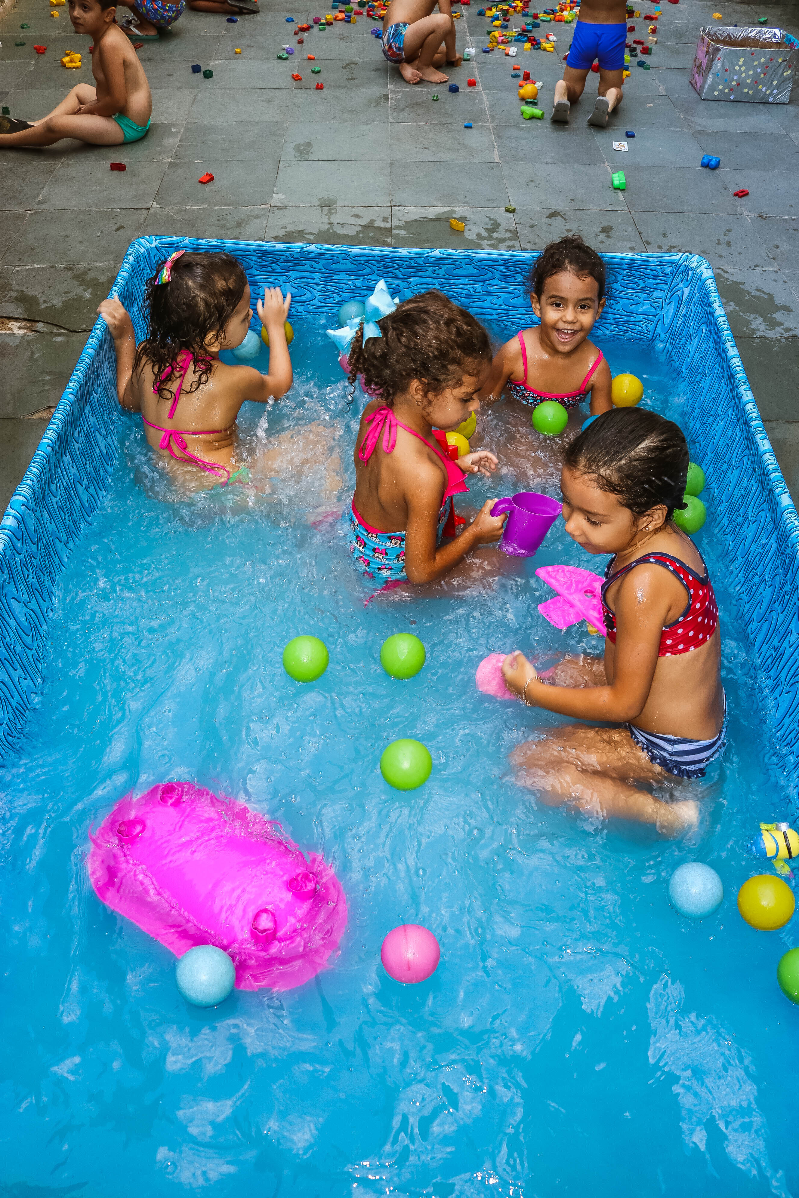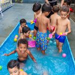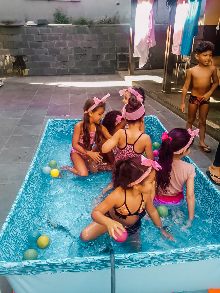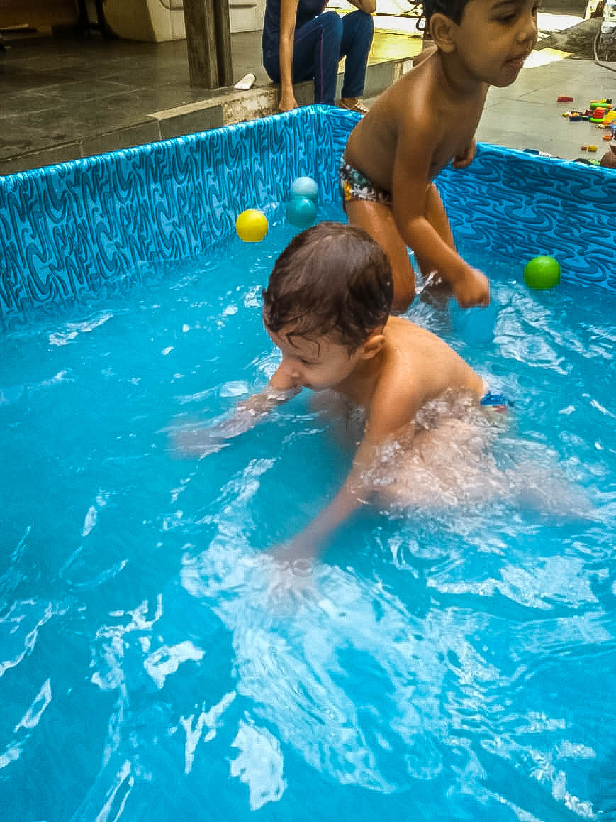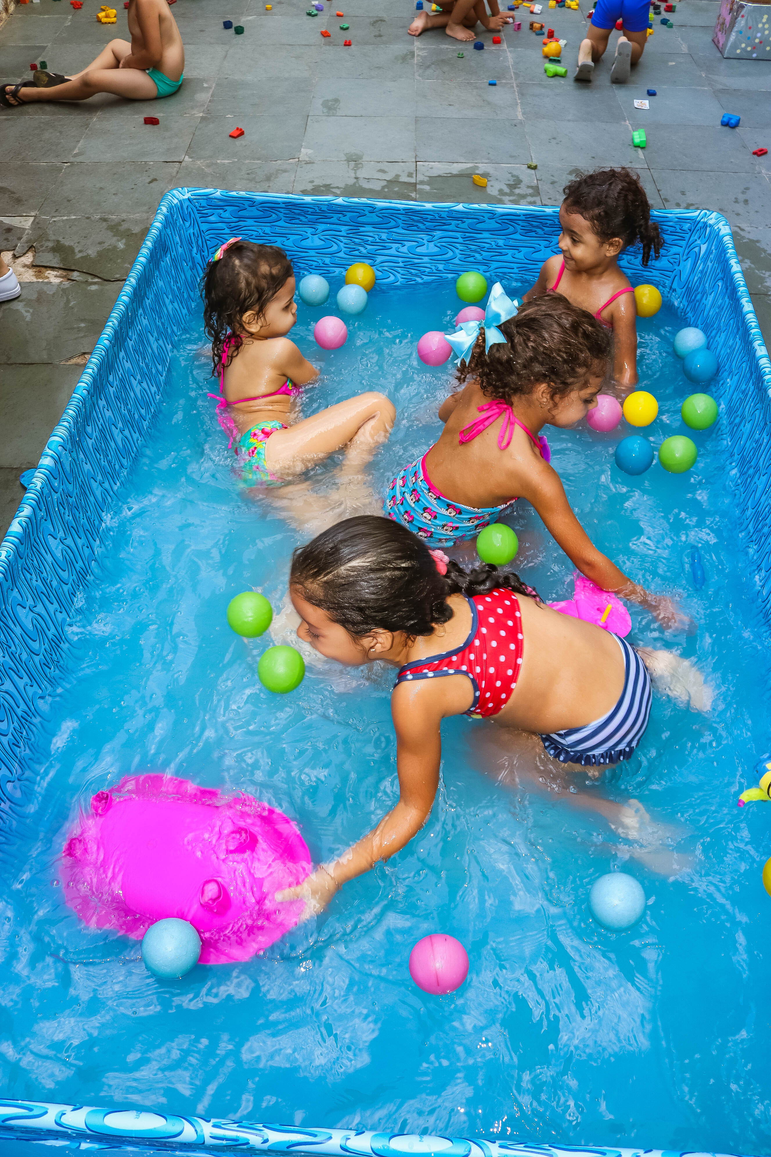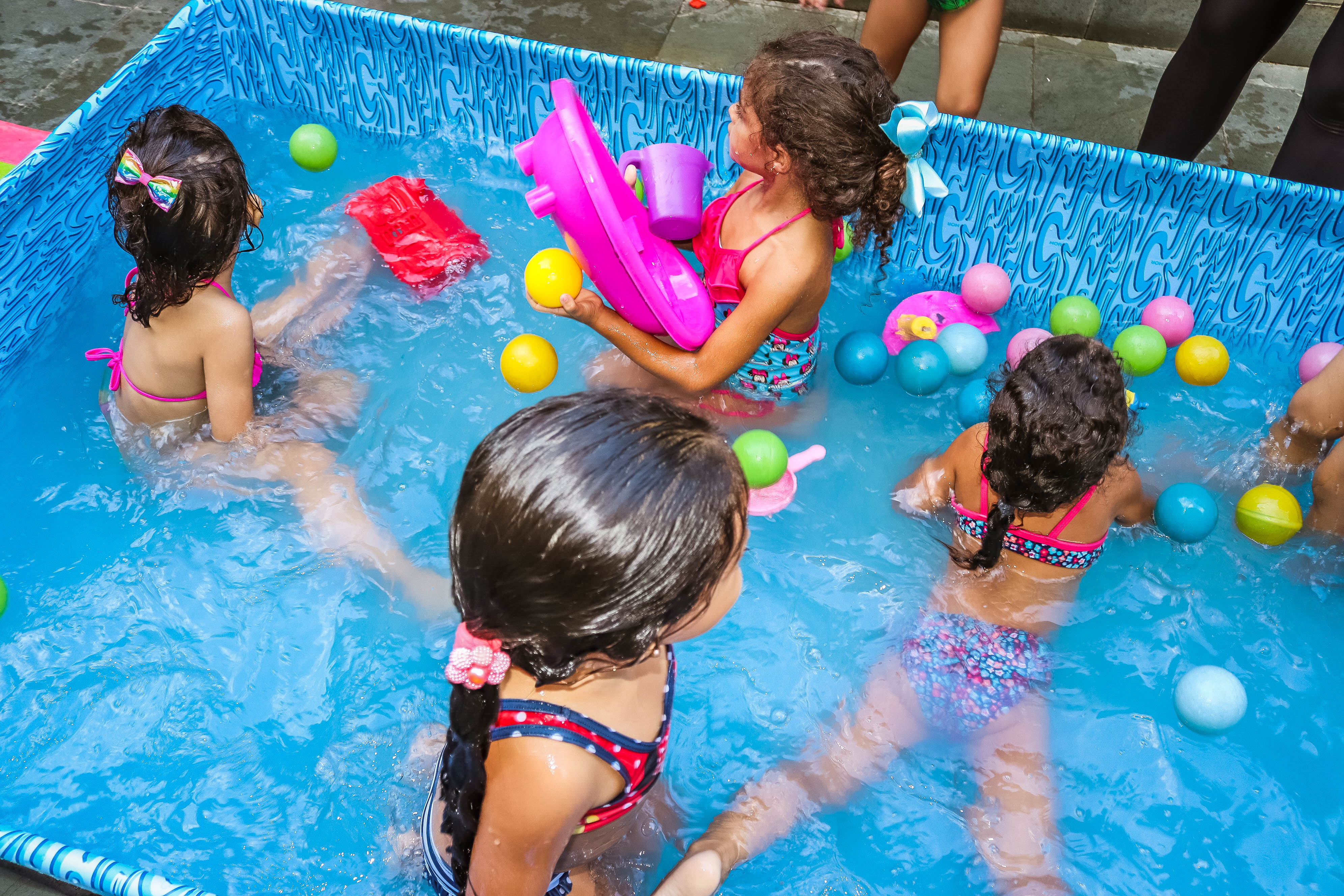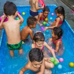 Pensando nisso, o banho de piscina propicia um excelente momento para o desenvolvimento do brincar e do criar.