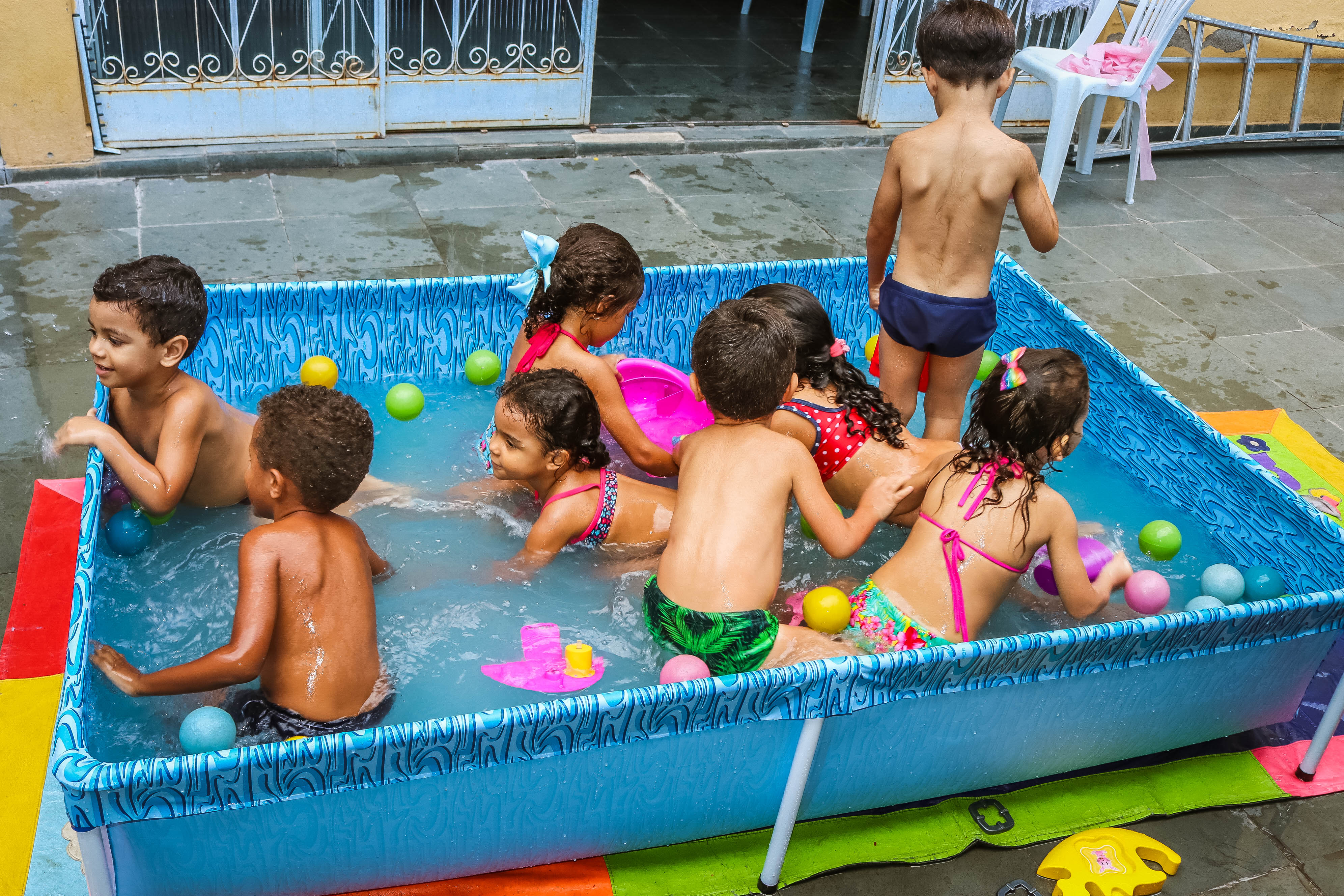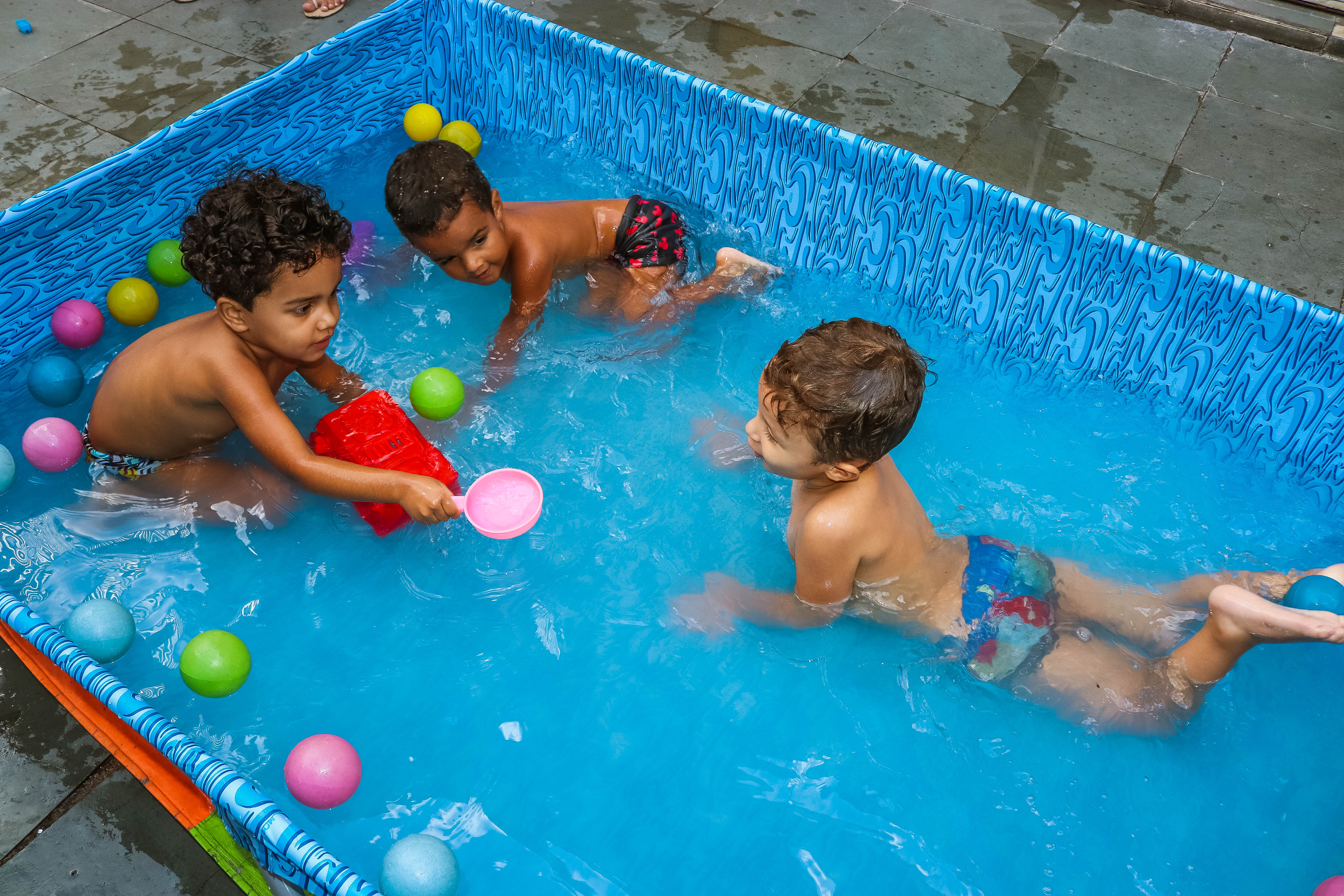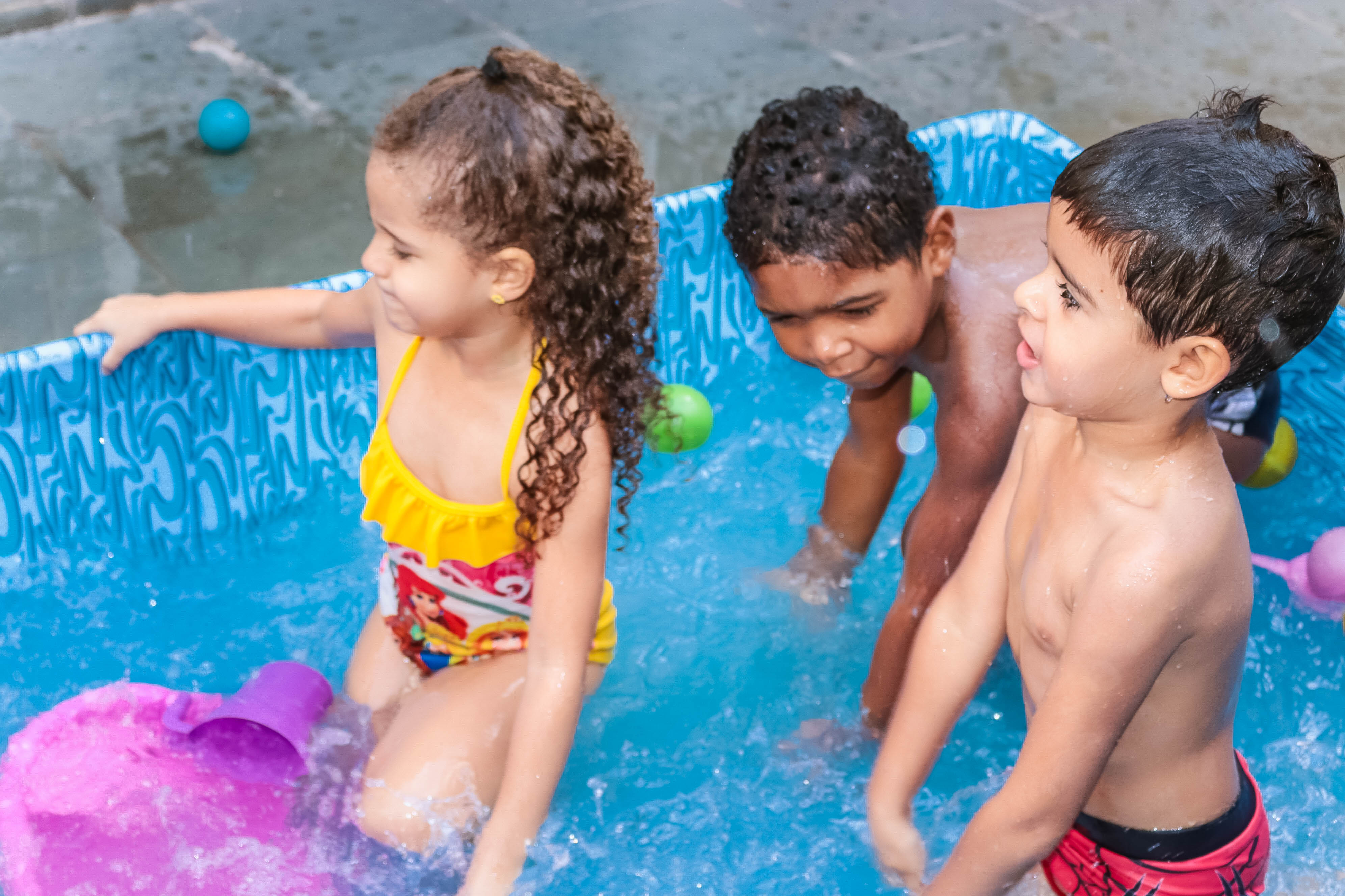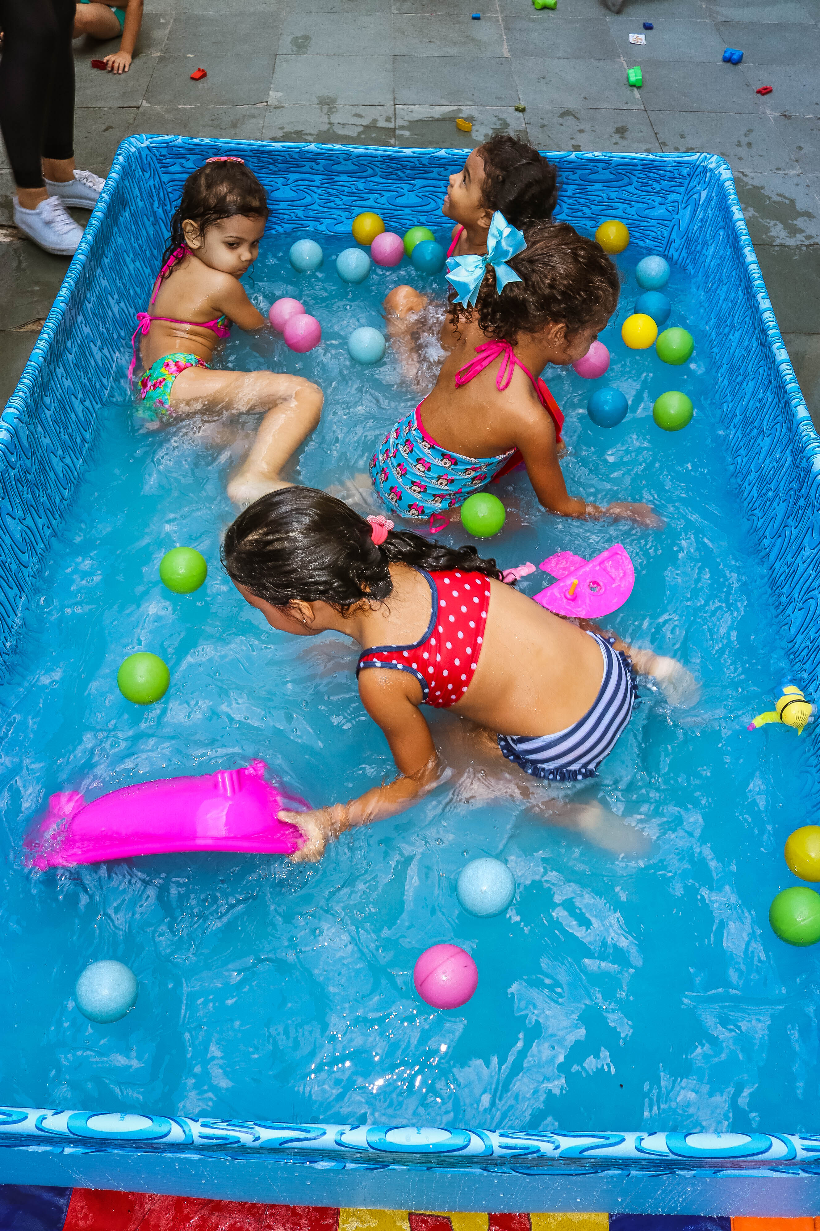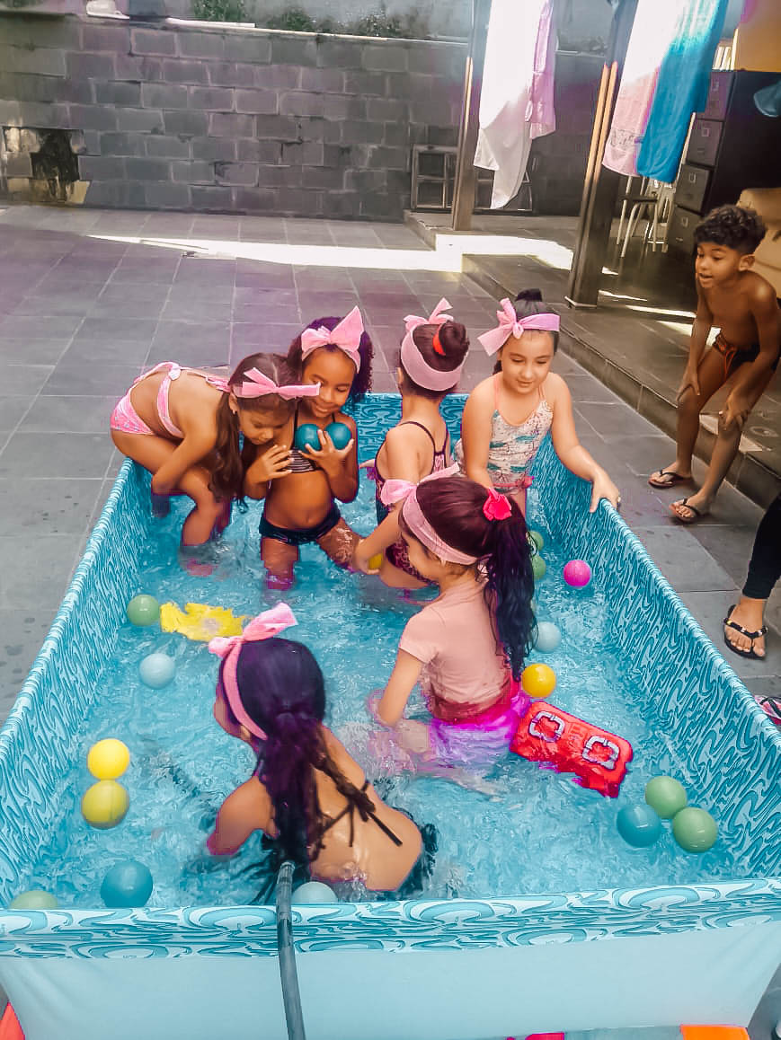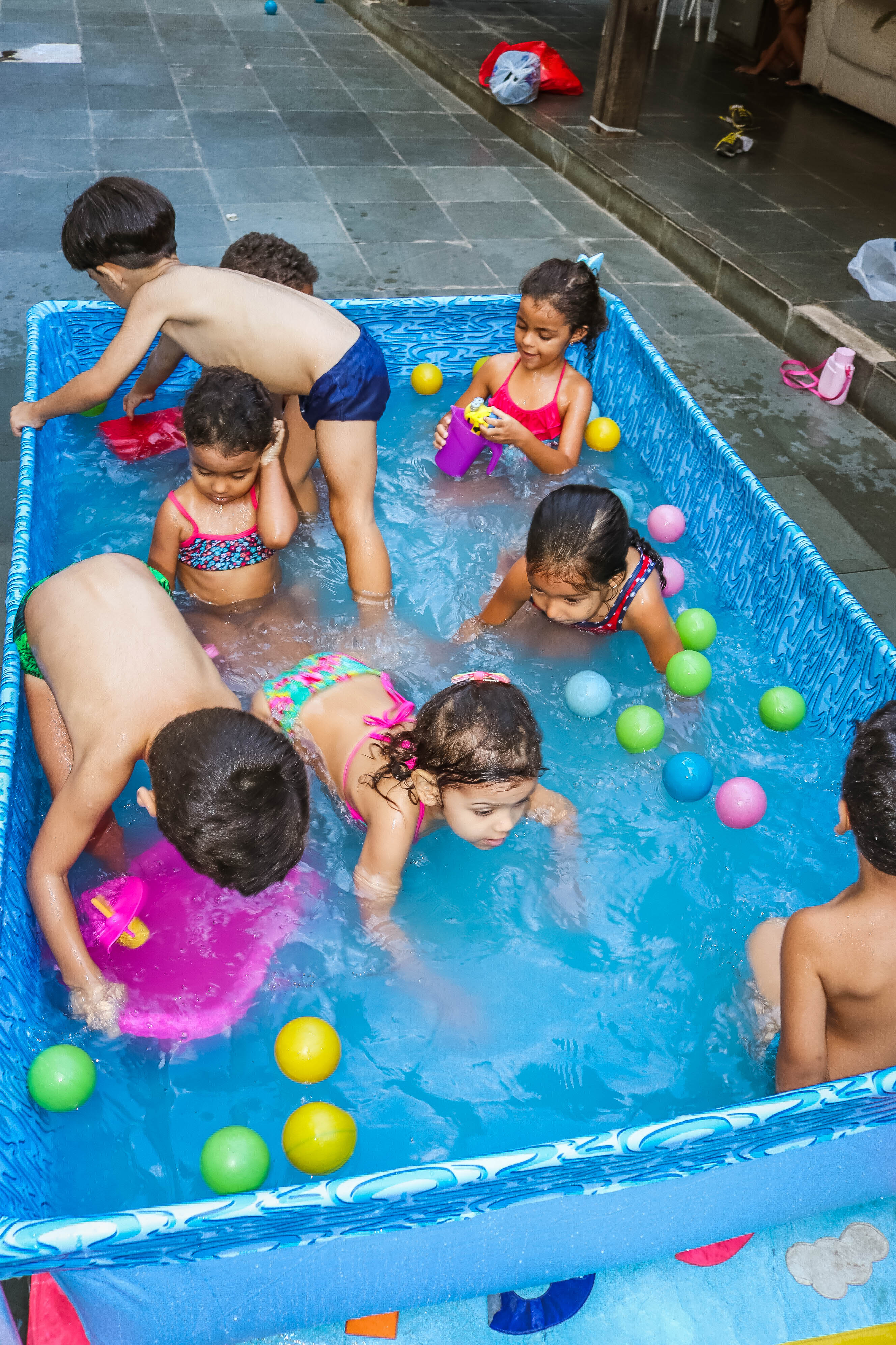 Pensando nisso, o banho de piscina propicia um excelente momento para o desenvolvimento do brincar e do criar.