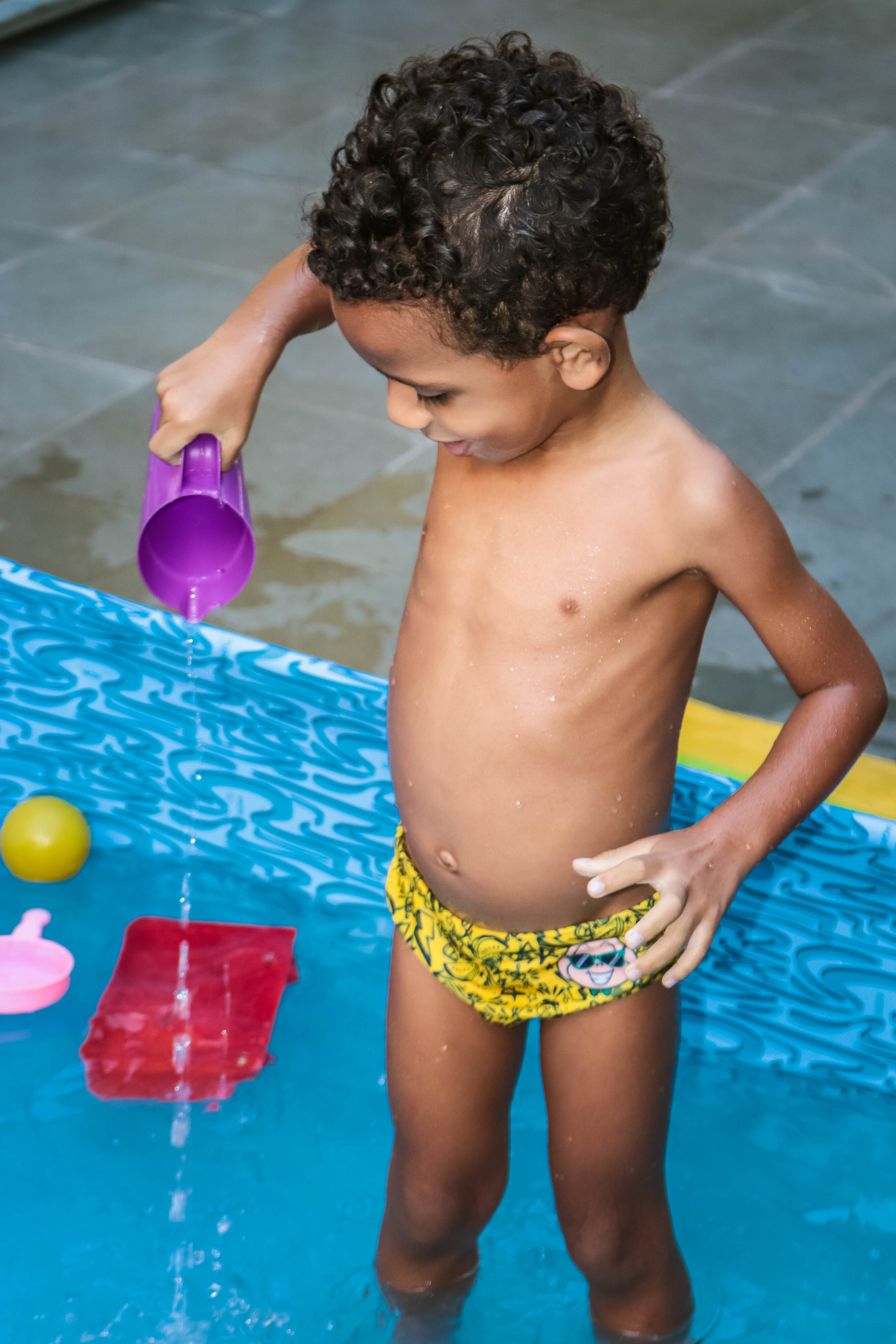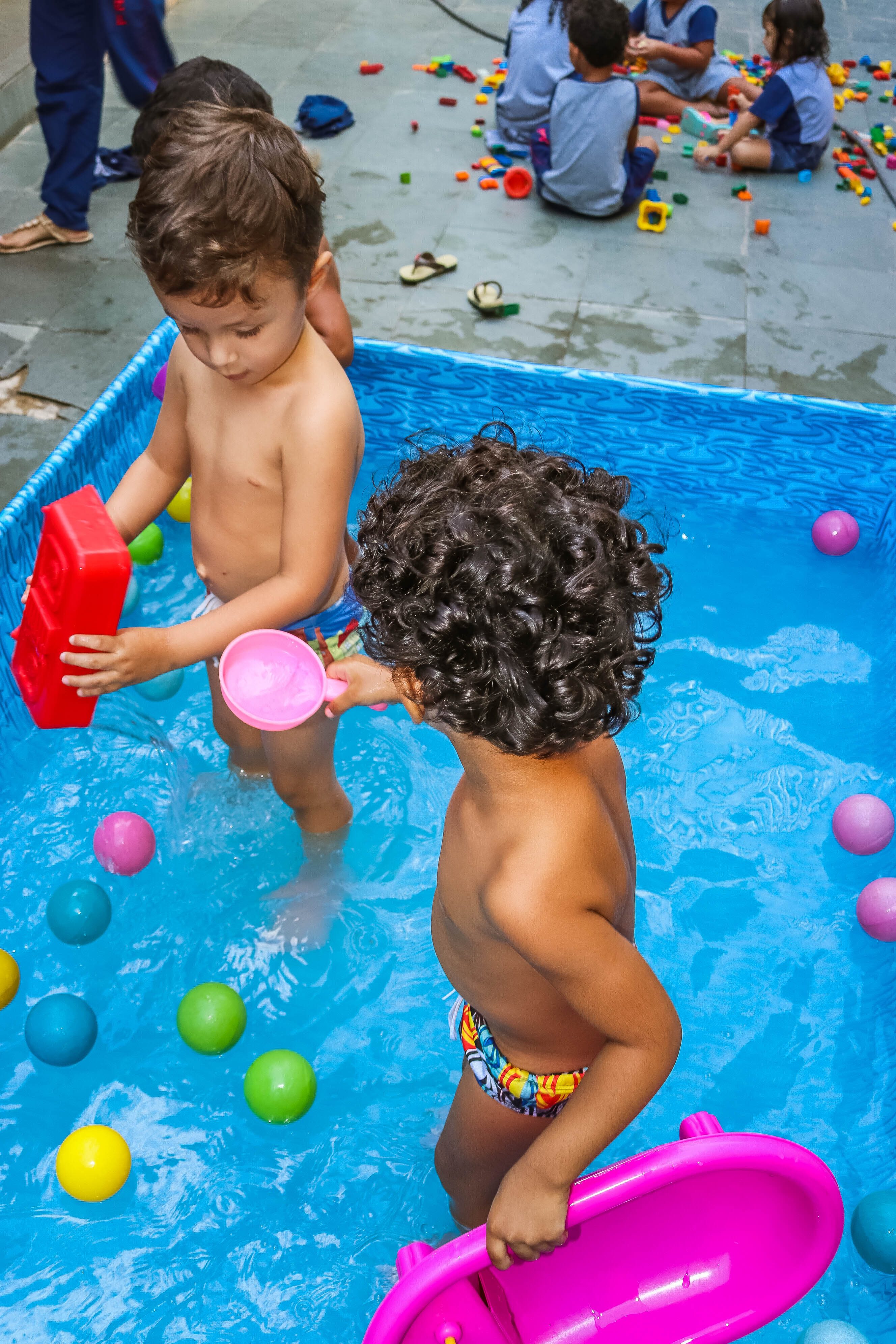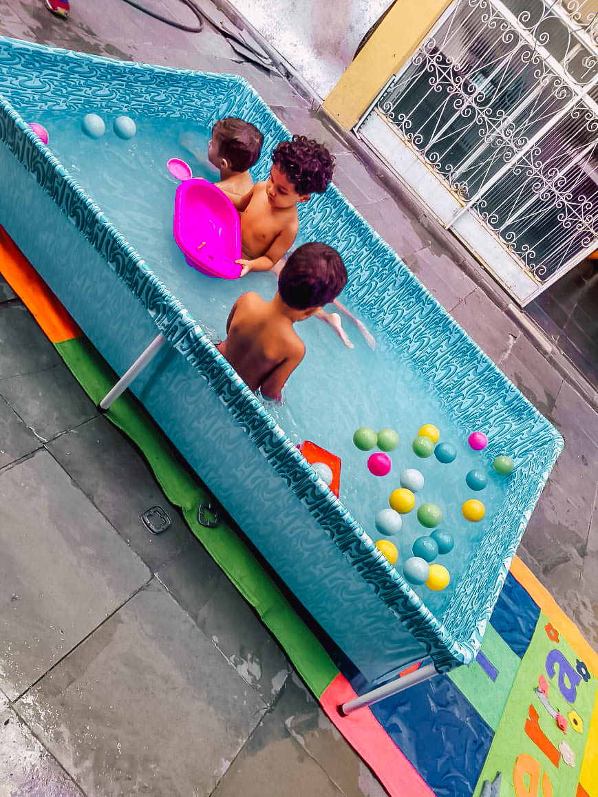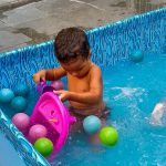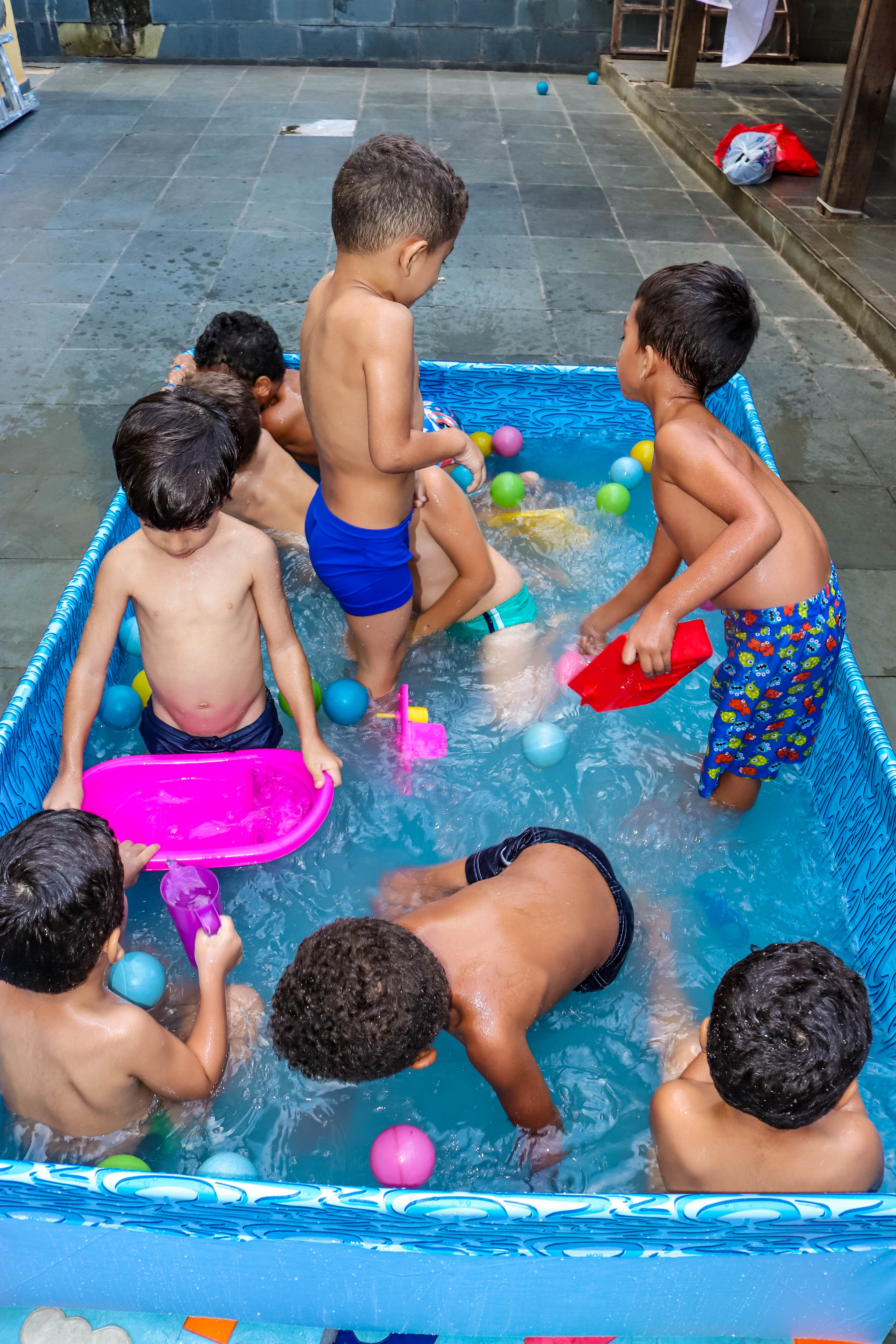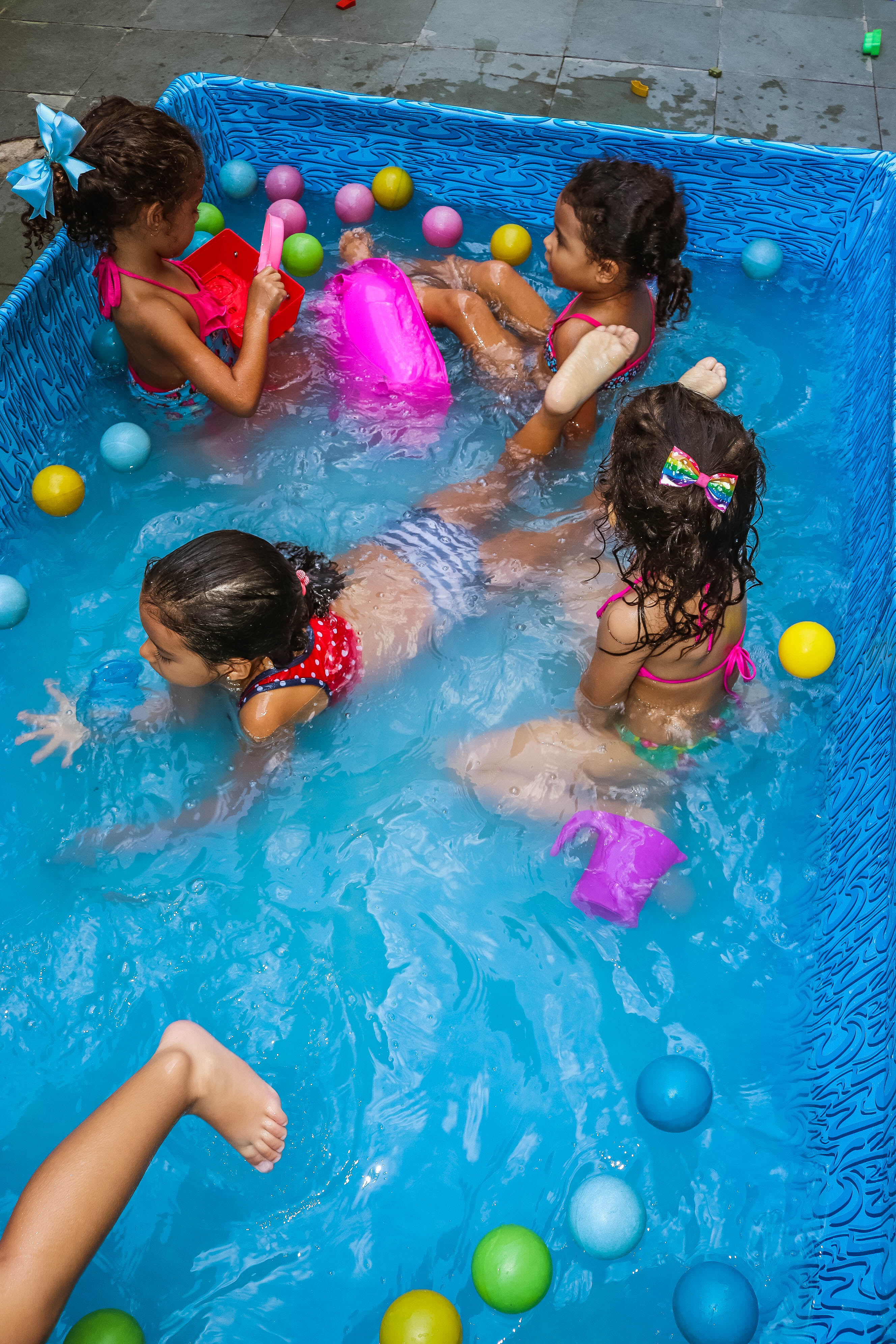 Pensando nisso, o banho de piscina propicia um excelente momento para o desenvolvimento do brincar e do criar.