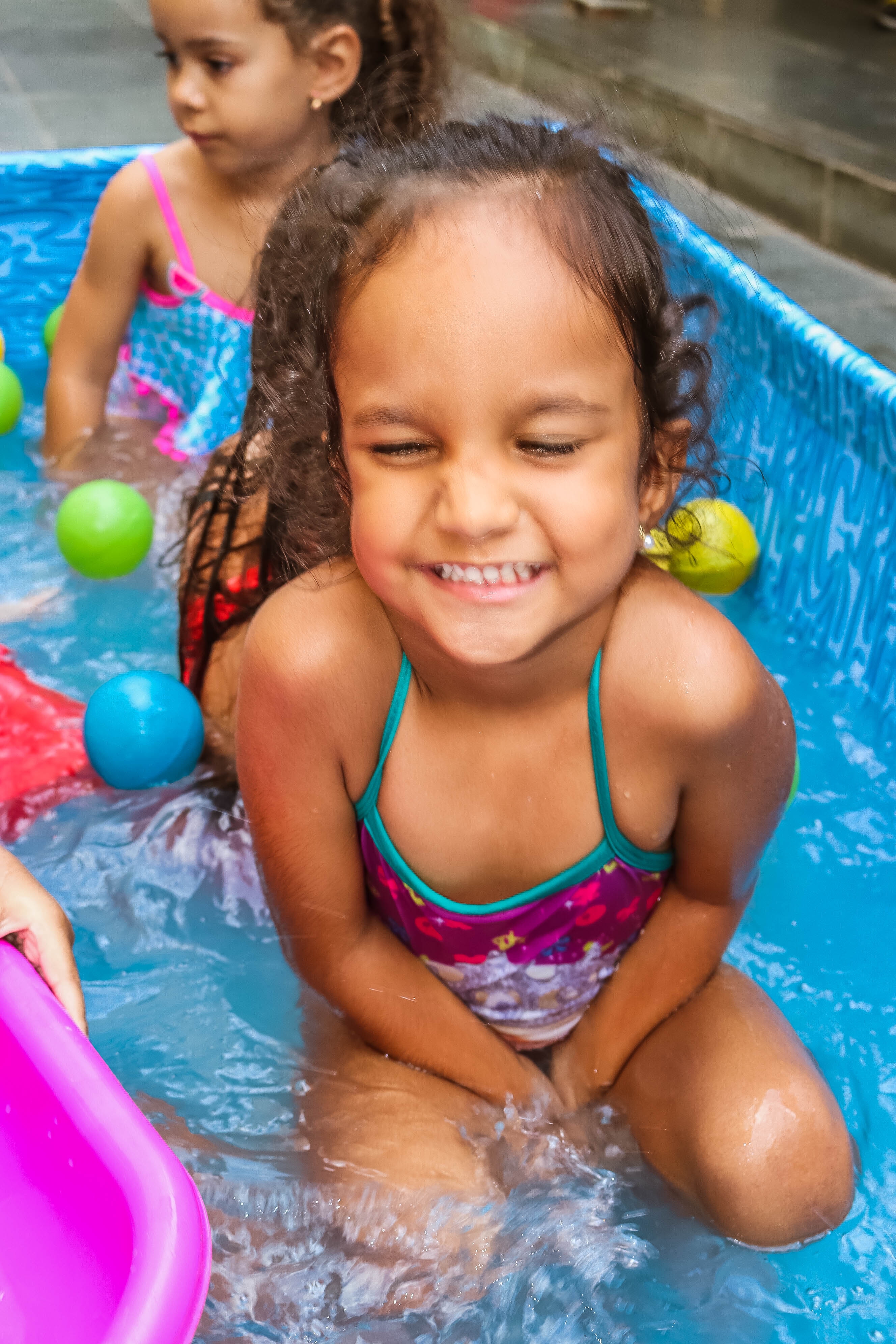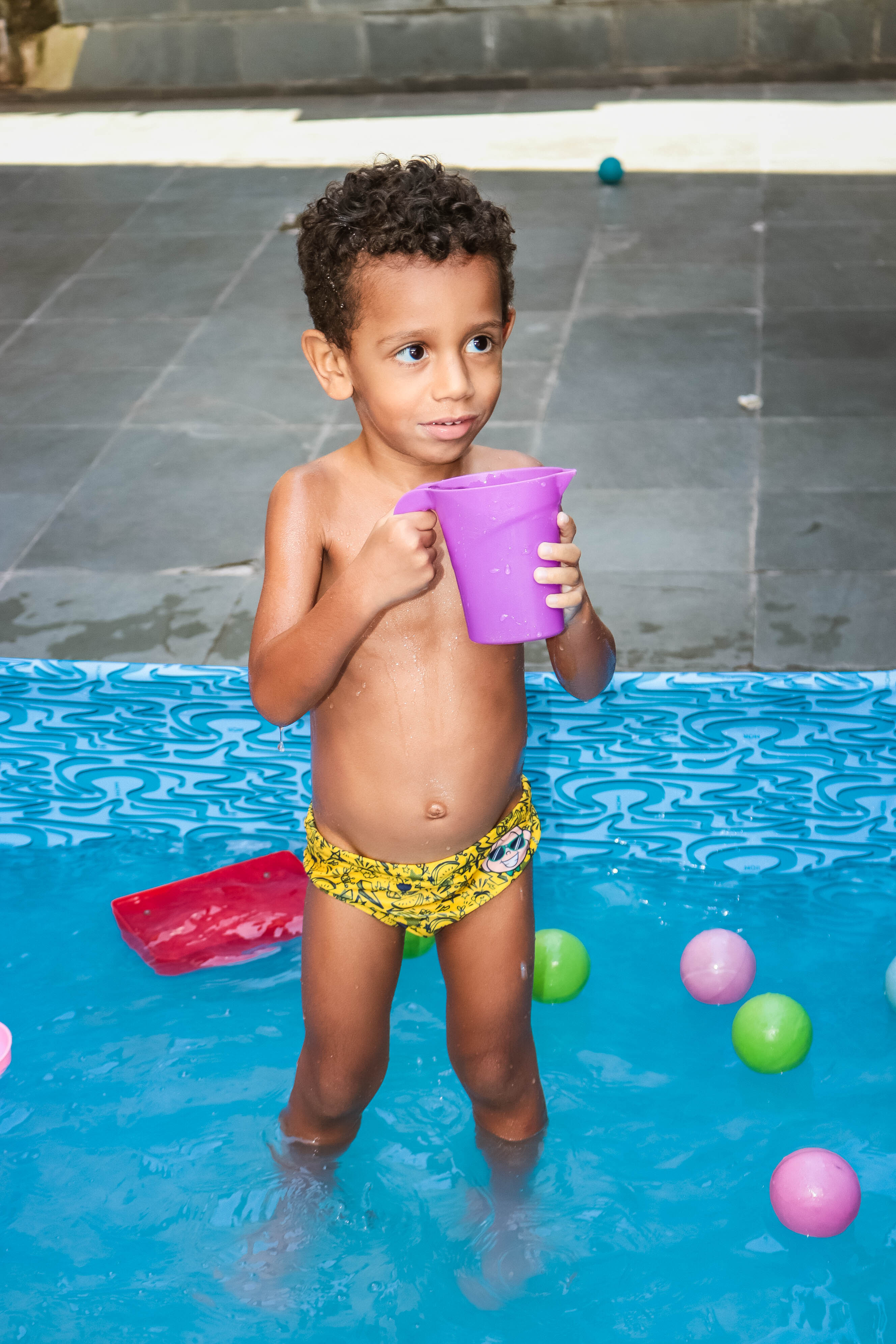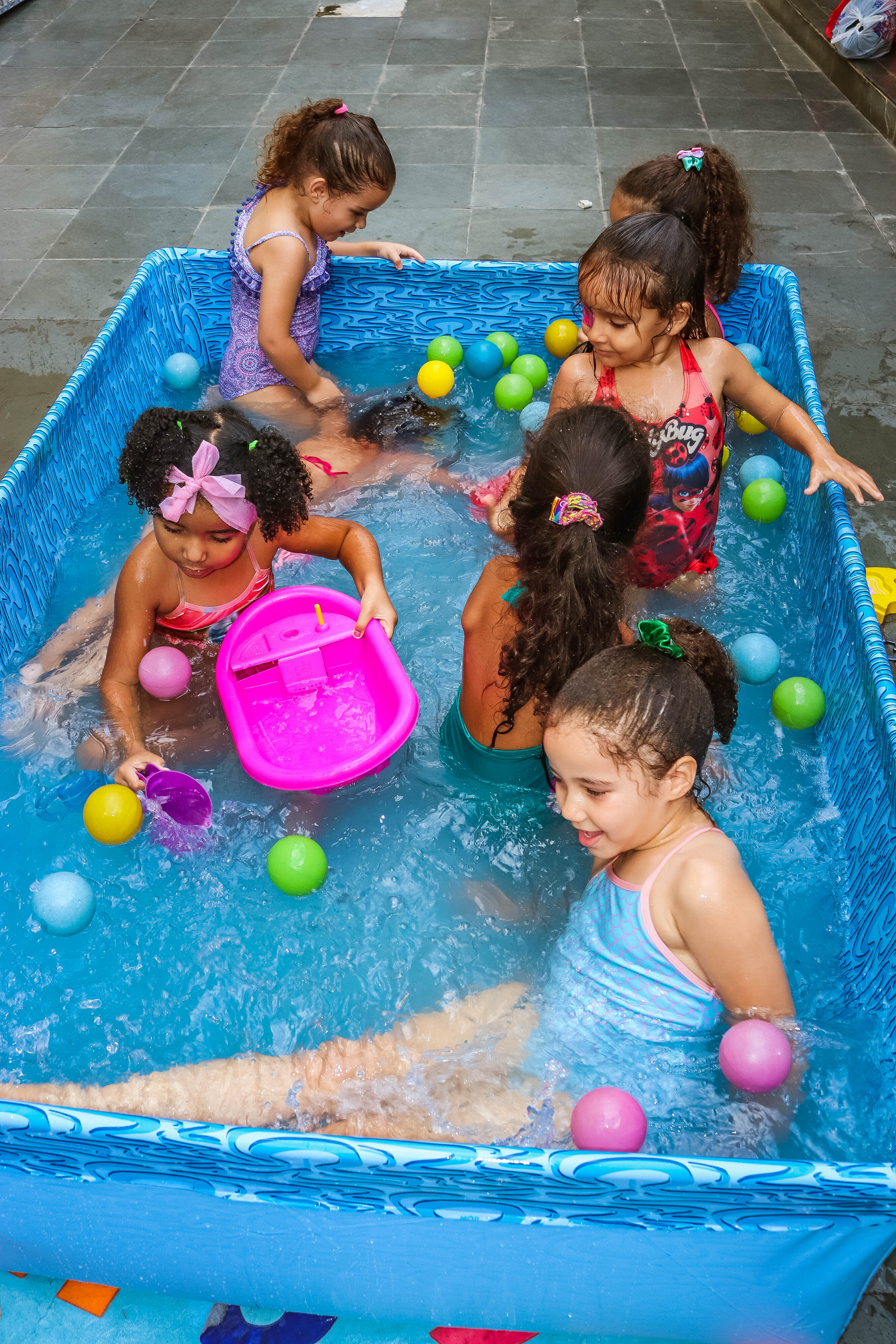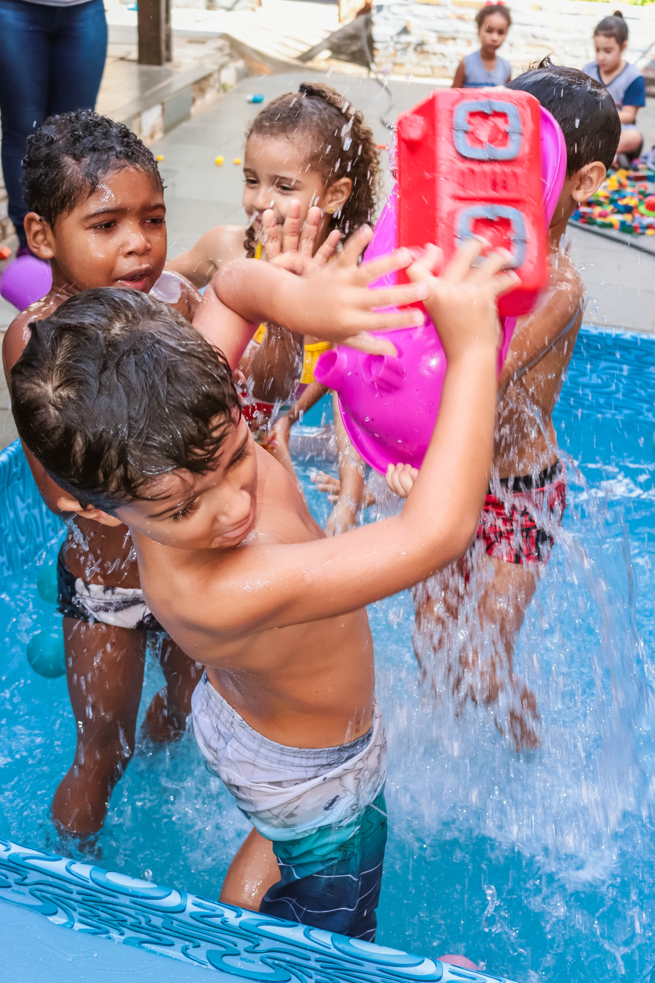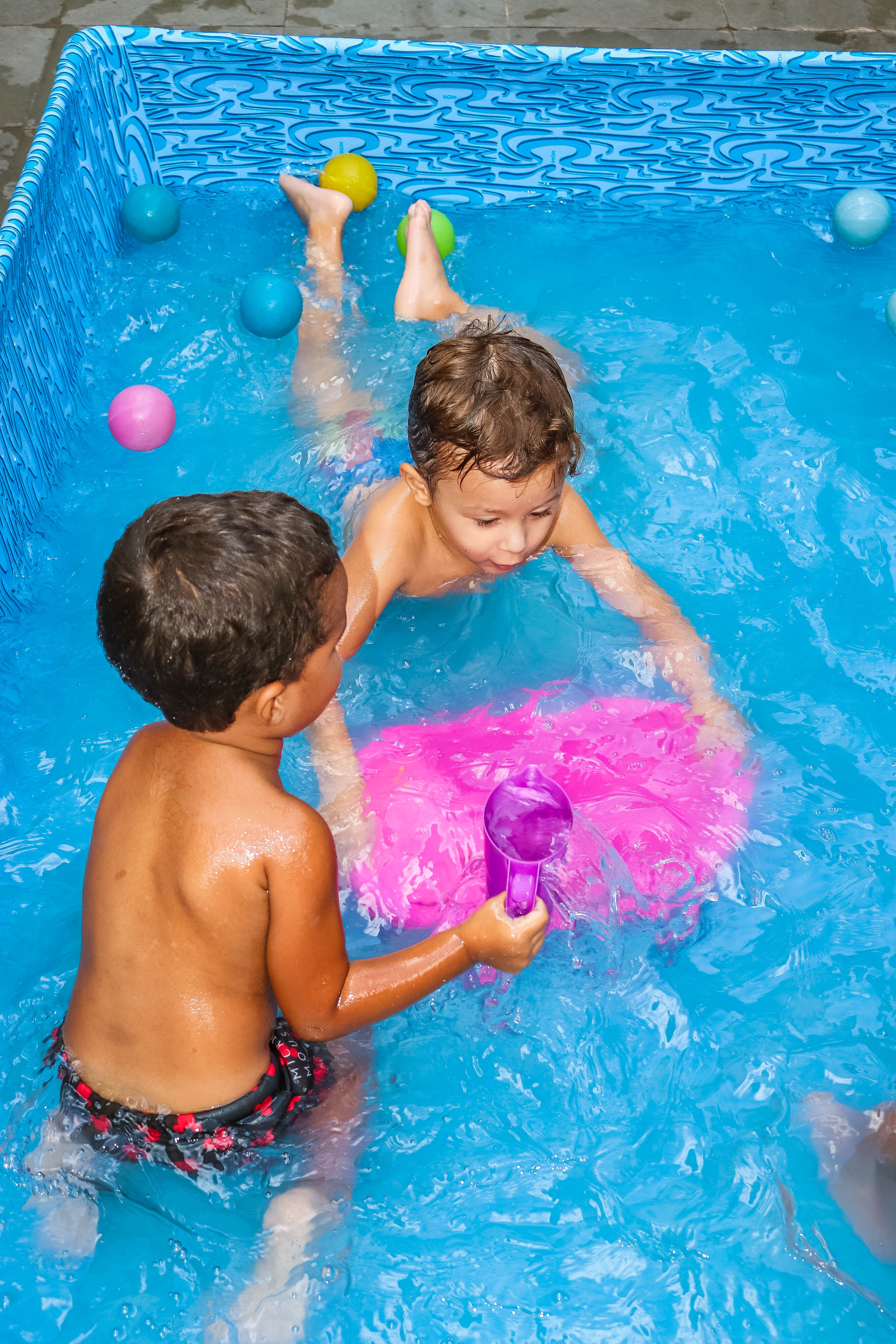 Pensando nisso, o banho de piscina propicia um excelente momento para o desenvolvimento do brincar e do criar.