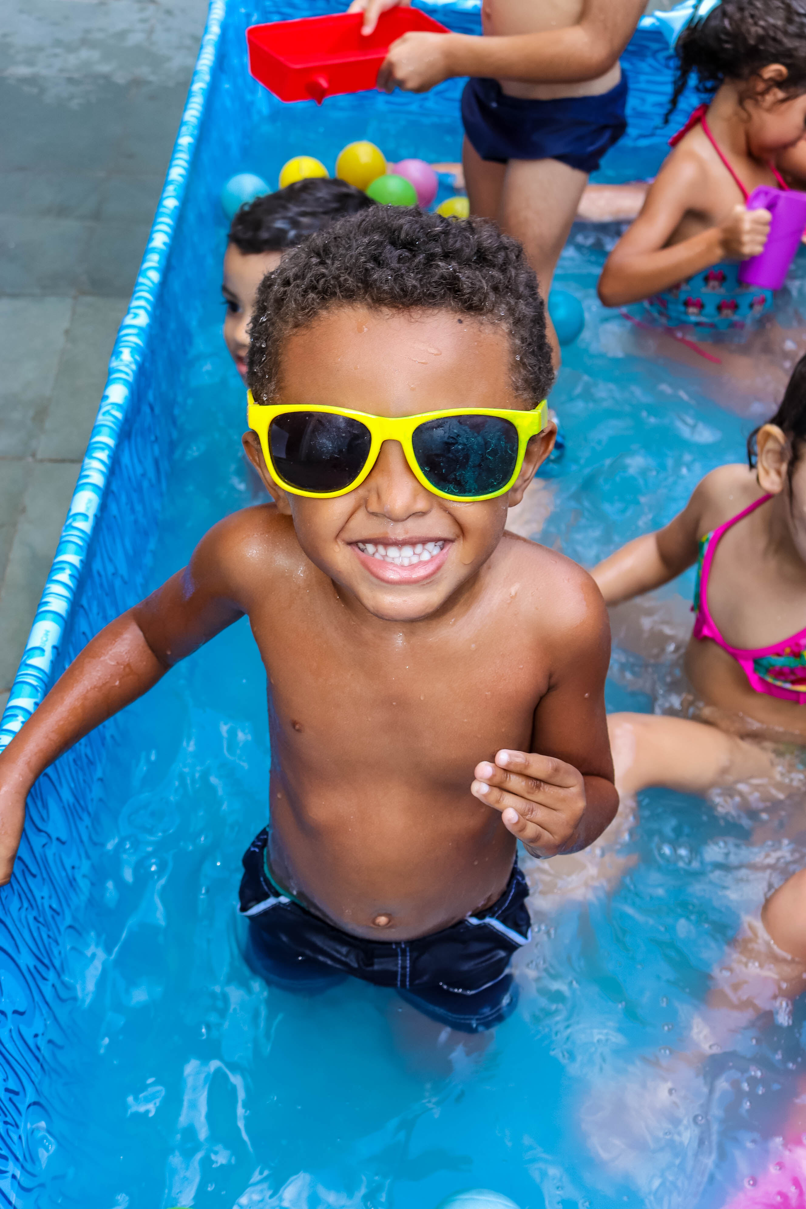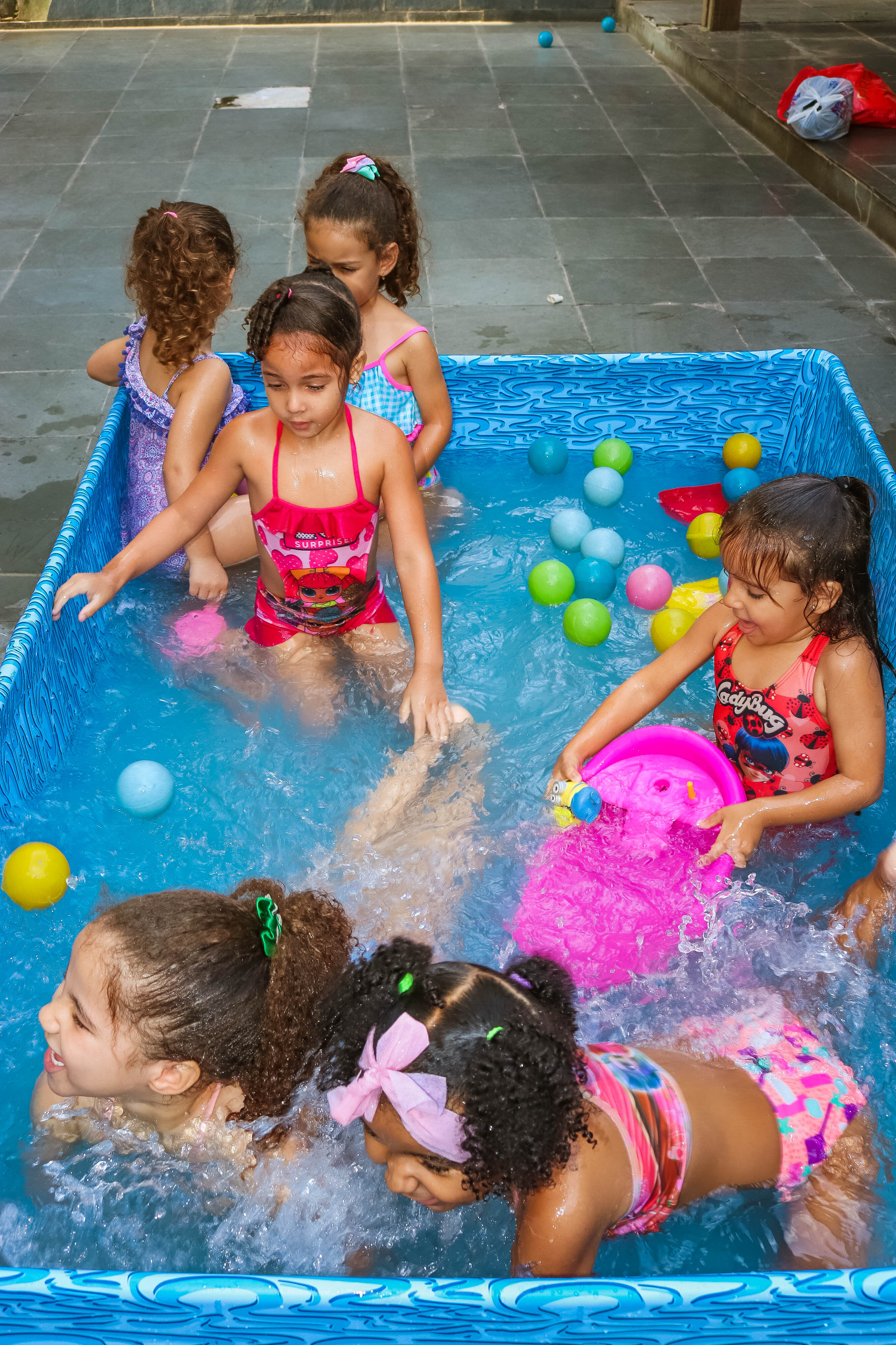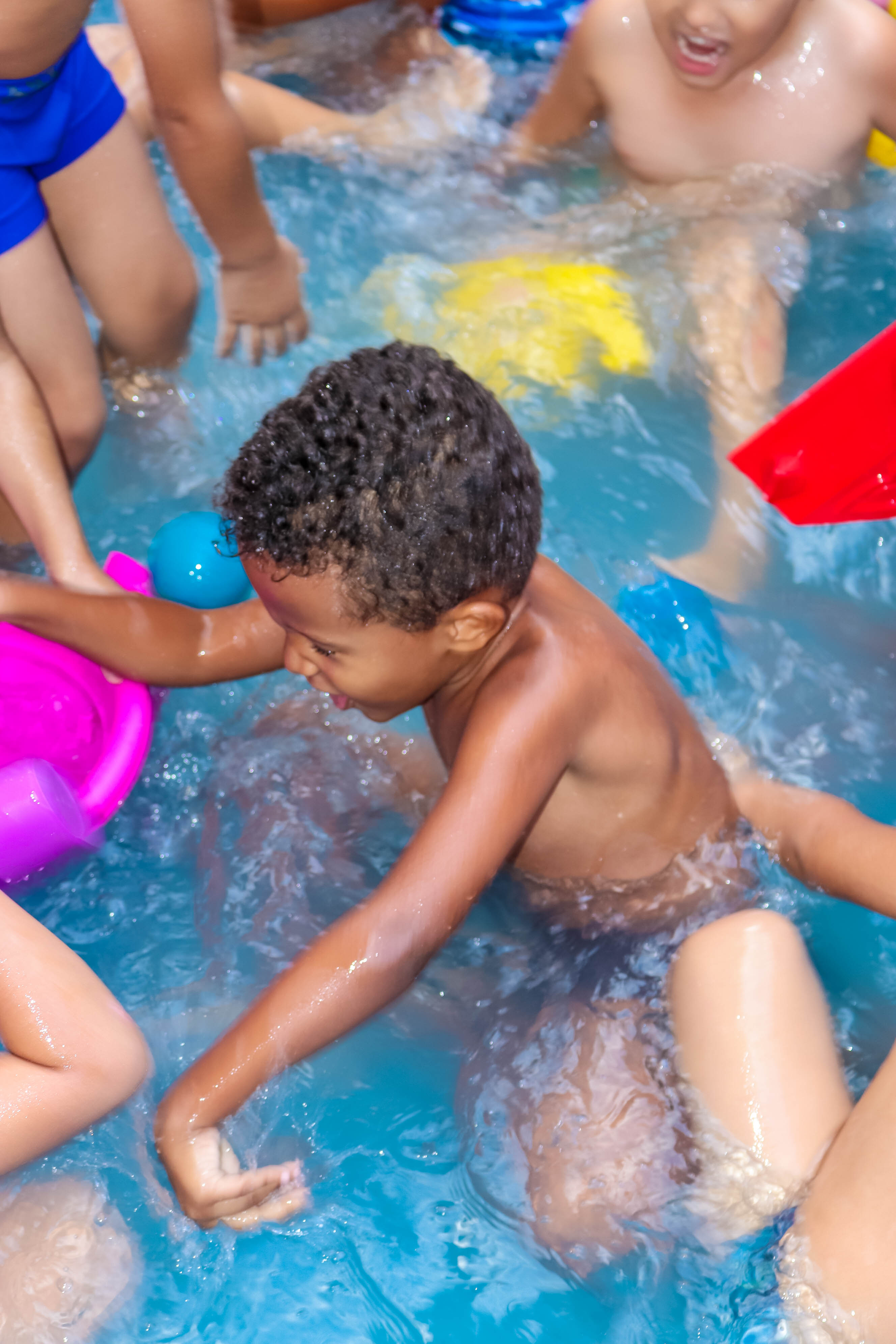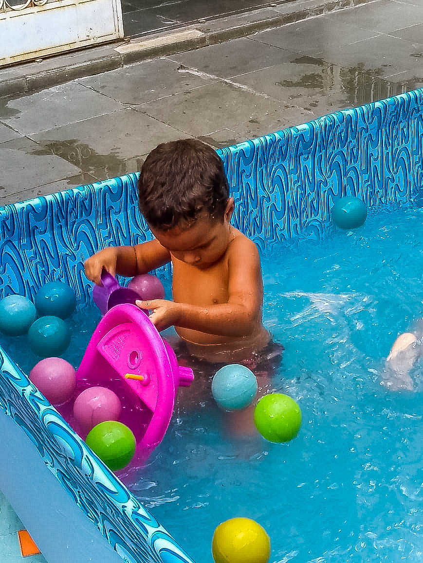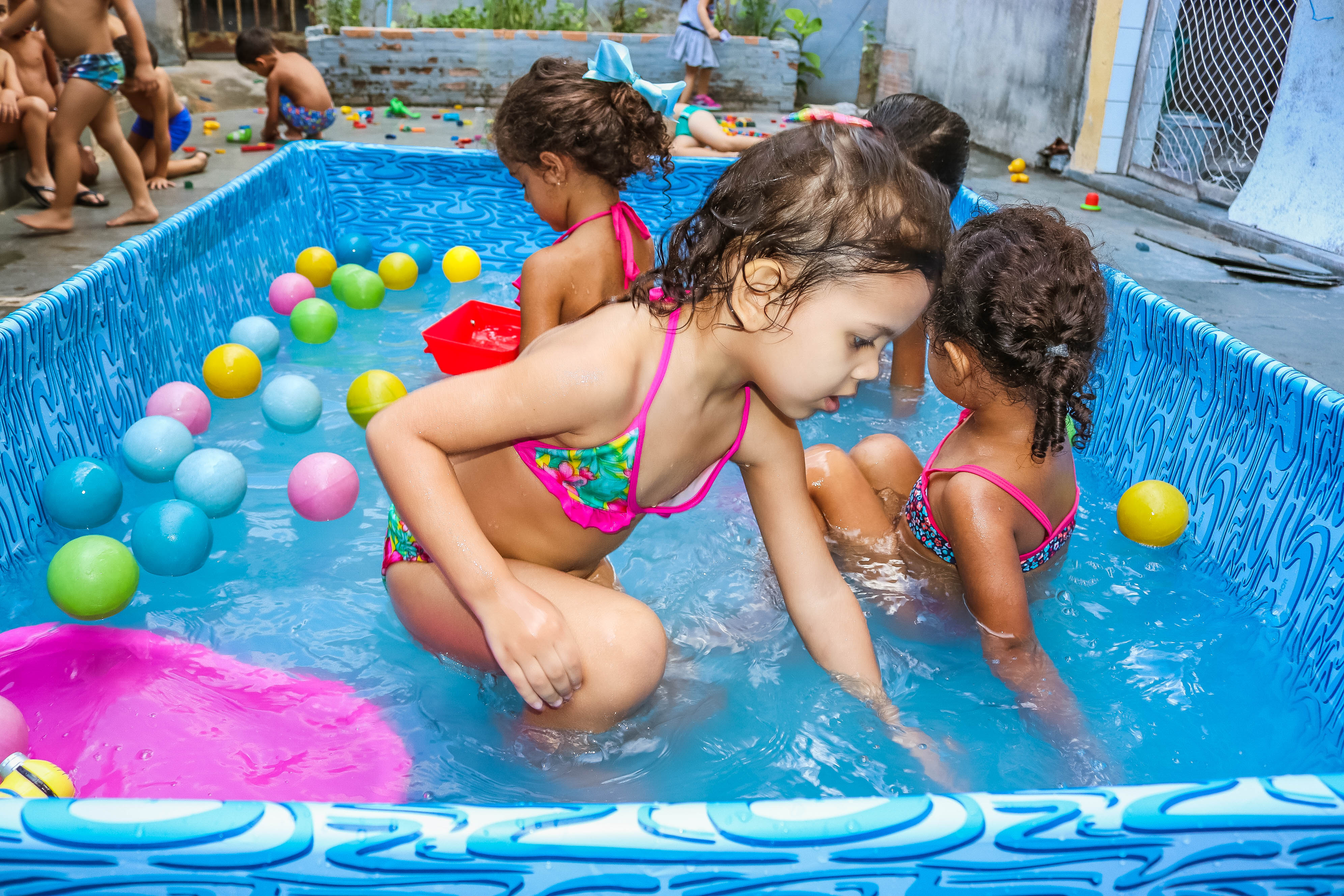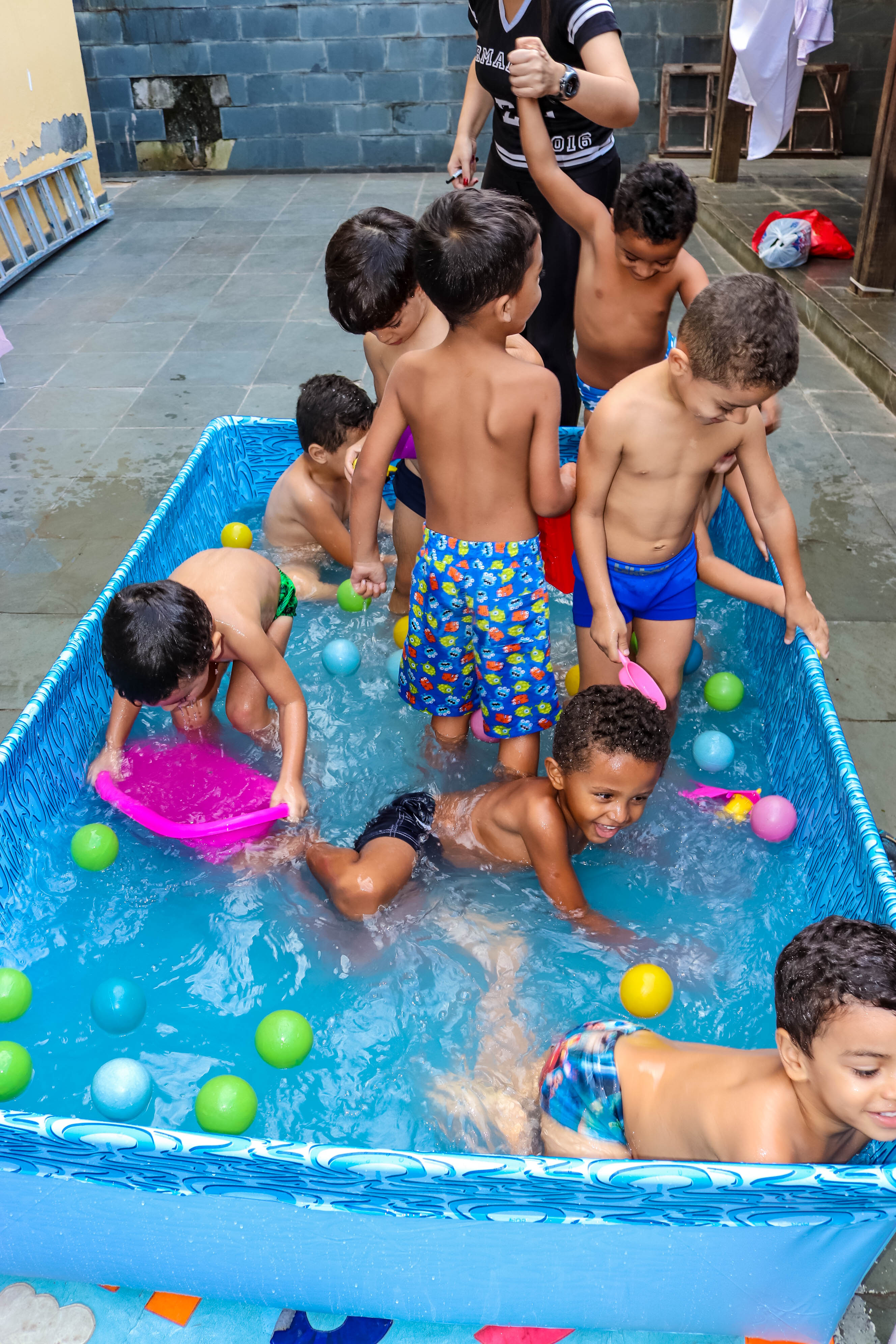 Pensando nisso, o banho de piscina propicia um excelente momento para o desenvolvimento do brincar e do criar.
