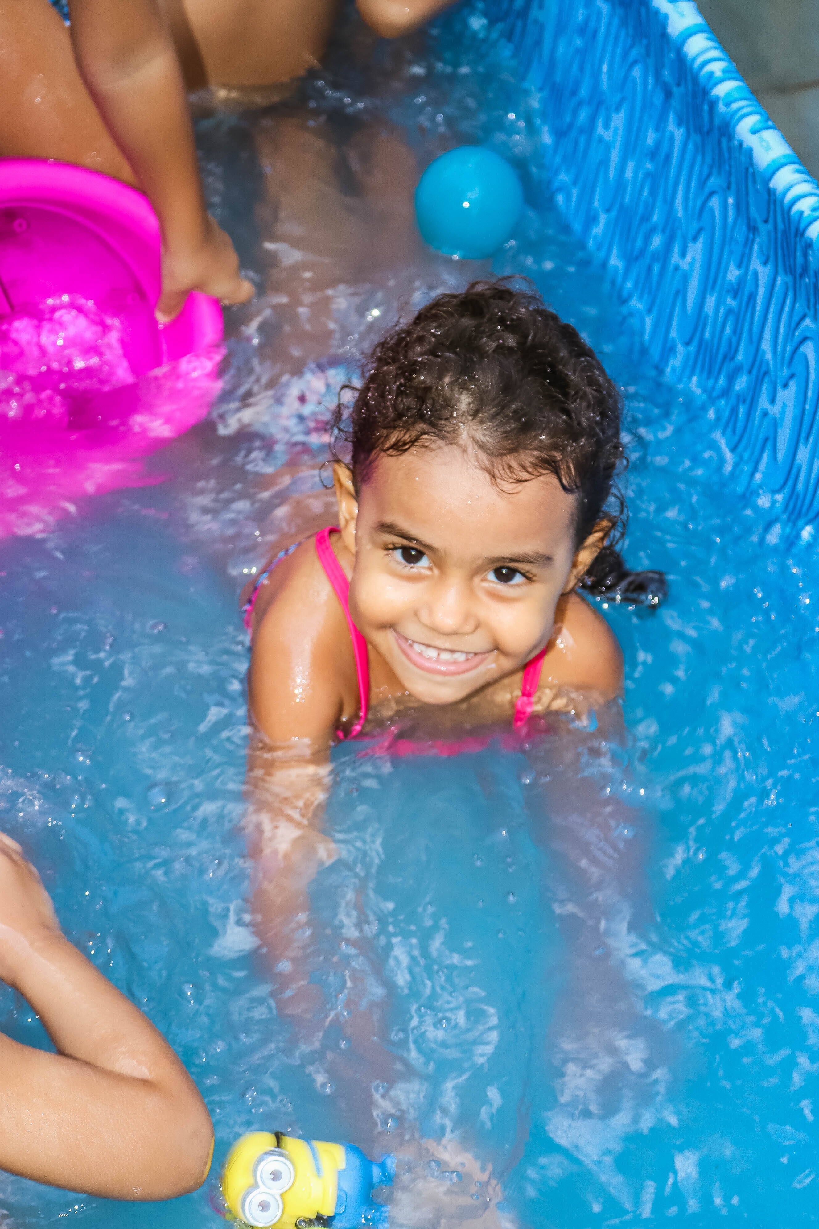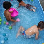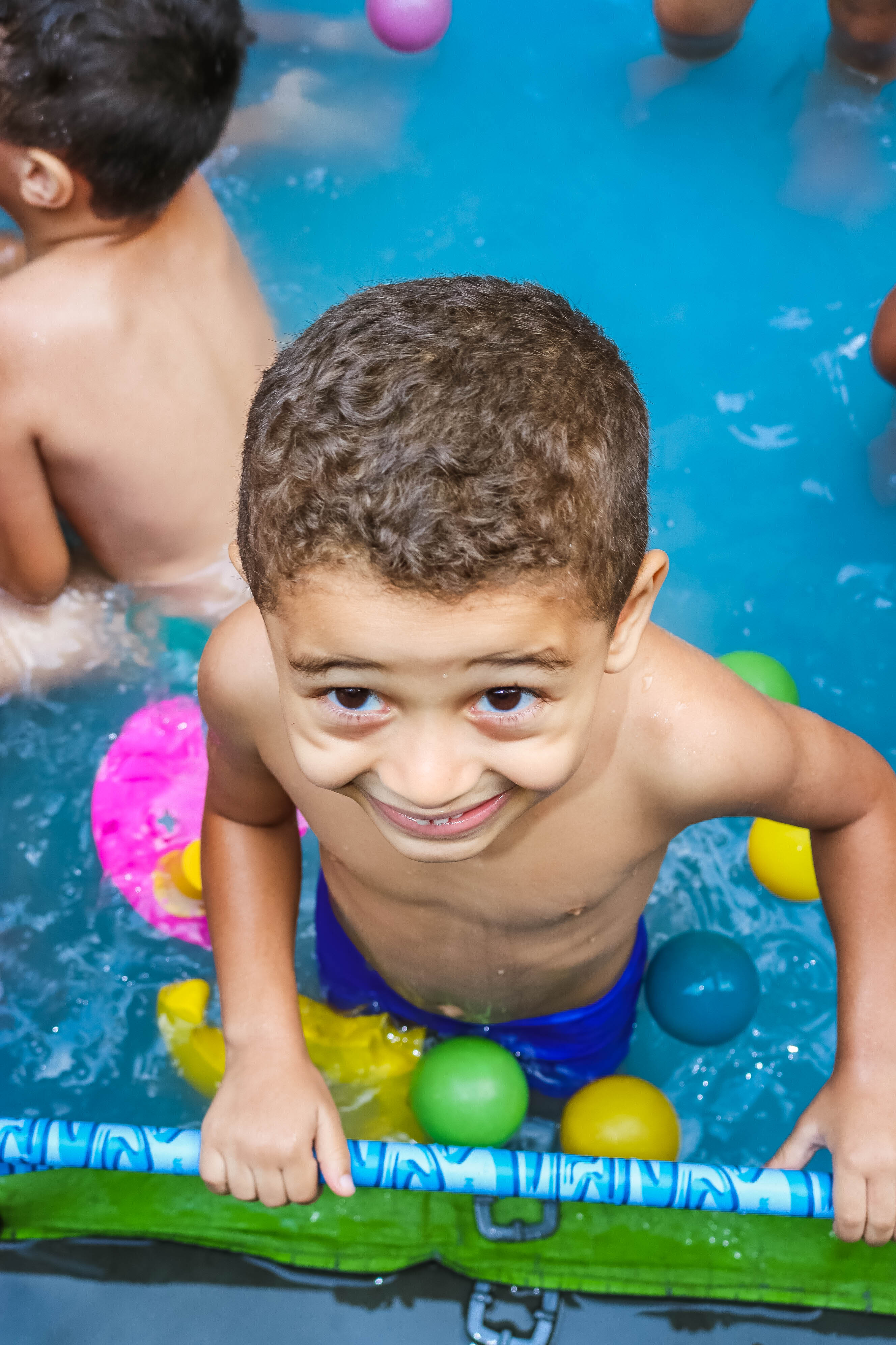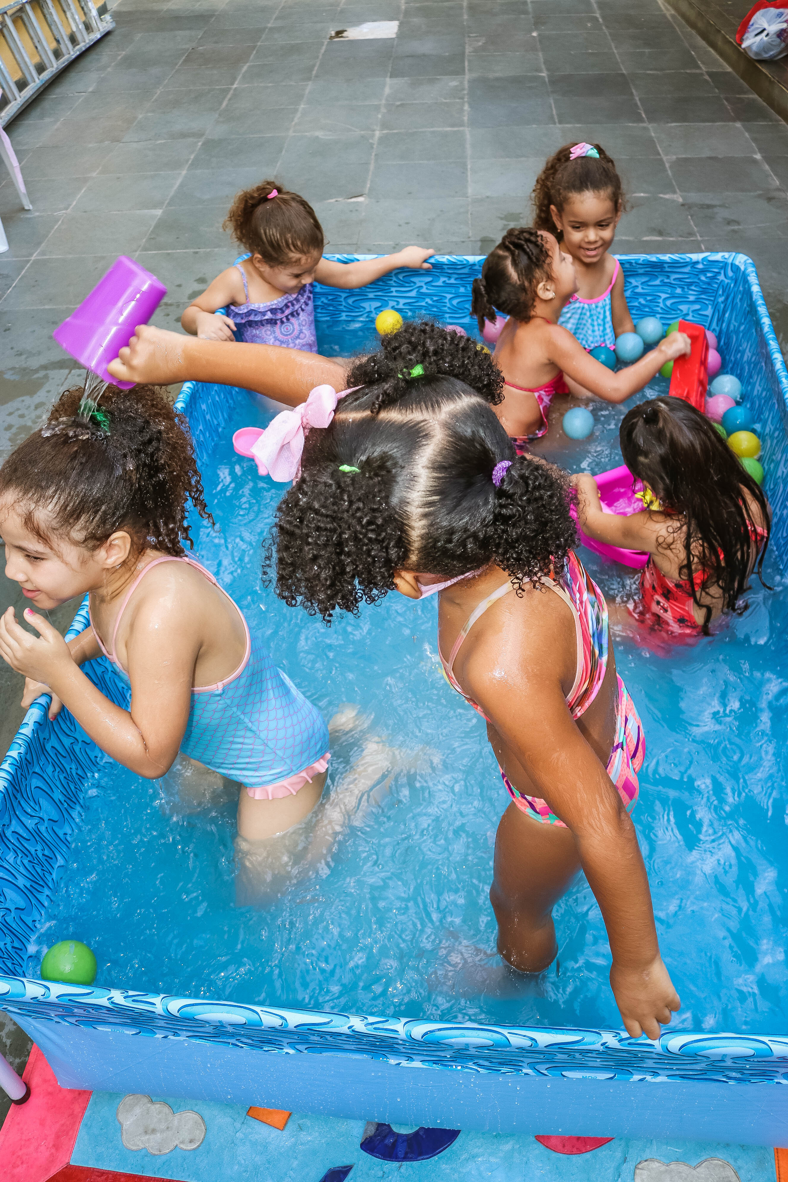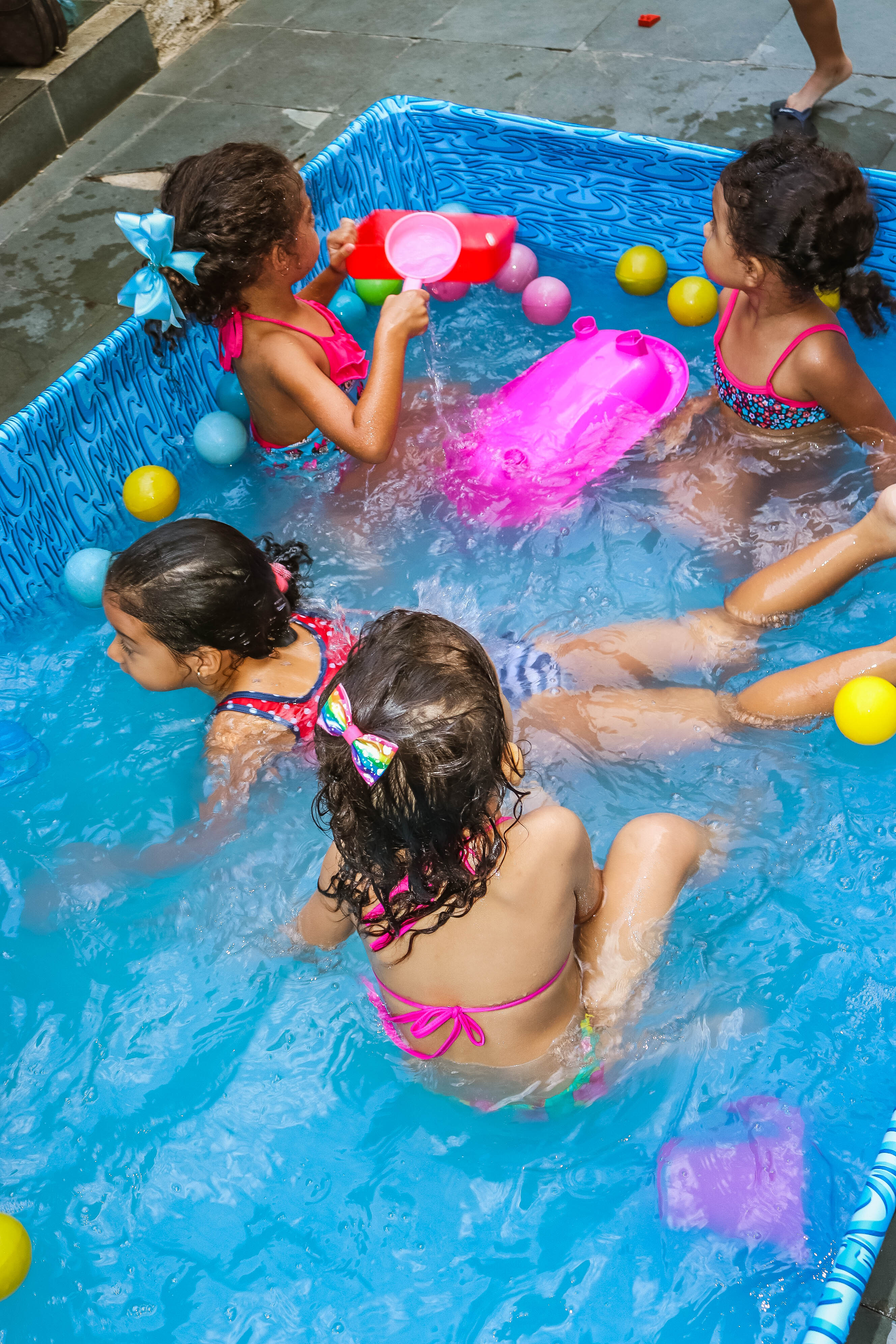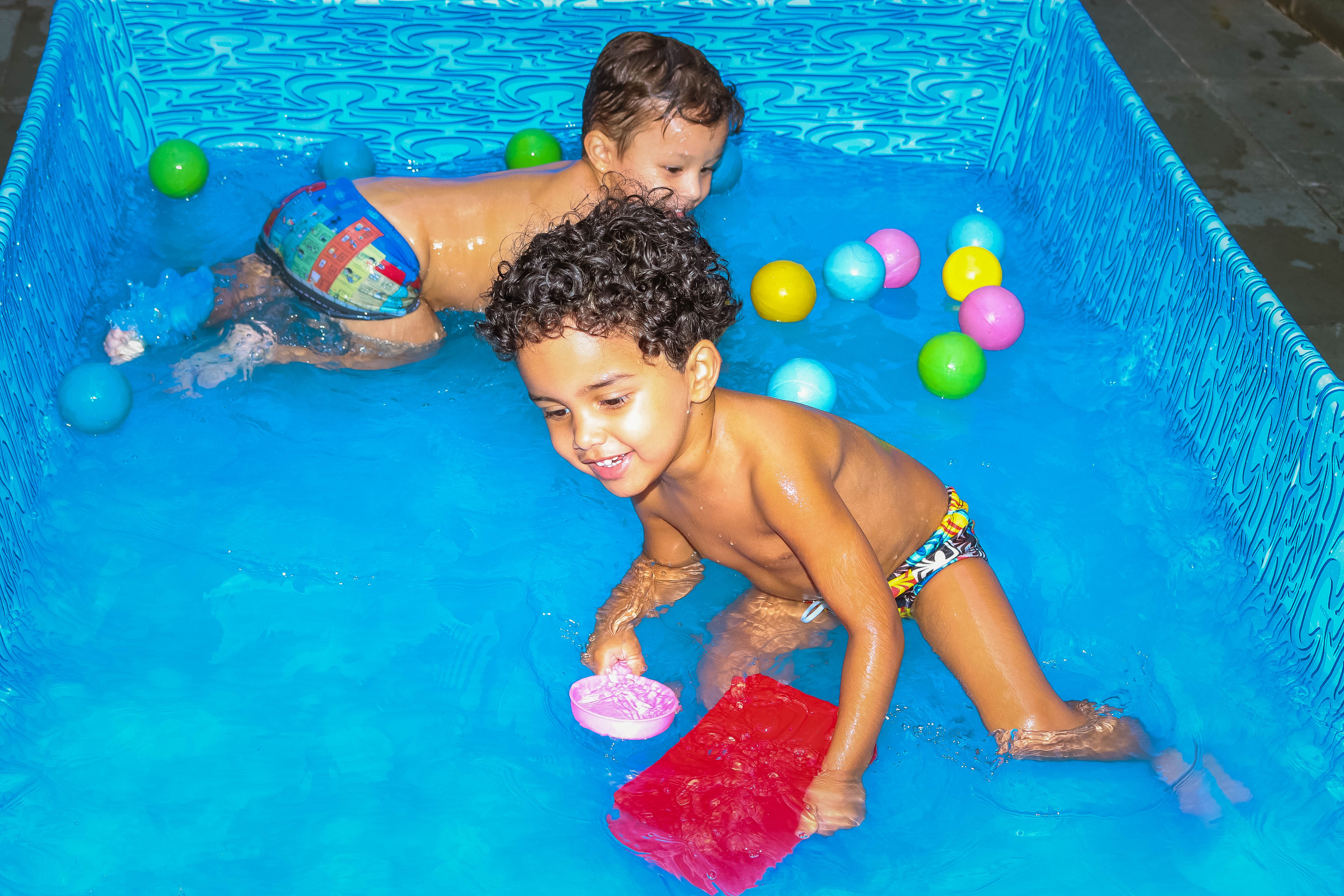 Pensando nisso, o banho de piscina propicia um excelente momento para o desenvolvimento do brincar e do criar.