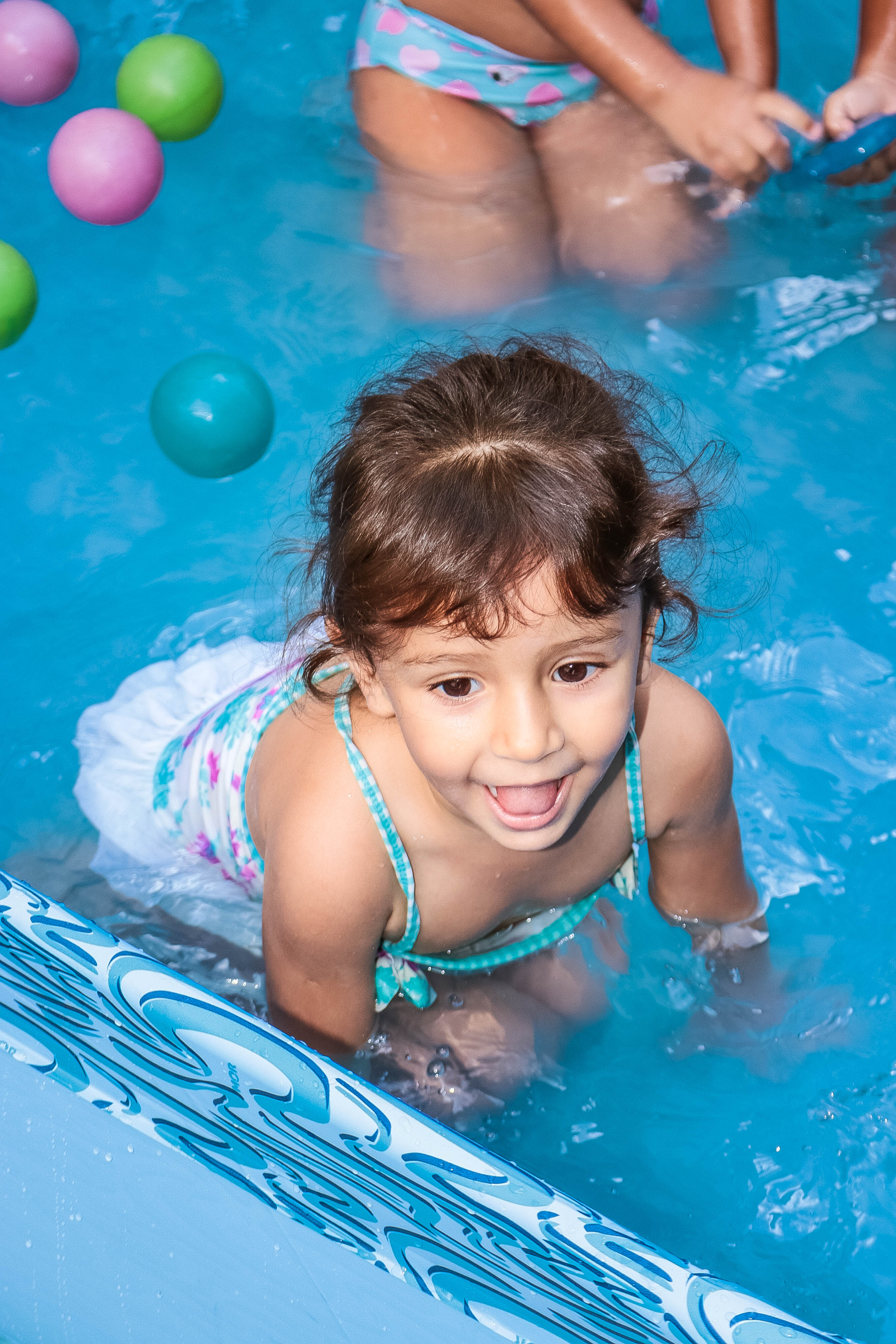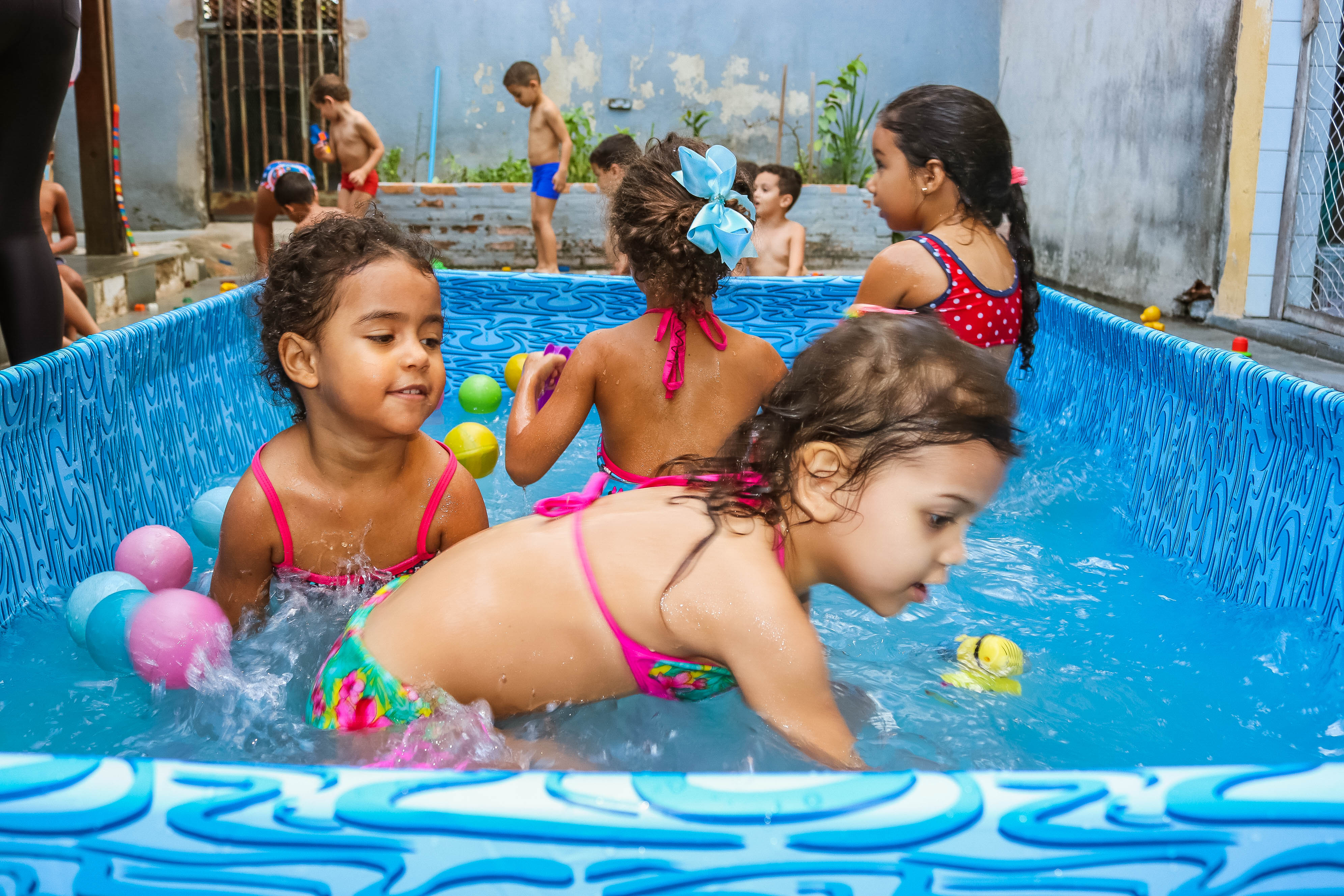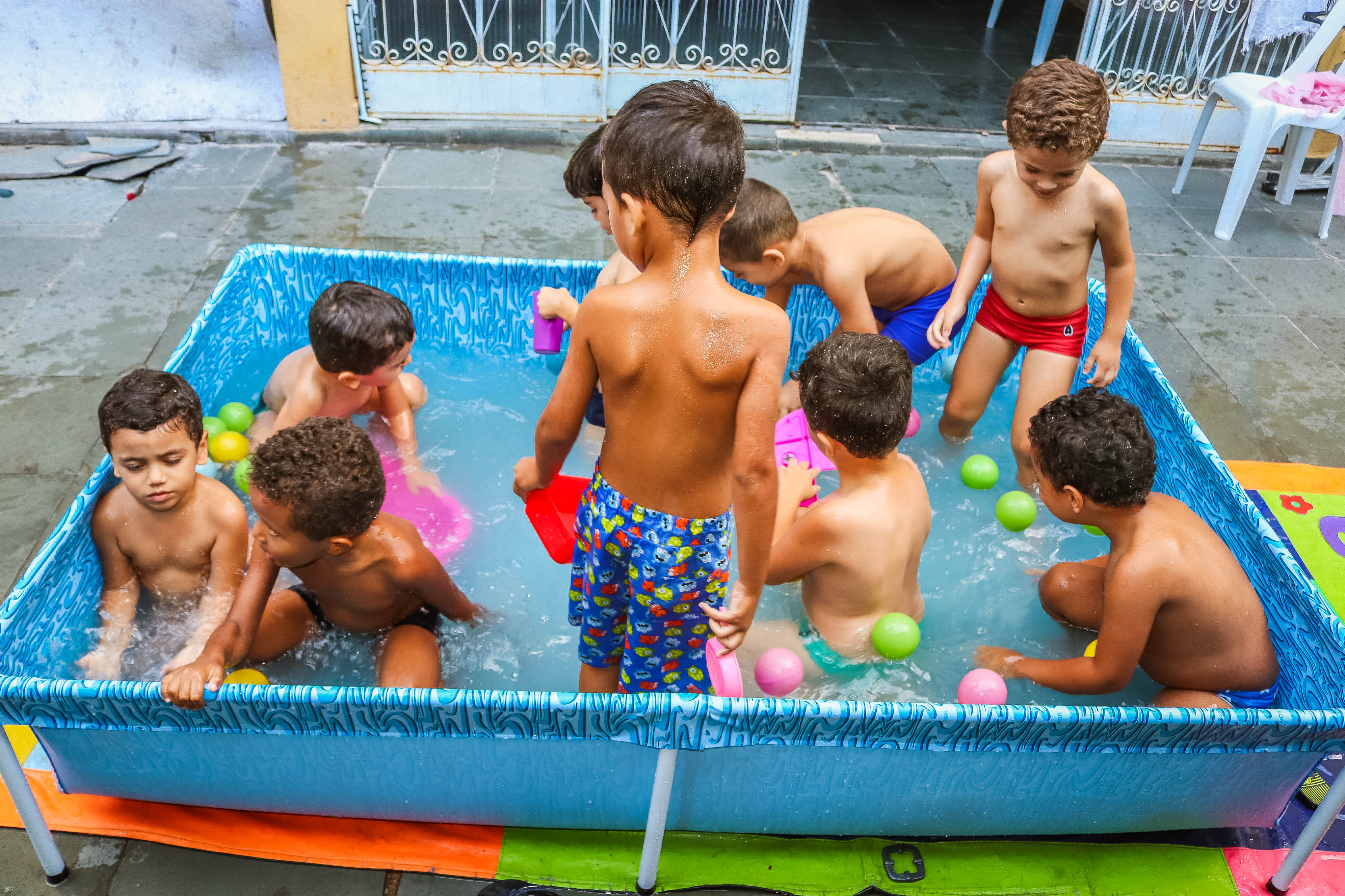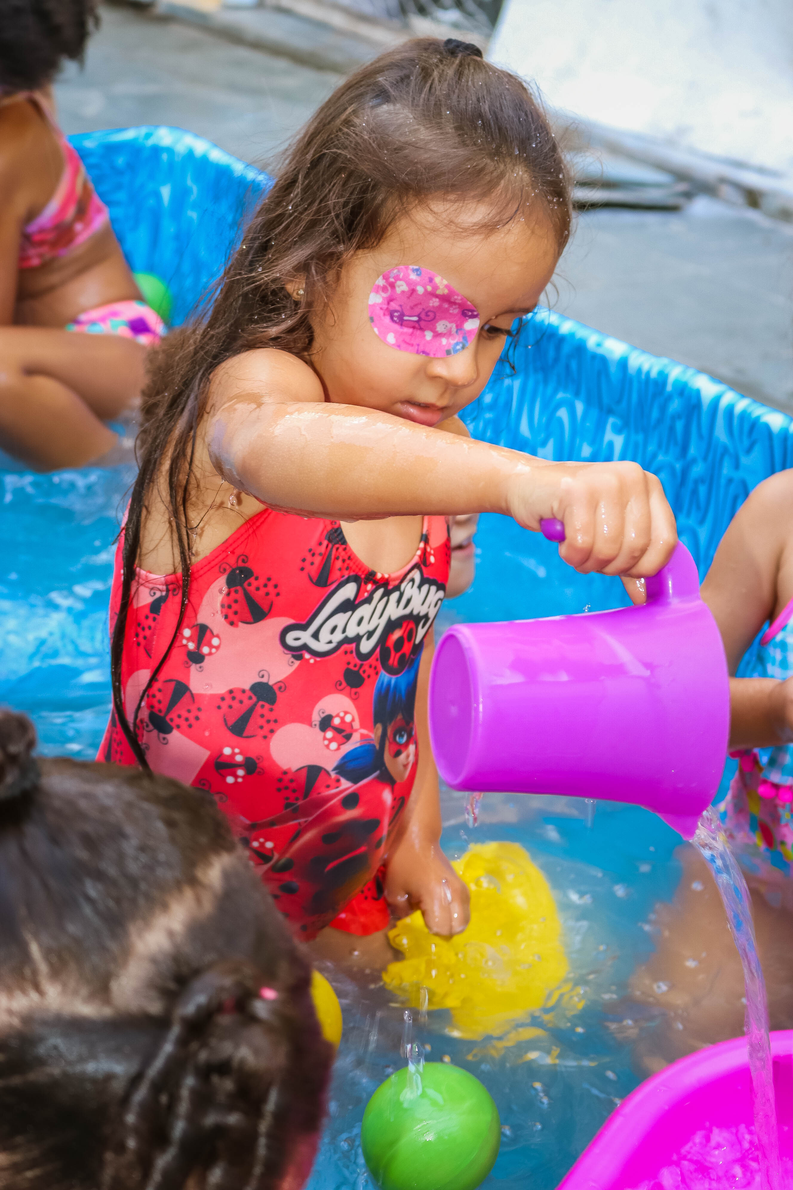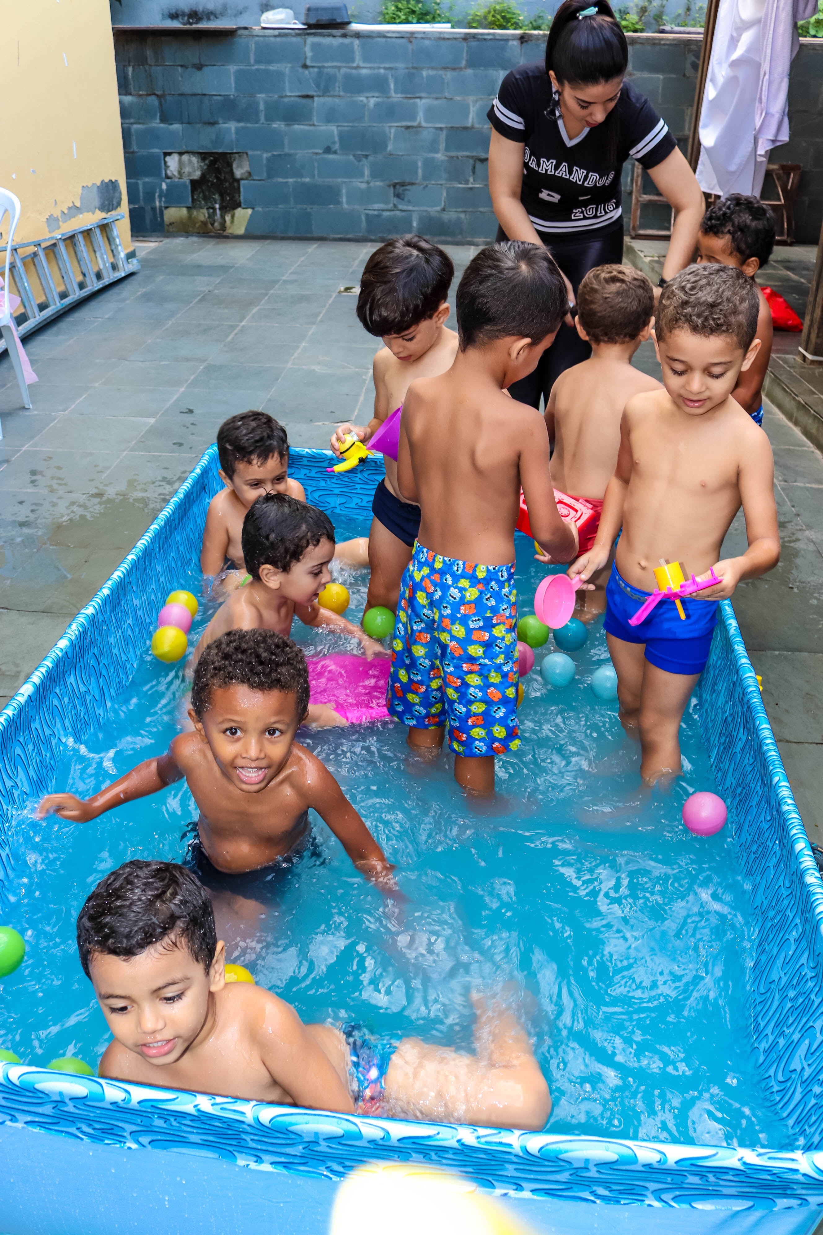 Pensando nisso, o banho de piscina propicia um excelente momento para o desenvolvimento do brincar e do criar.