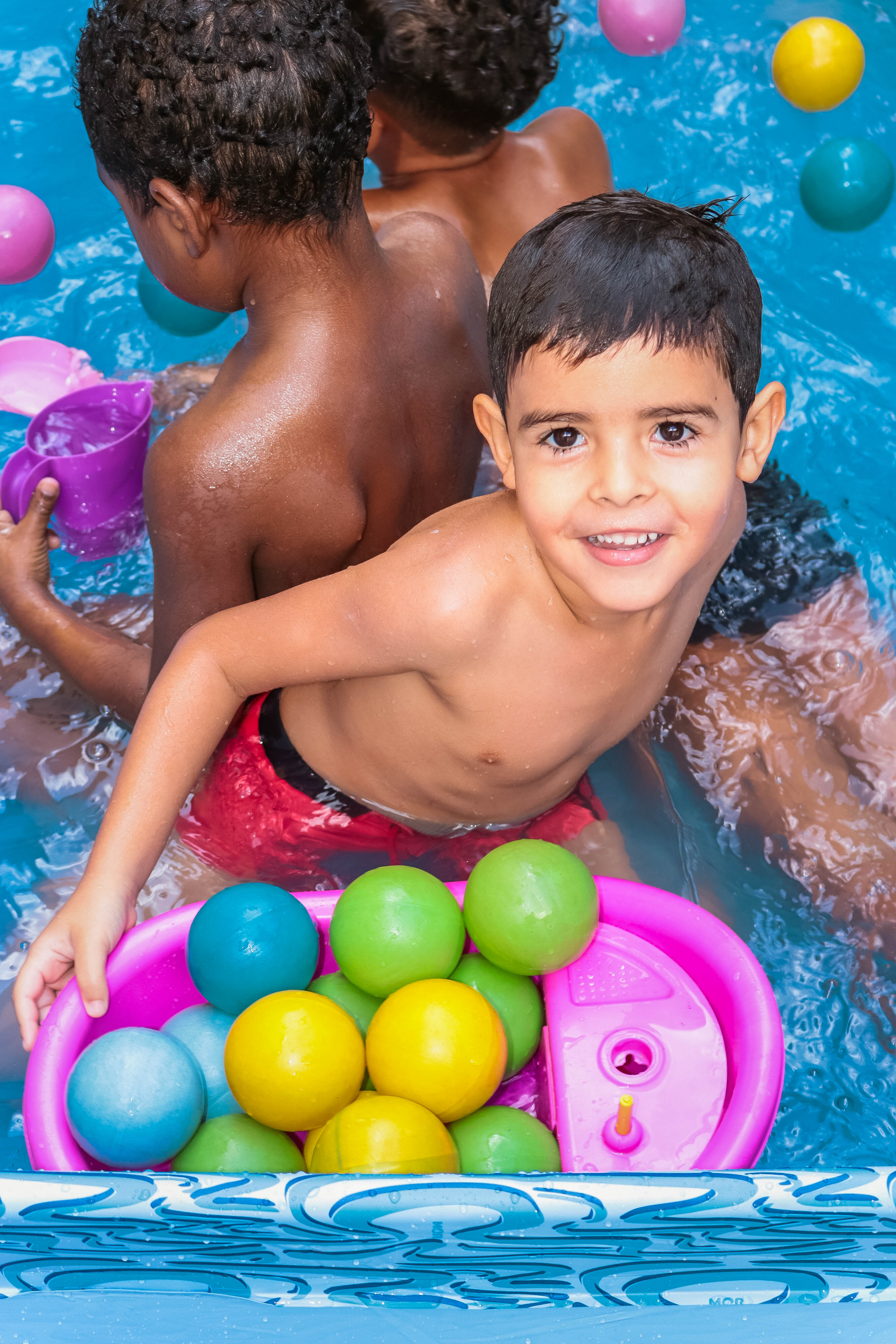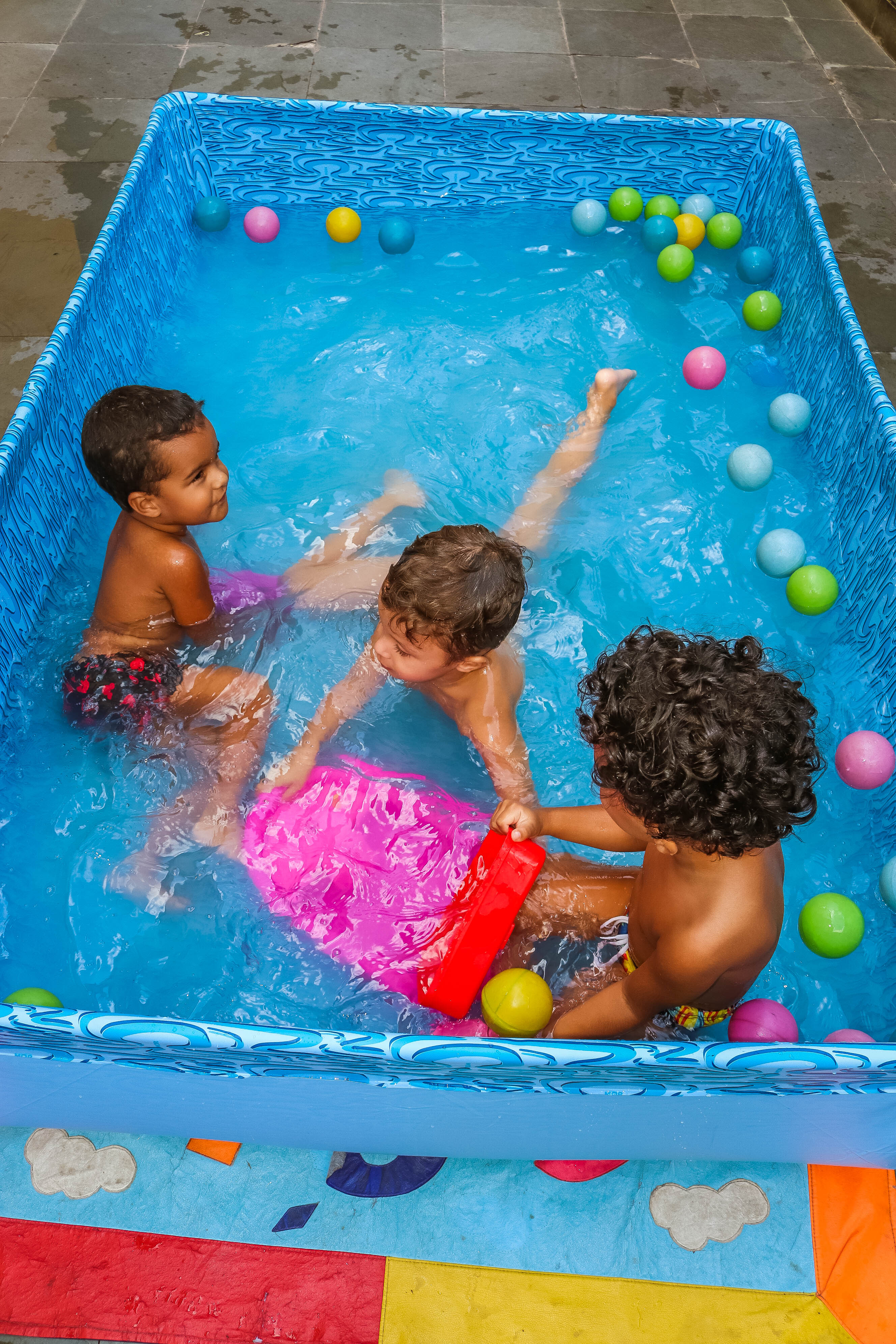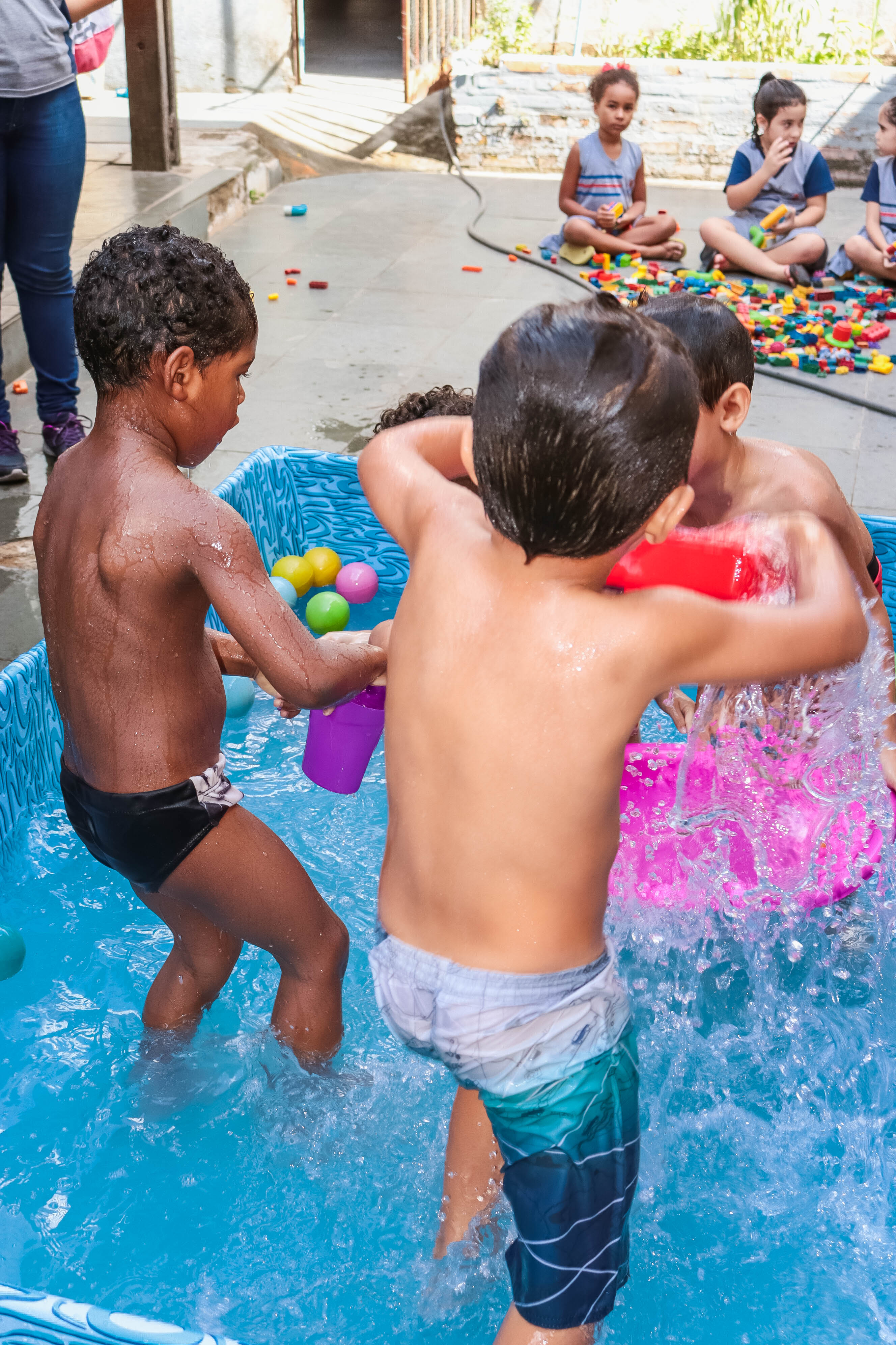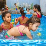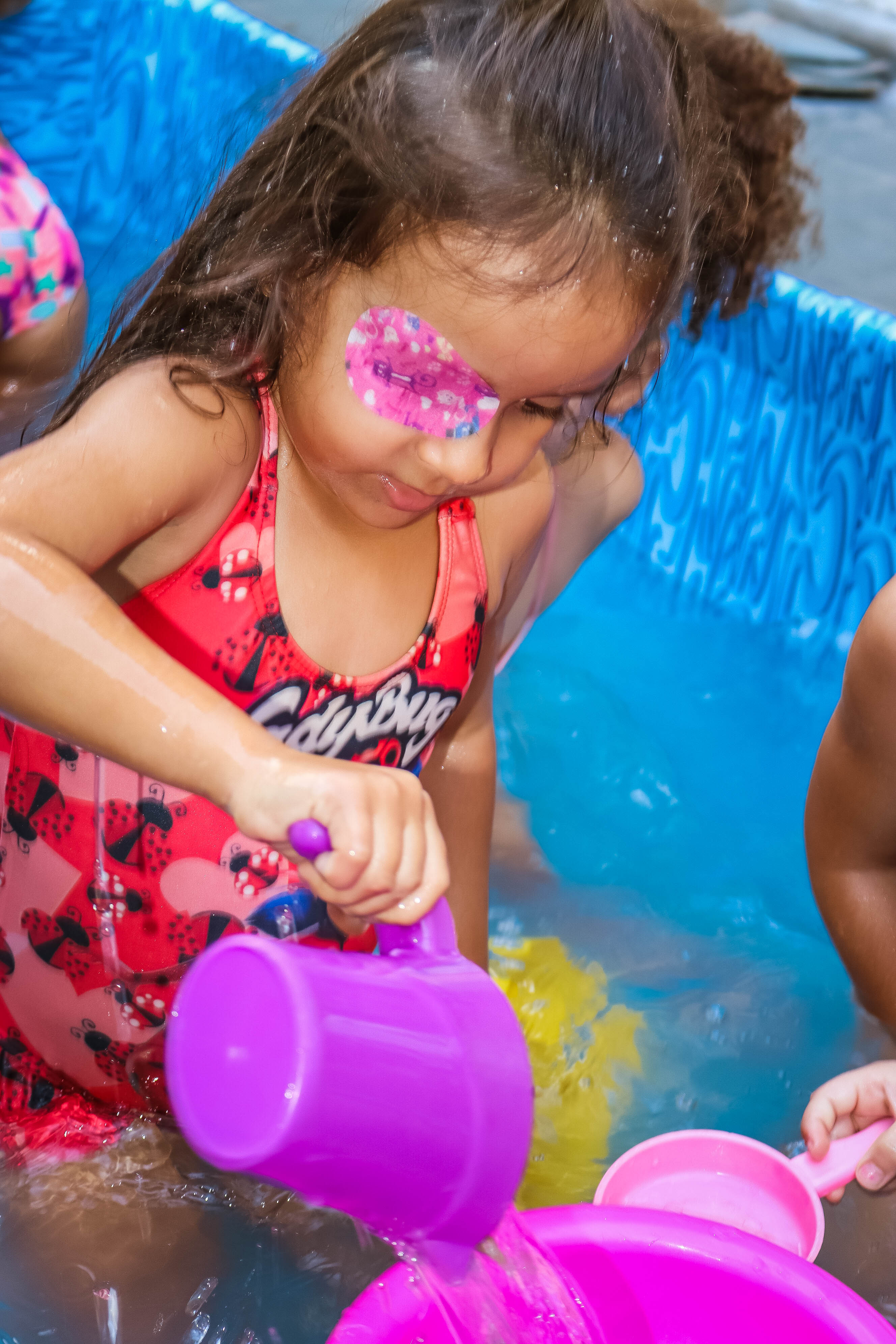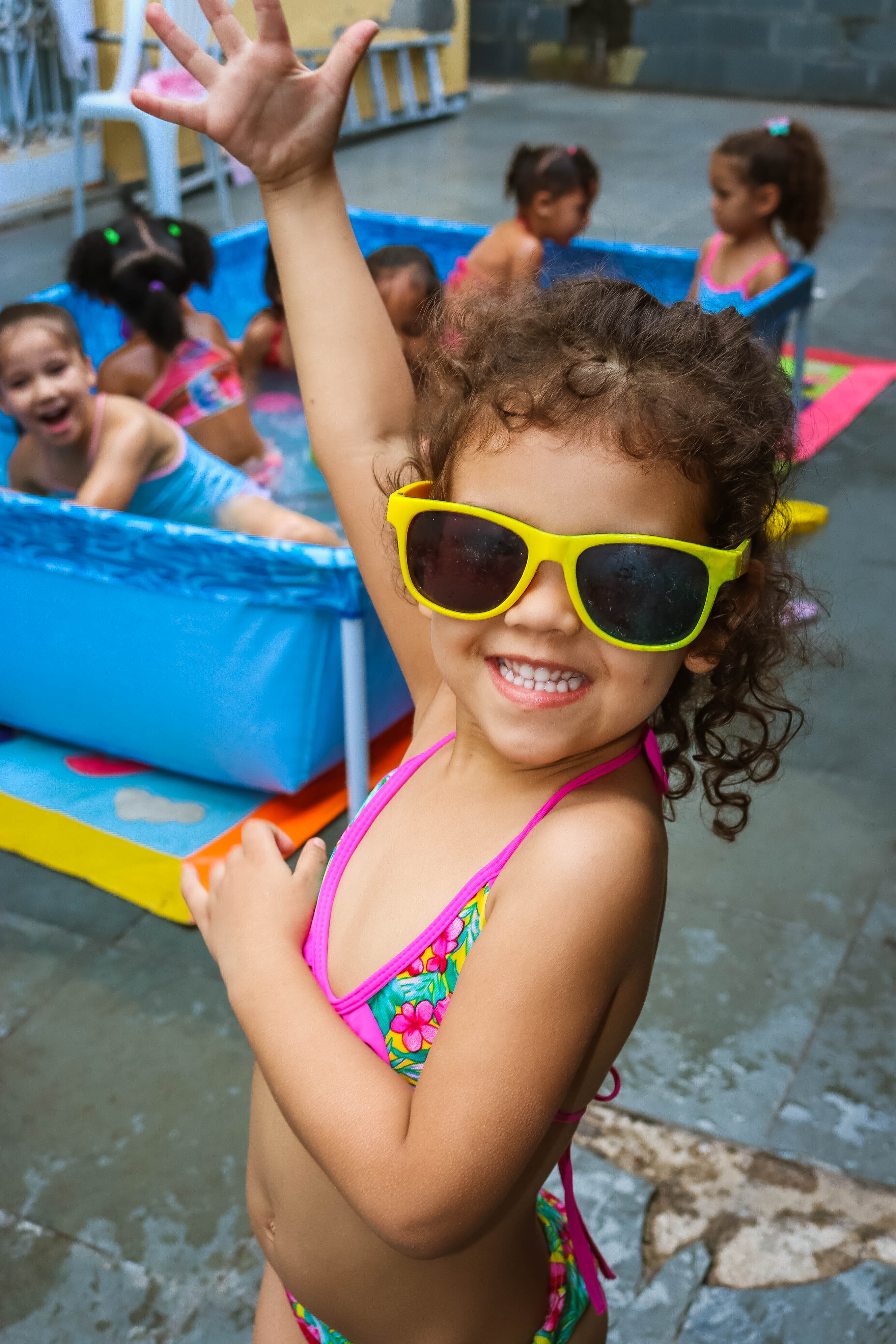 Pensando nisso, o banho de piscina propicia um excelente momento para o desenvolvimento do brincar e do criar.