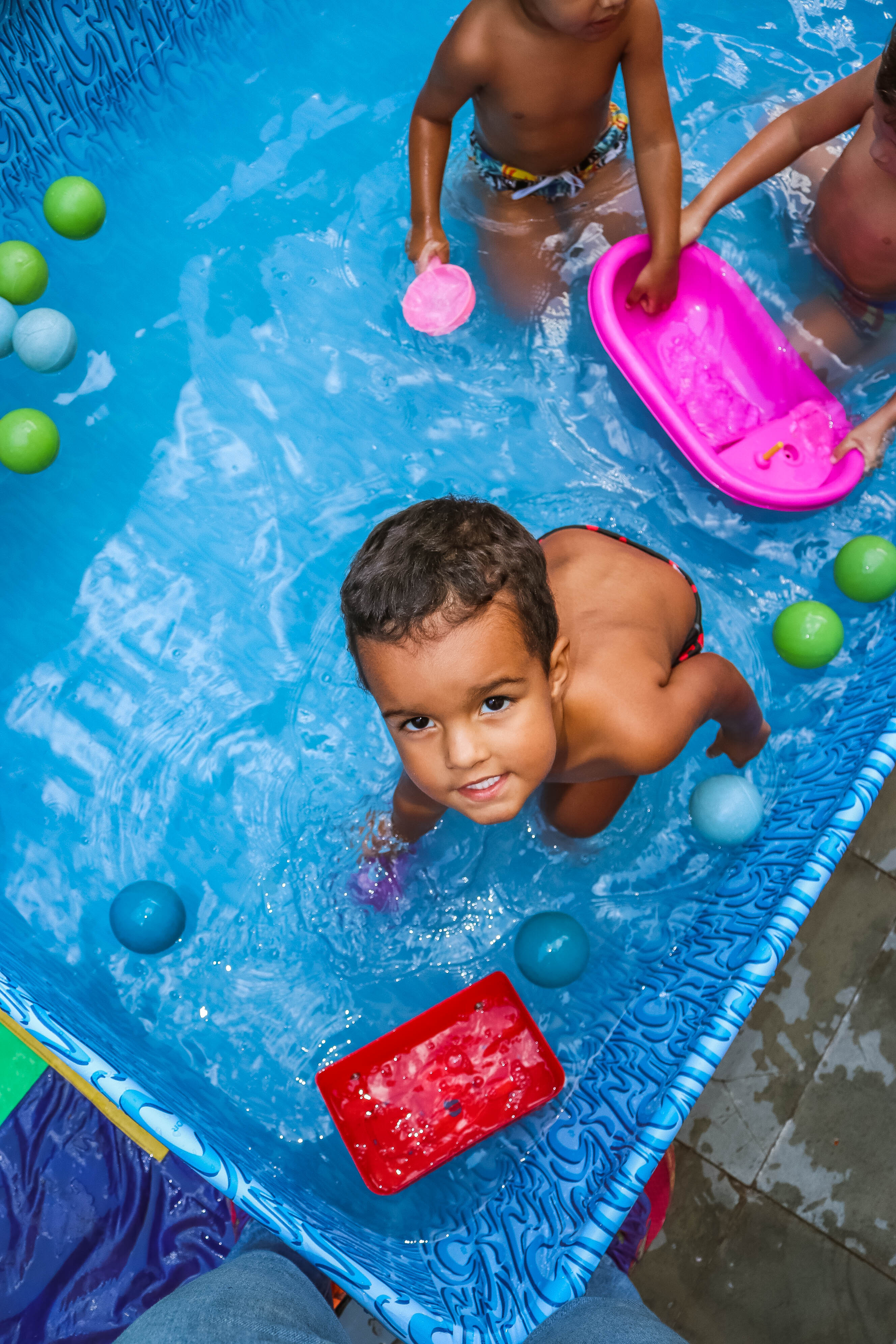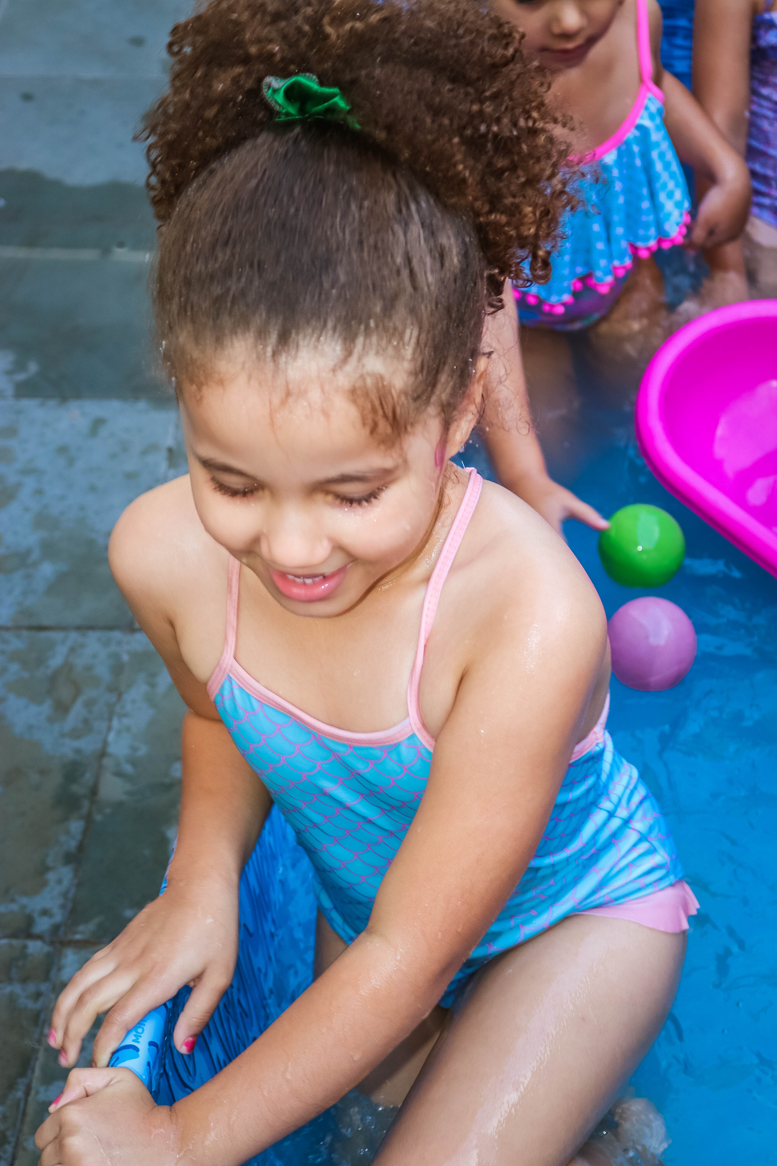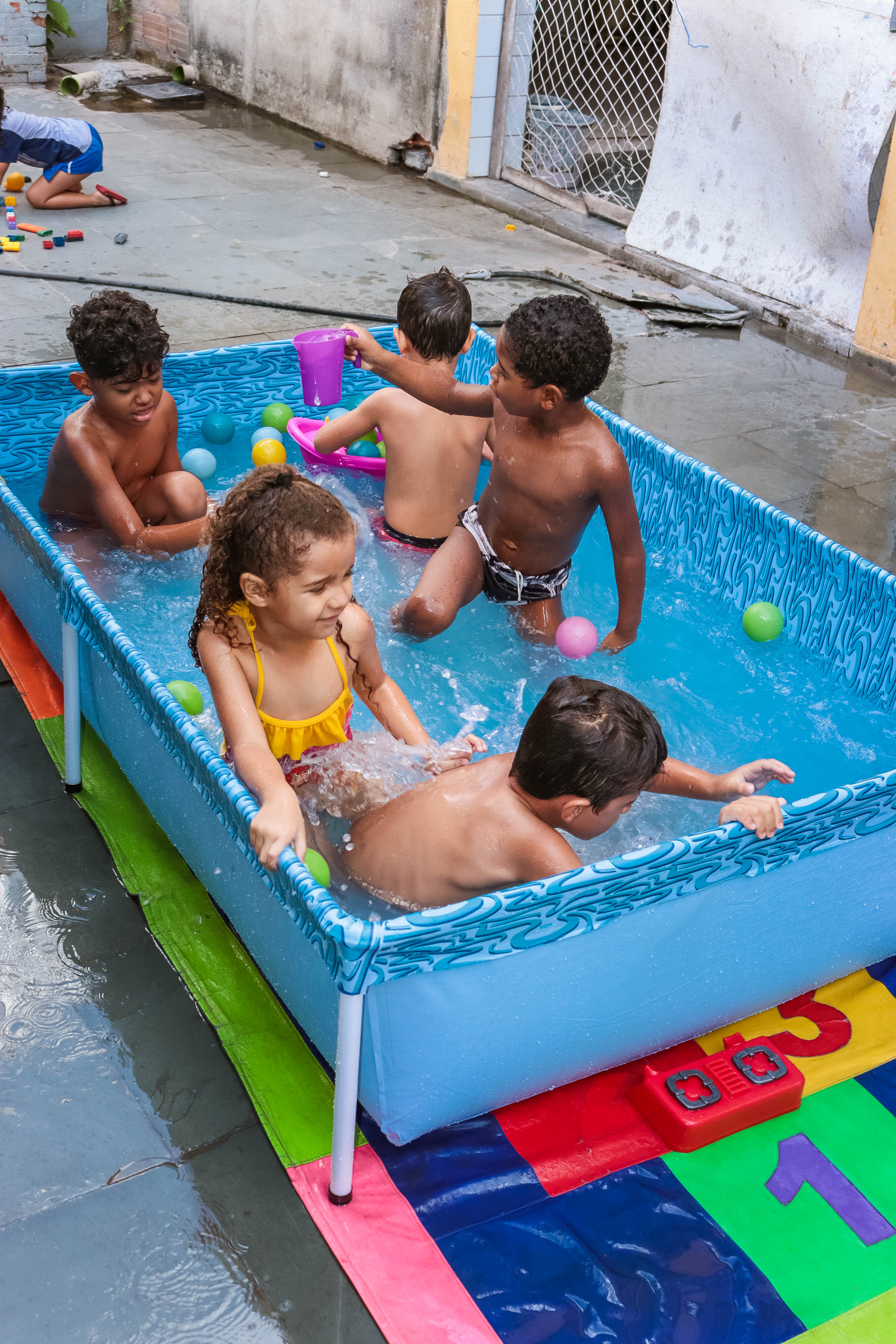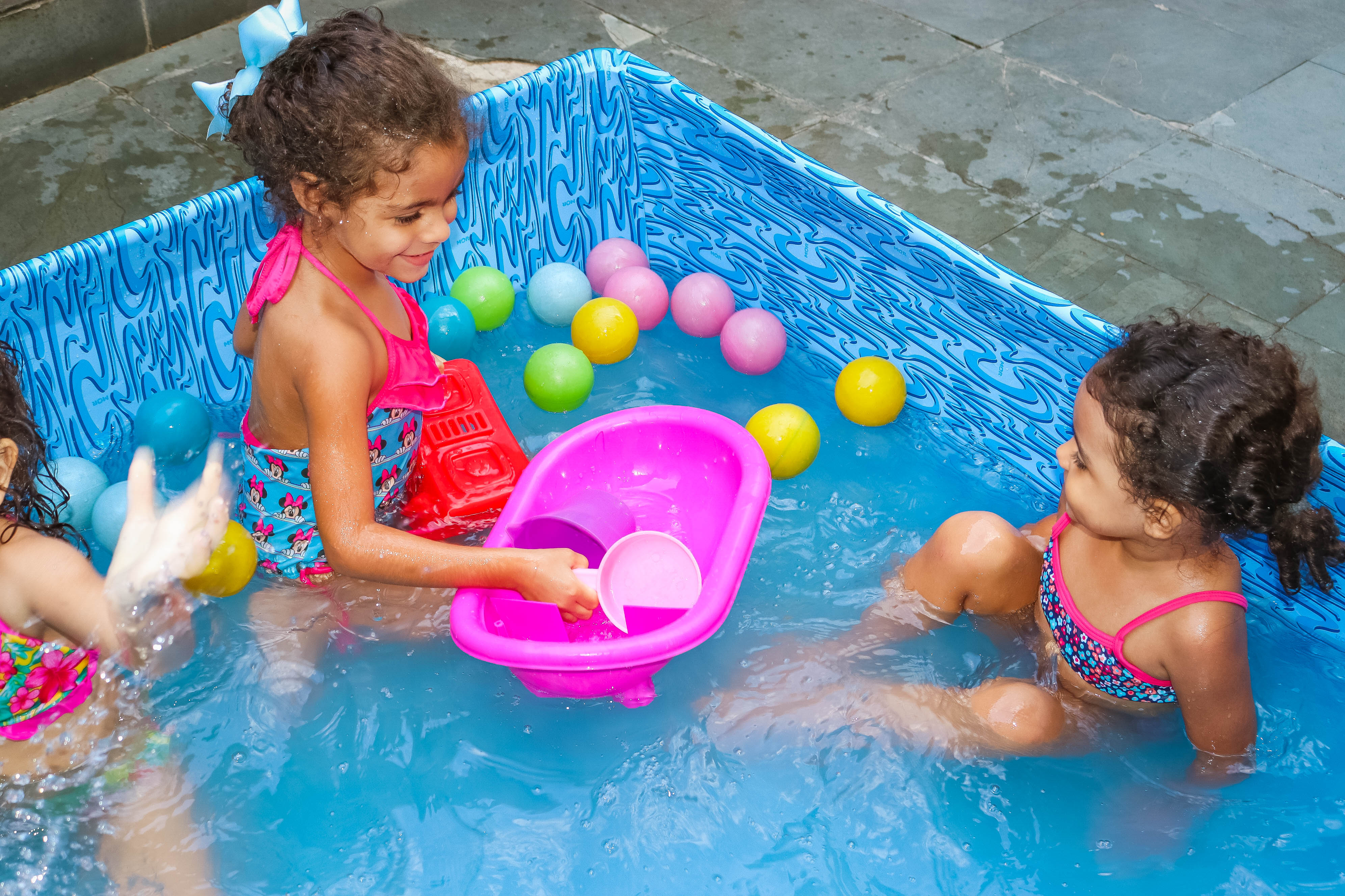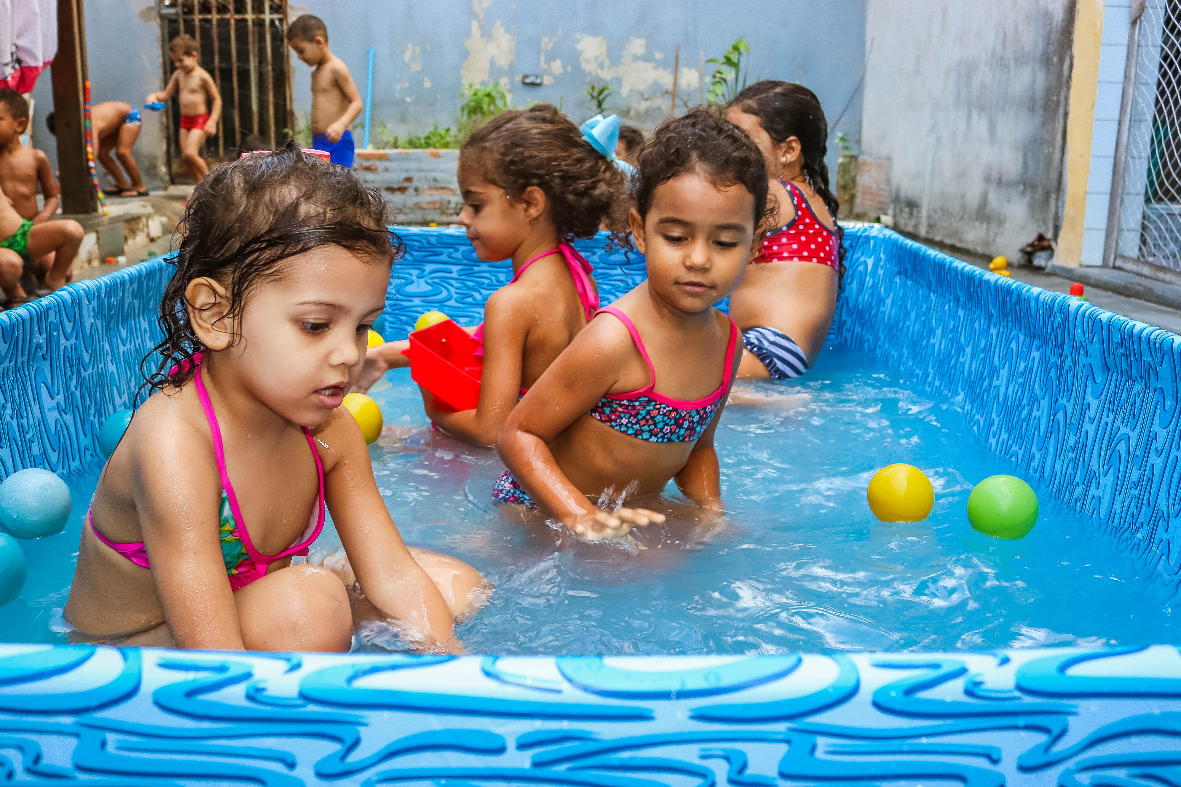 Pensando nisso, o banho de piscina propicia um excelente momento para o desenvolvimento do brincar e do criar.