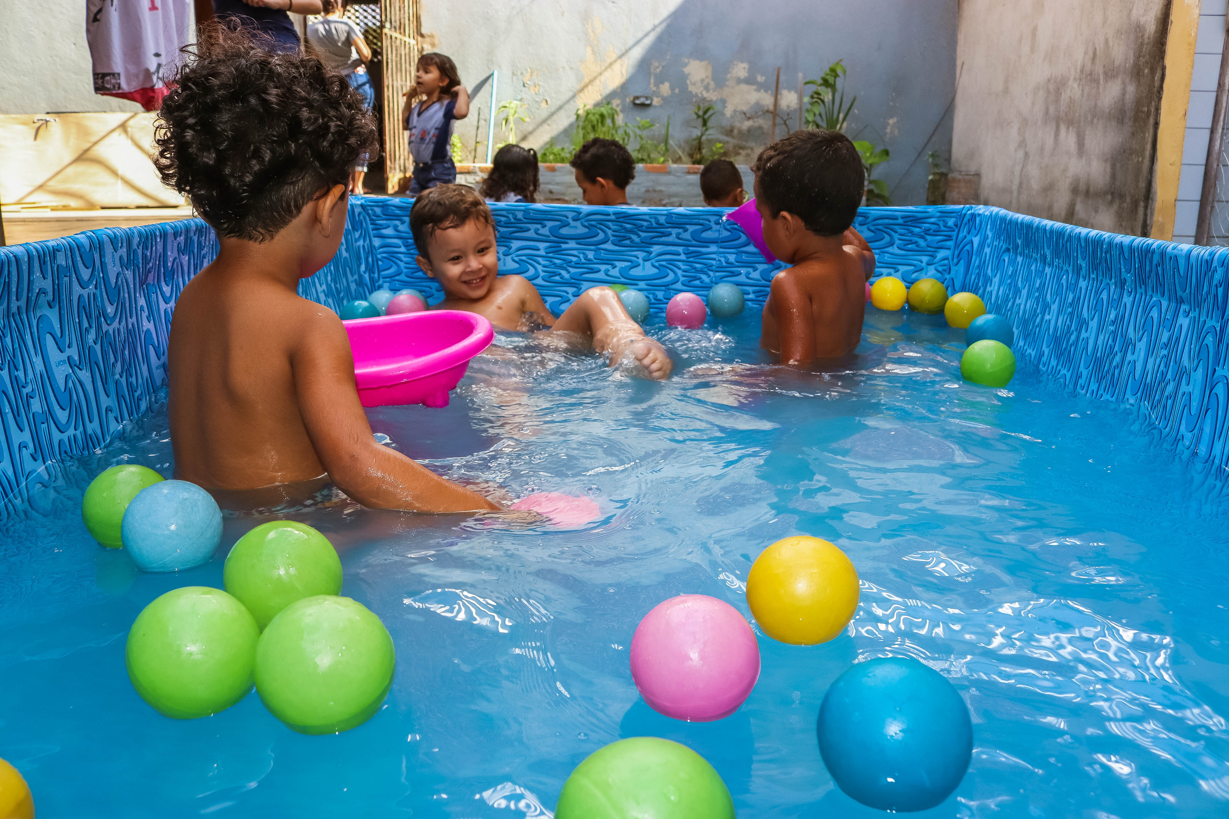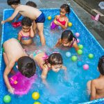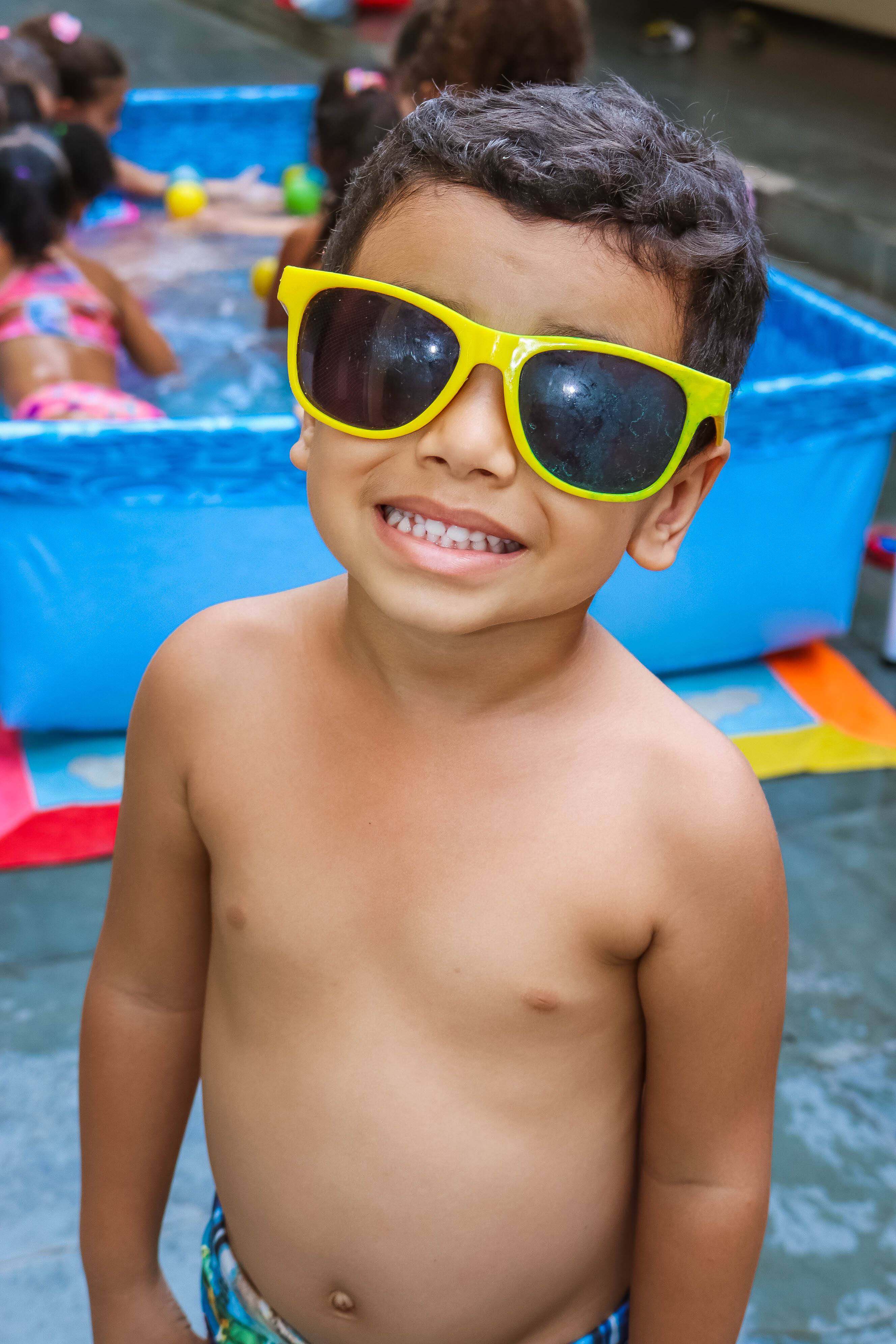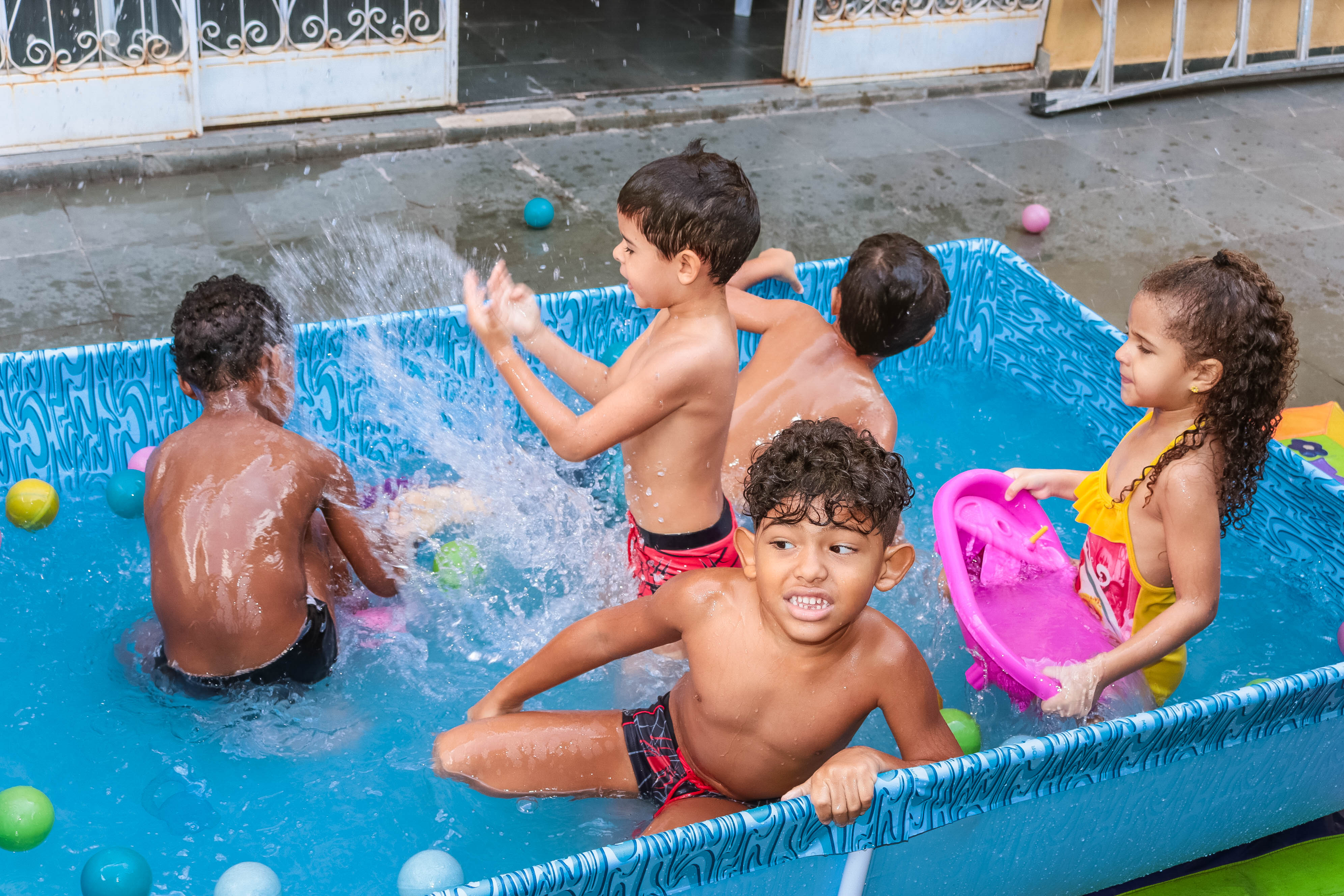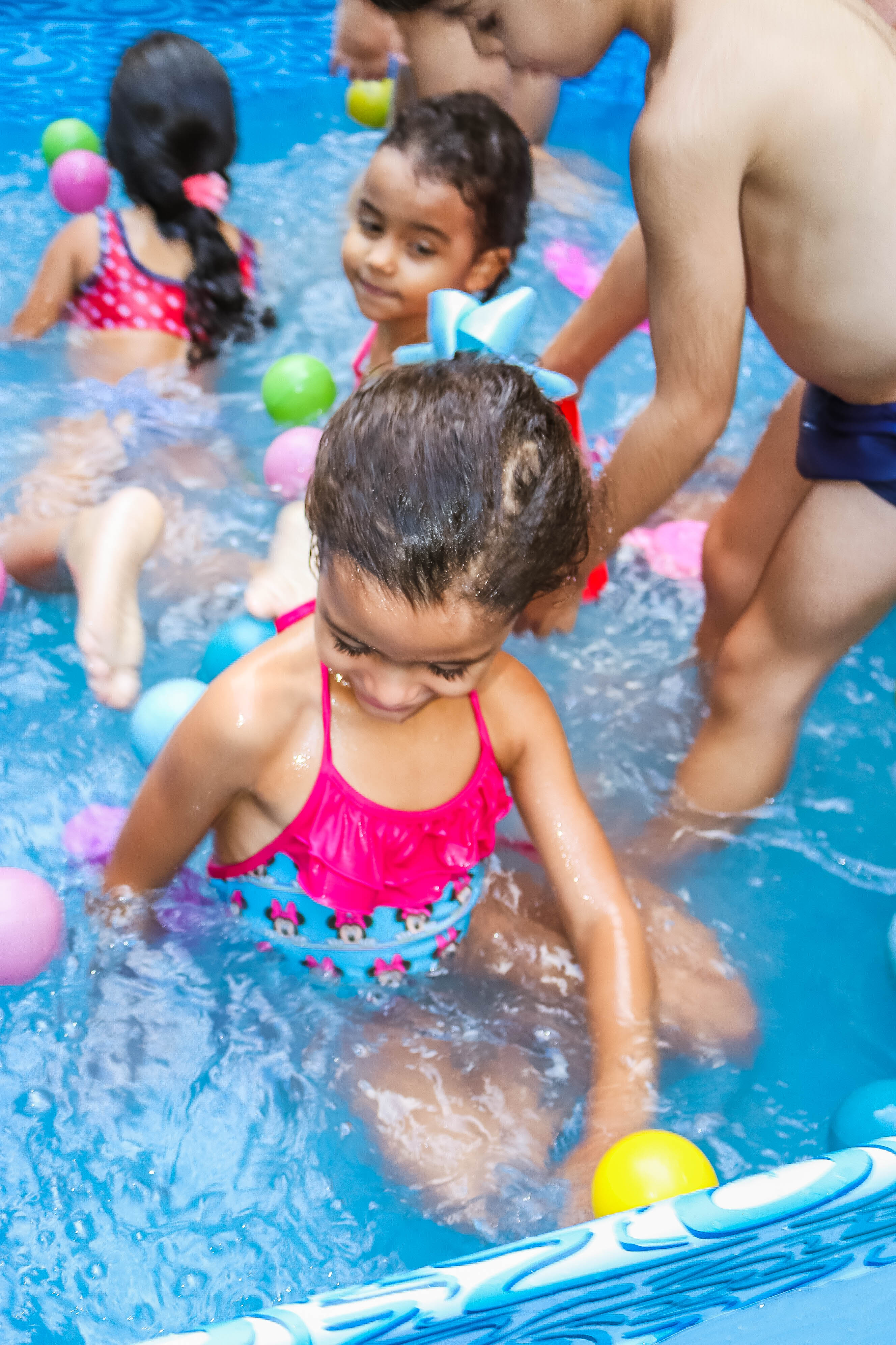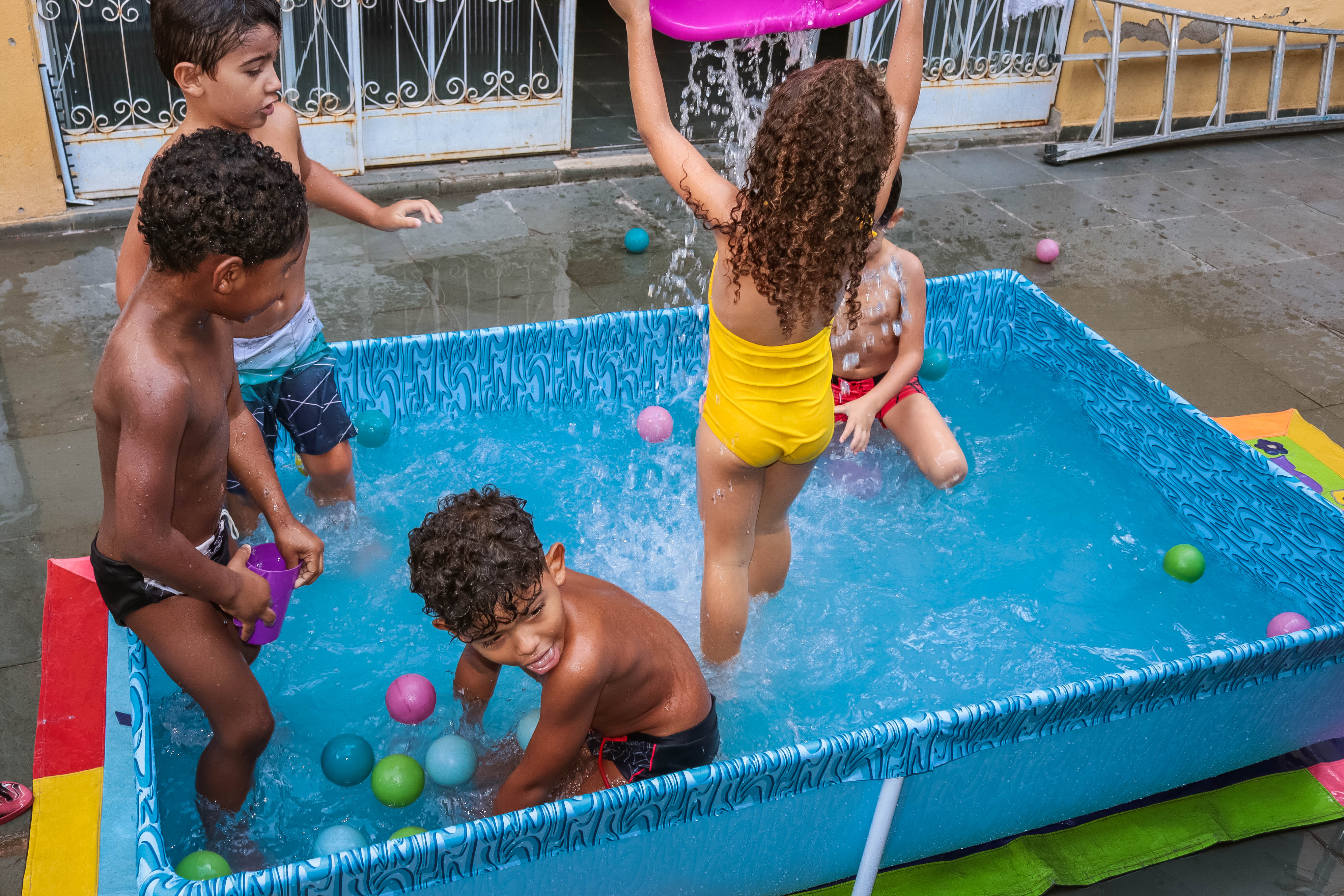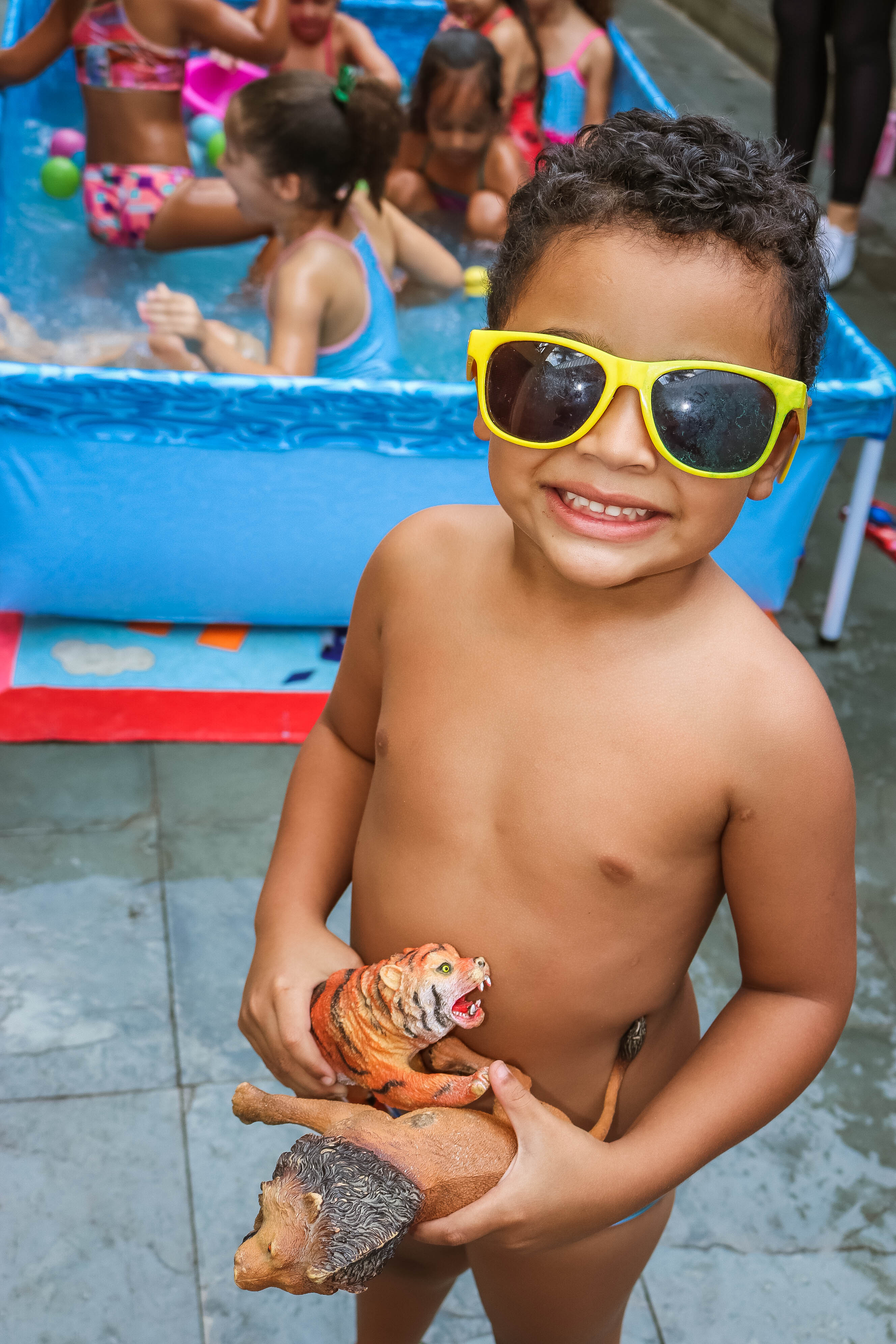 Pensando nisso, o banho de piscina propicia um excelente momento para o desenvolvimento do brincar e do criar.