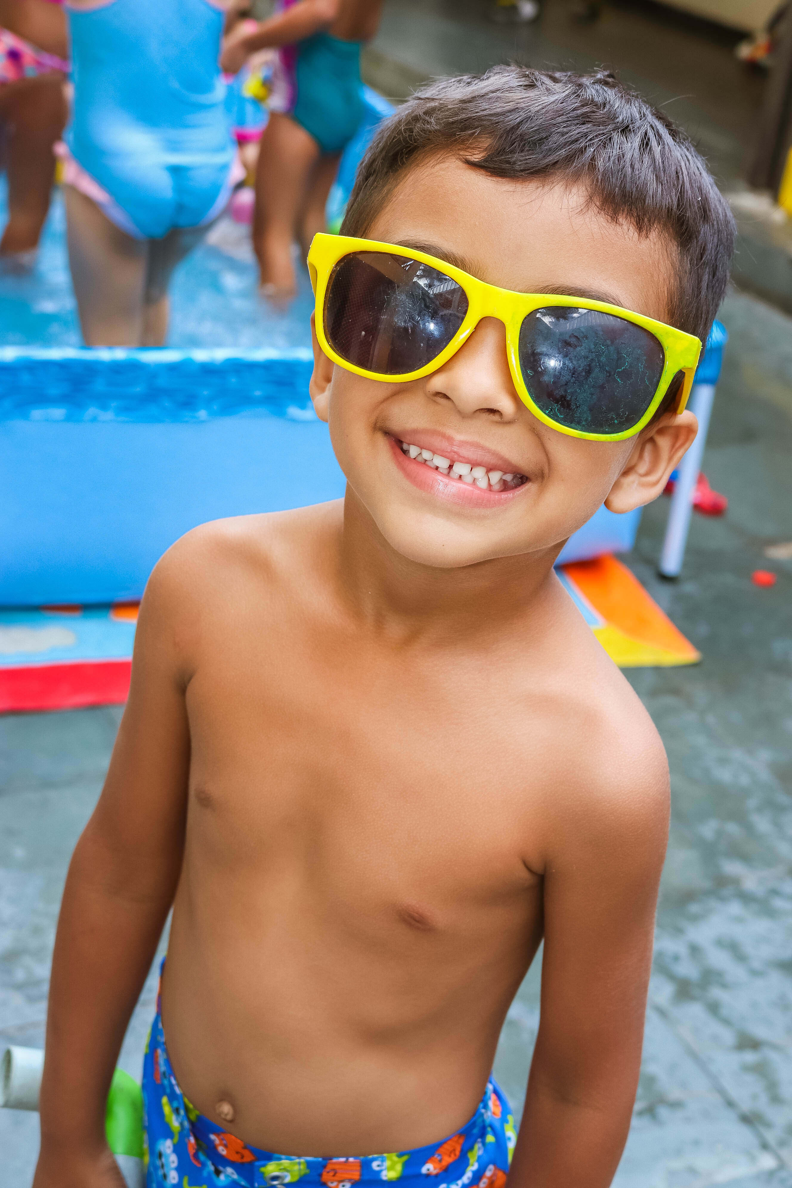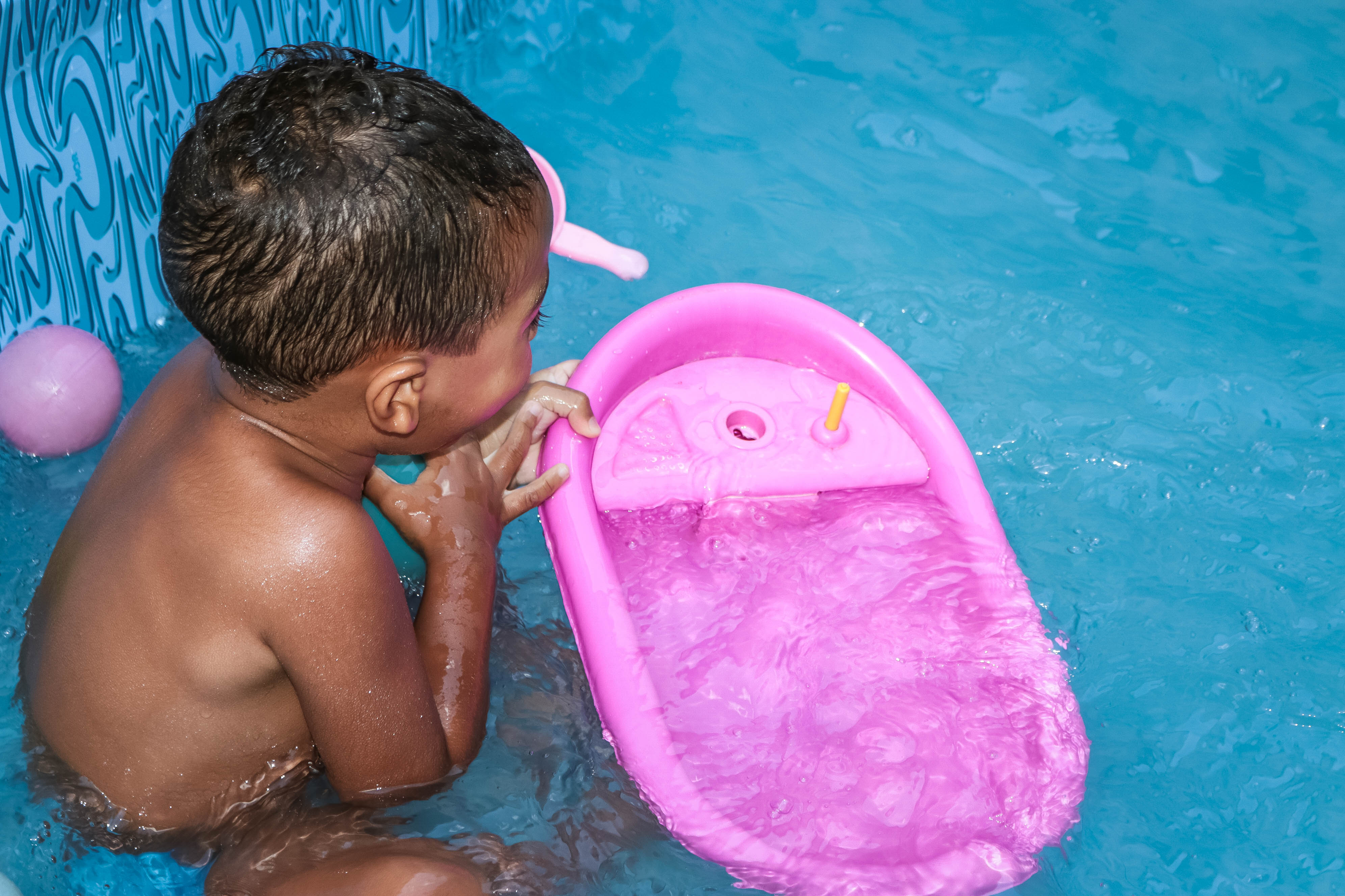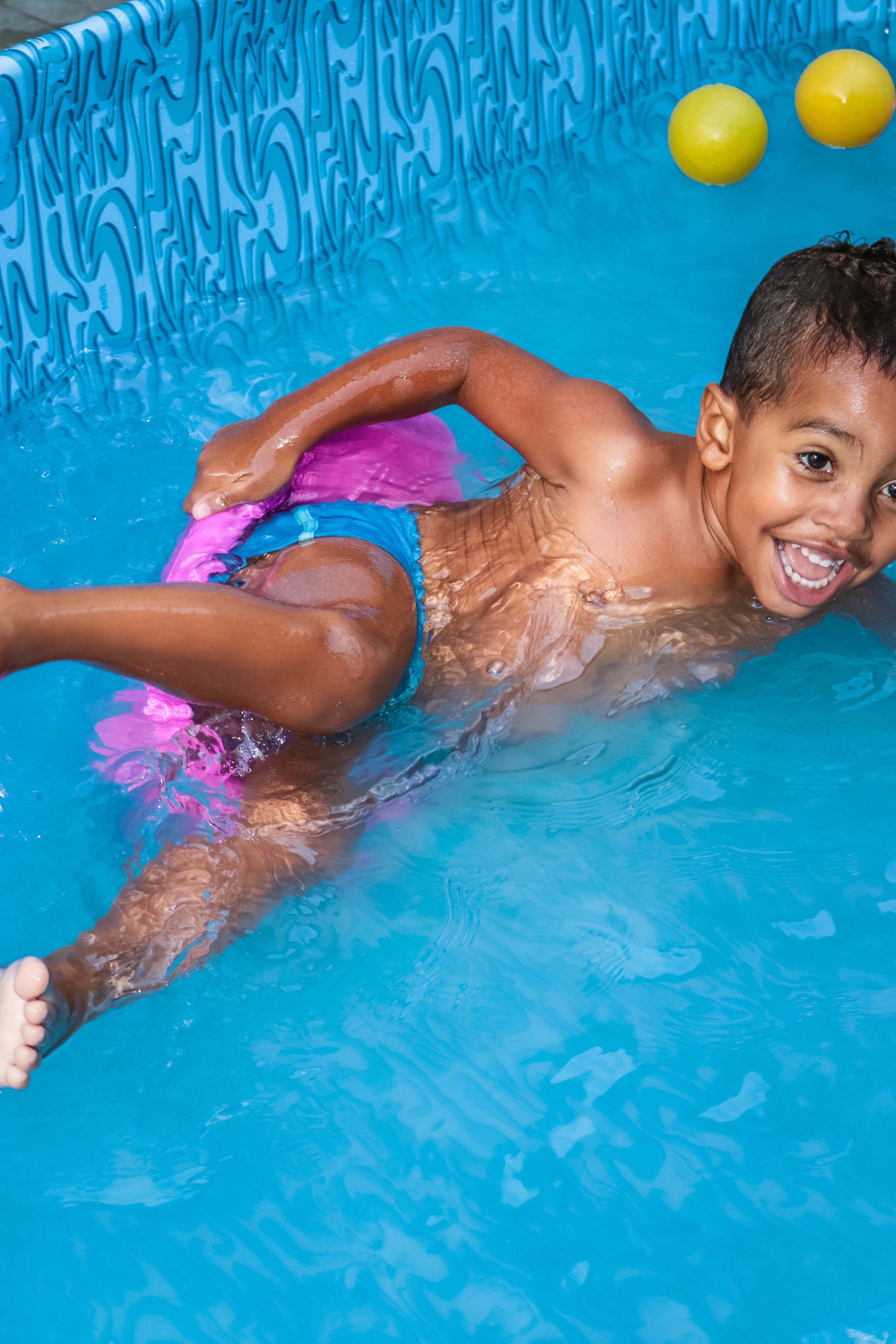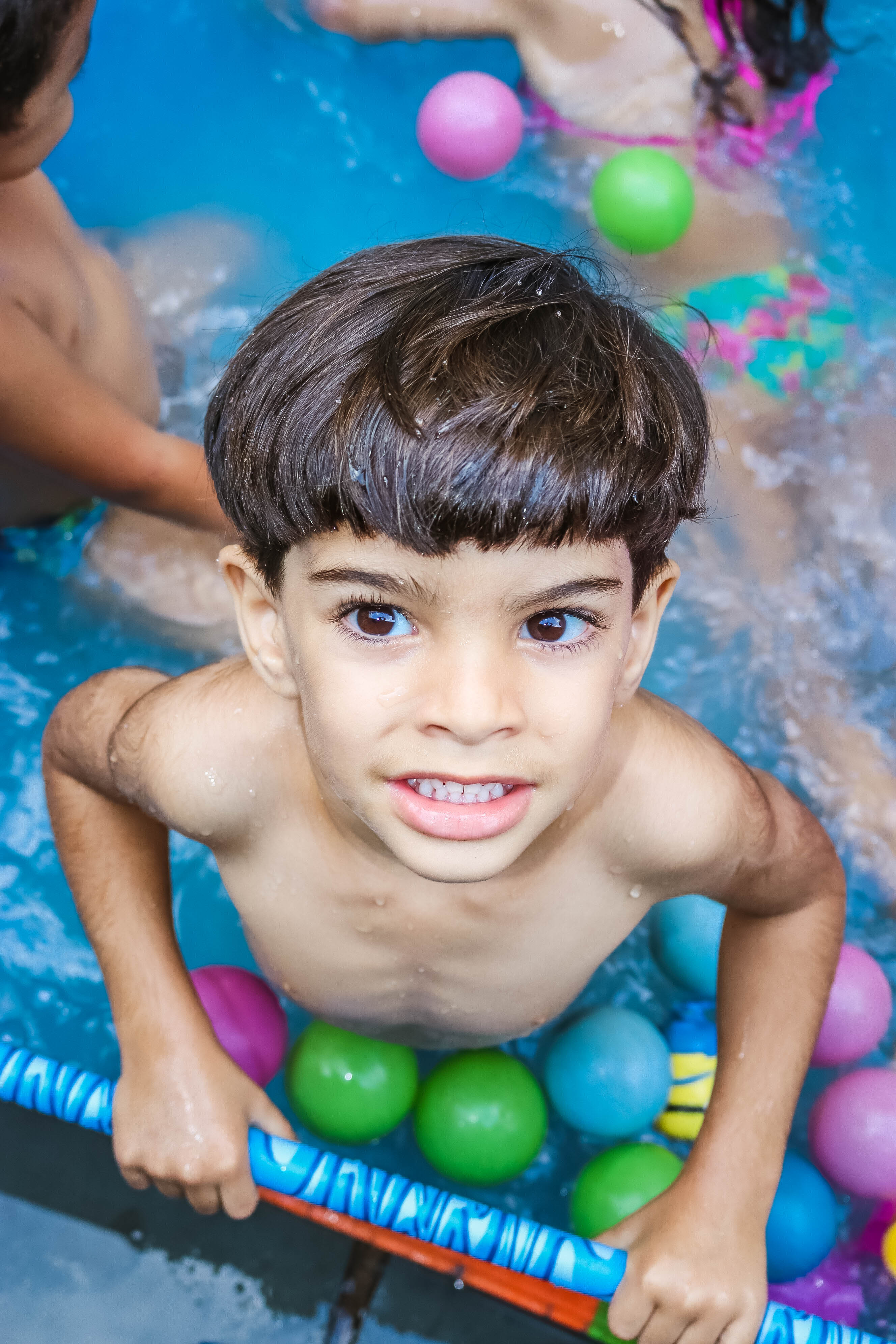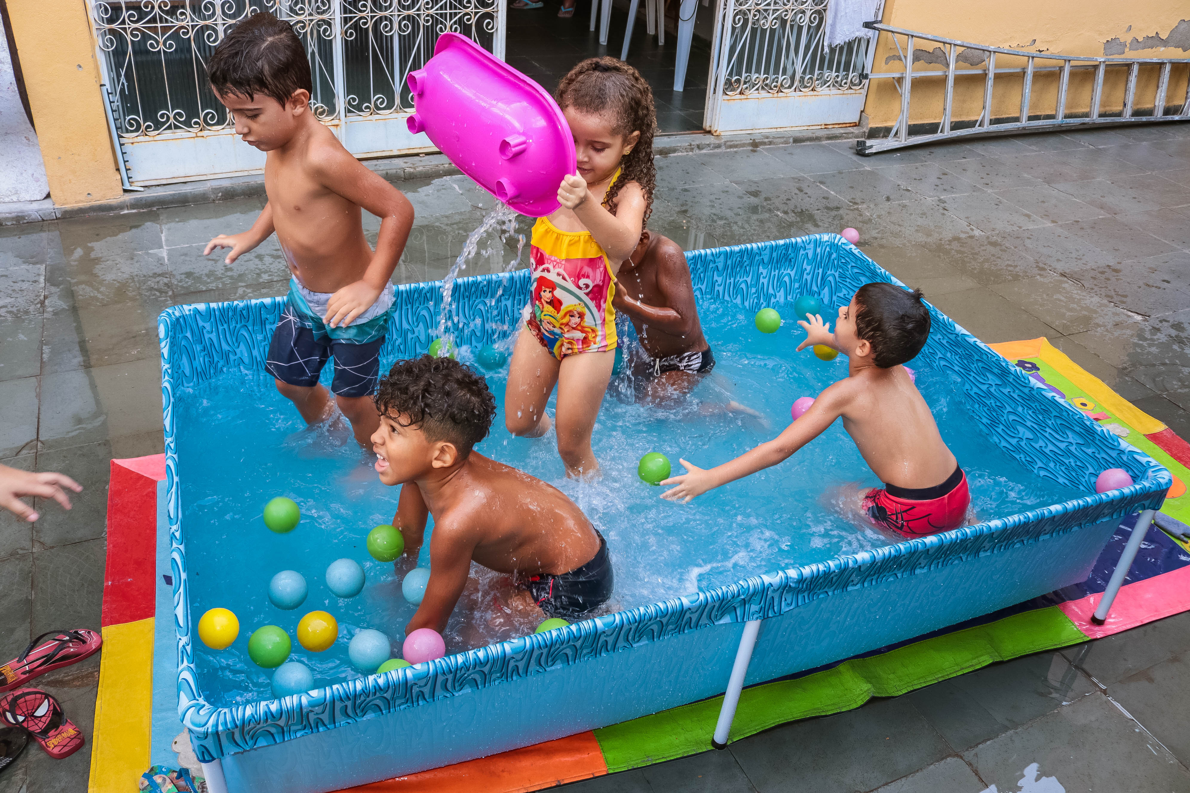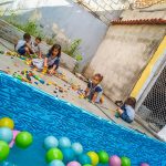 Pensando nisso, o banho de piscina propicia um excelente momento para o desenvolvimento do brincar e do criar.