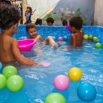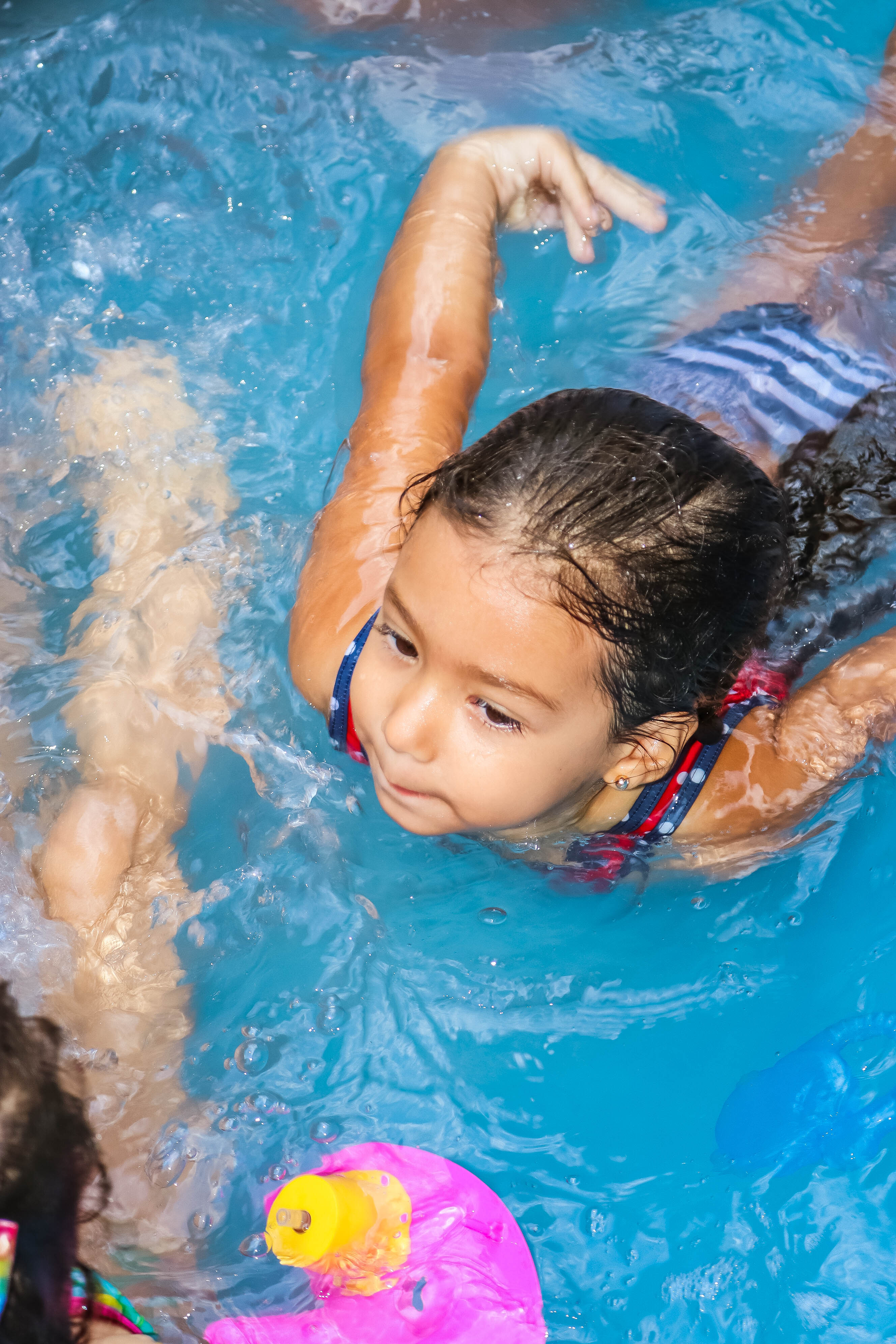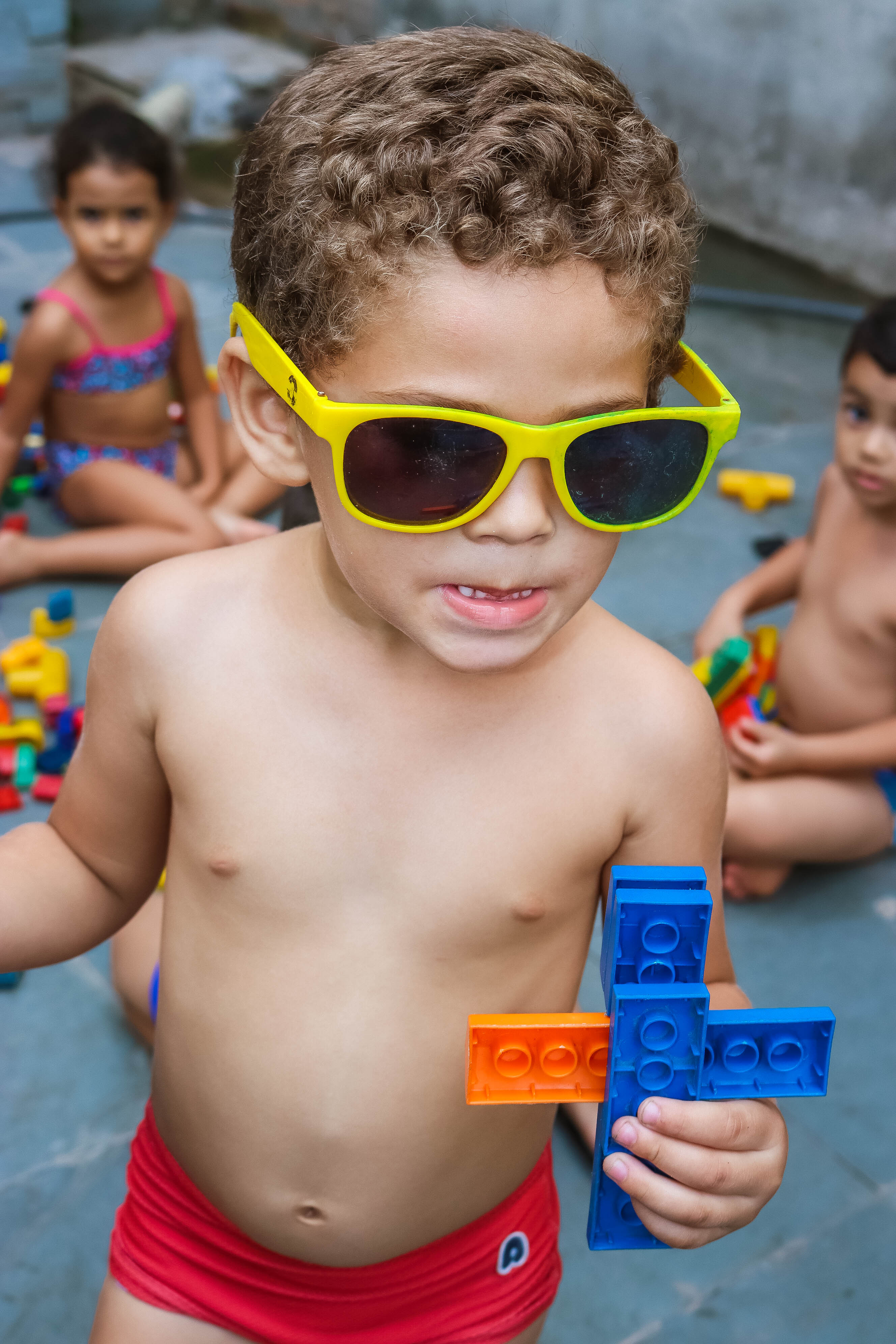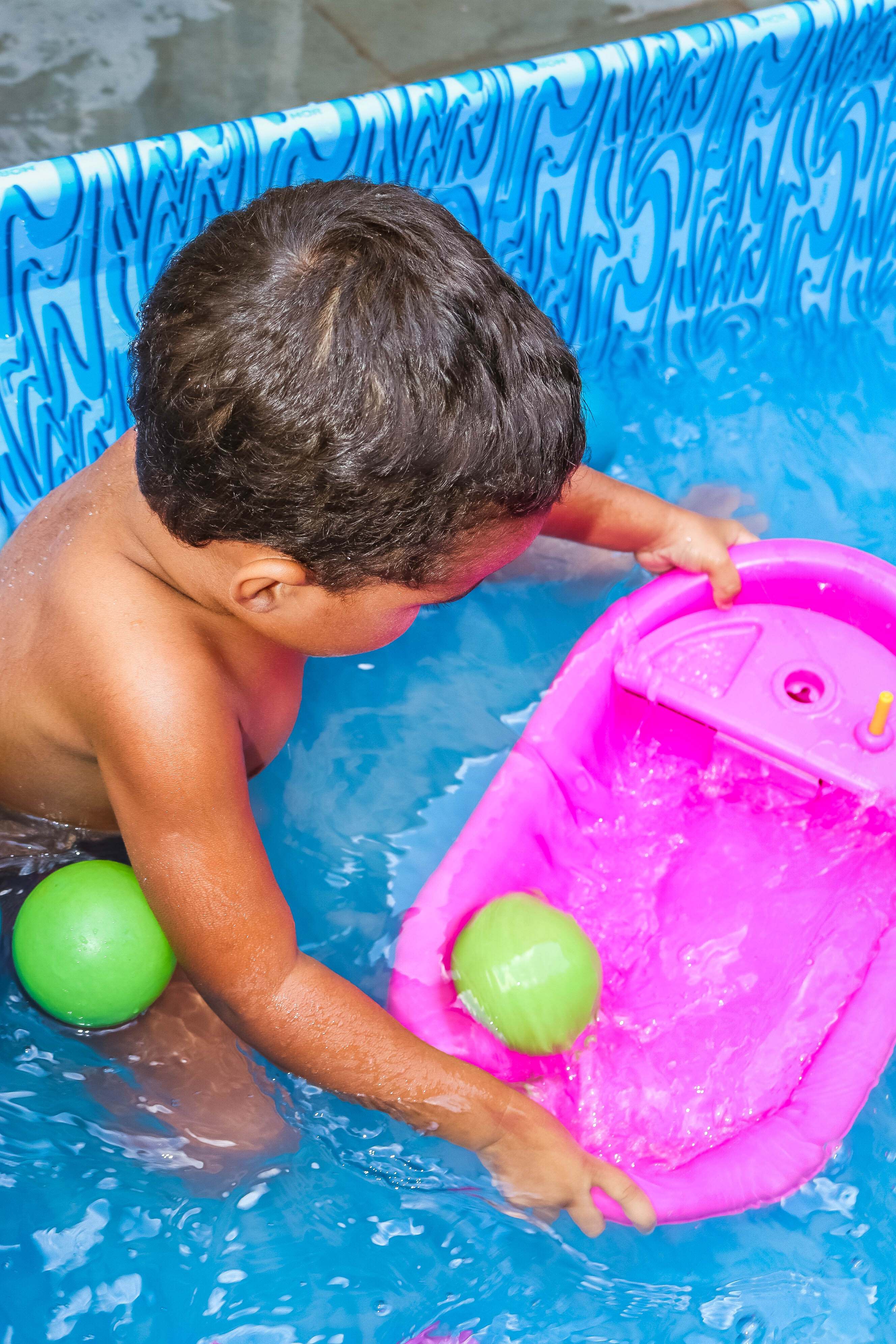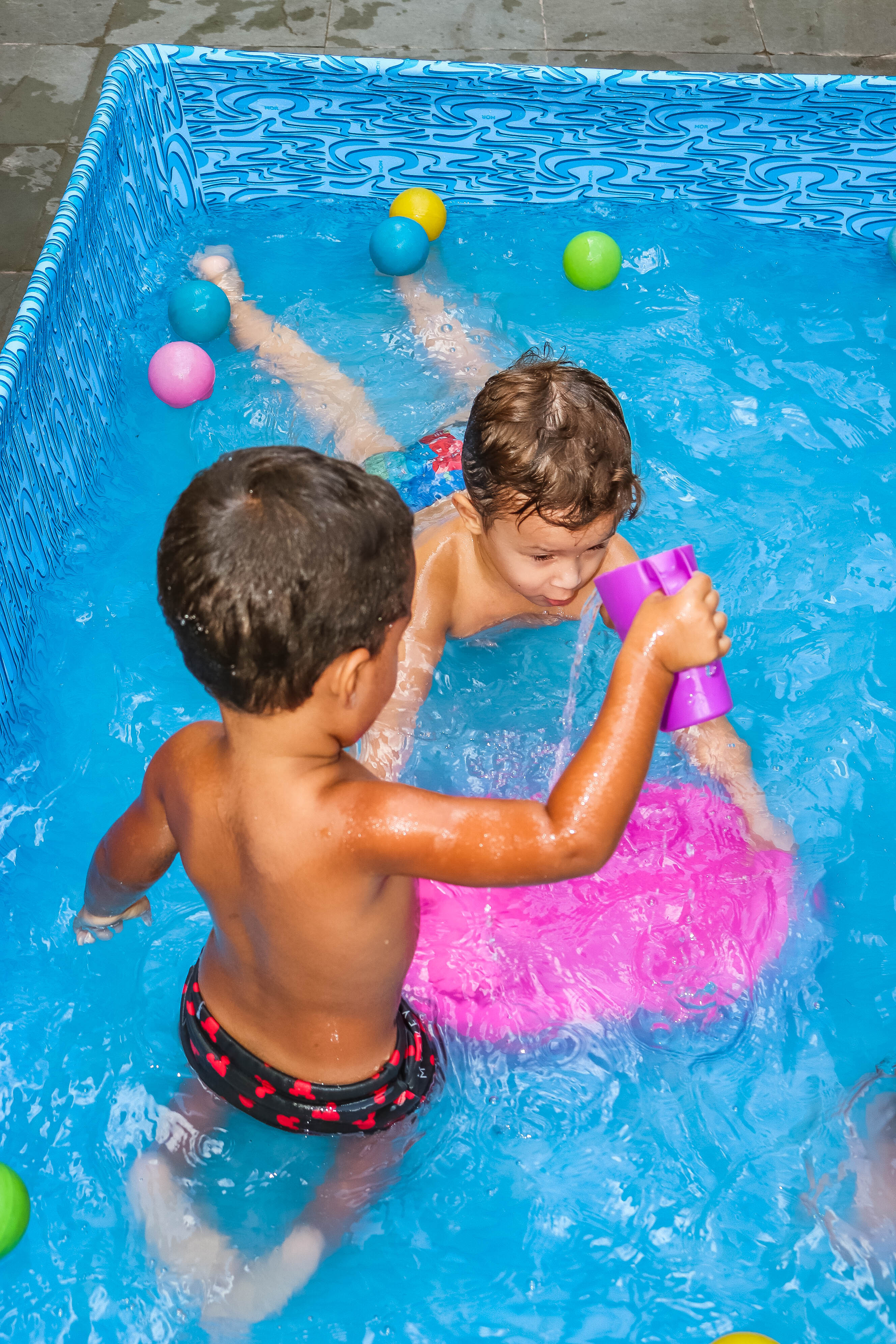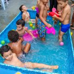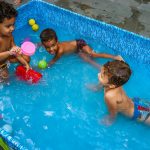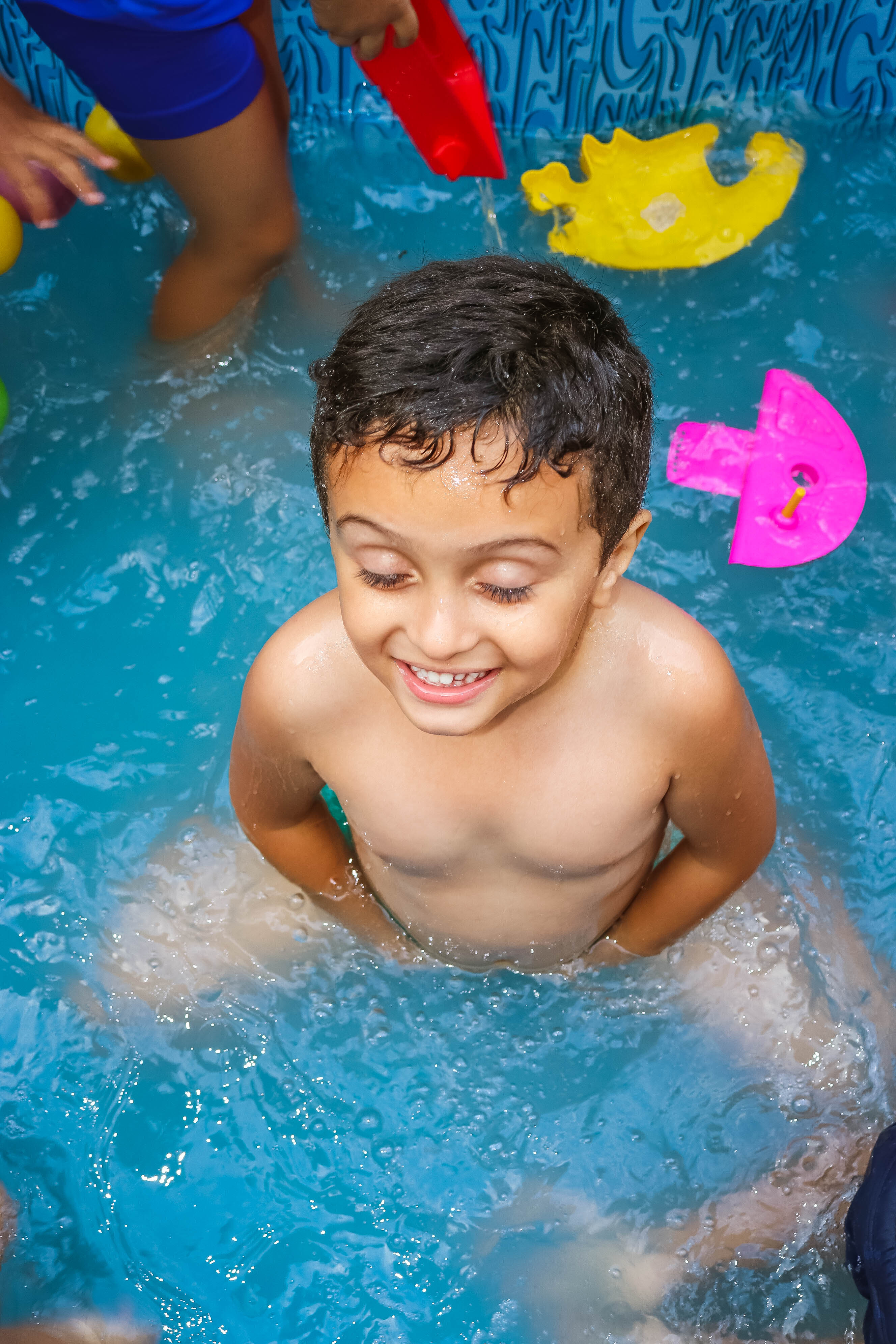 Pensando nisso, o banho de piscina propicia um excelente momento para o desenvolvimento do brincar e do criar.