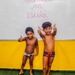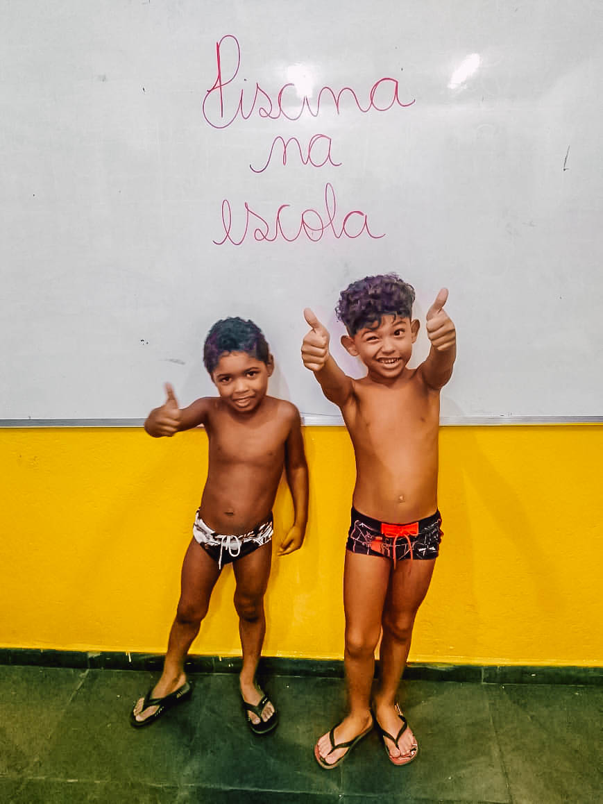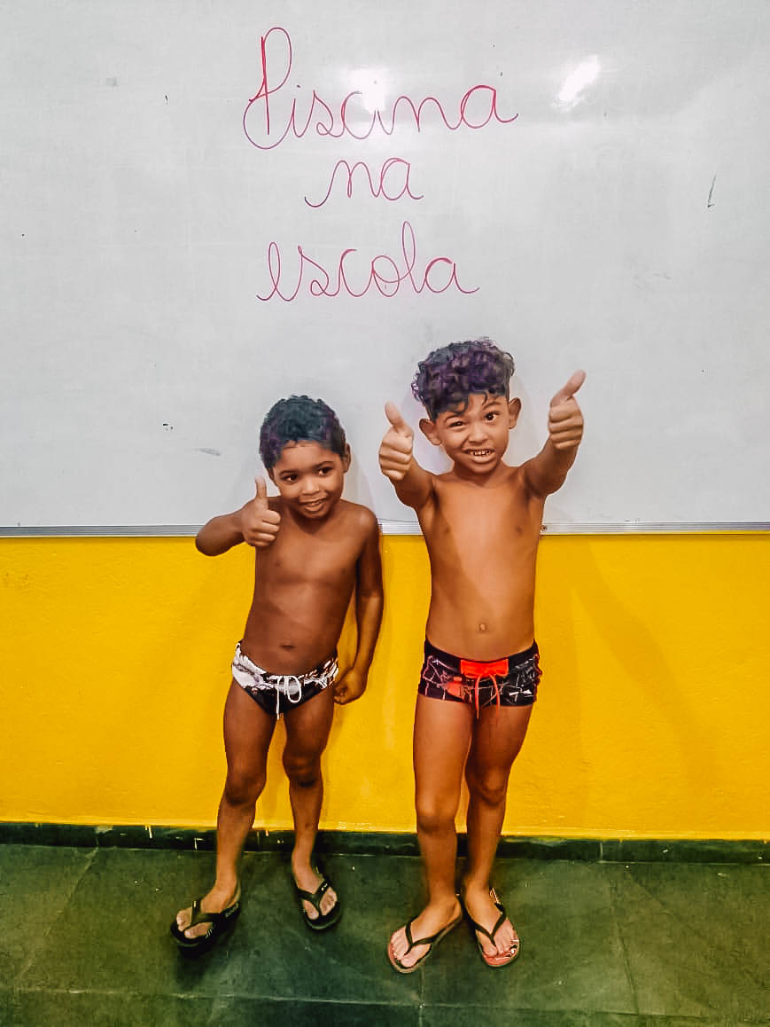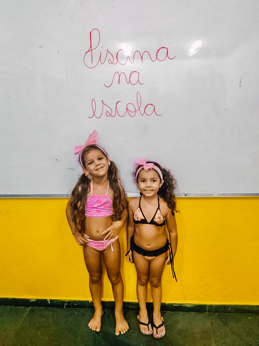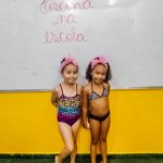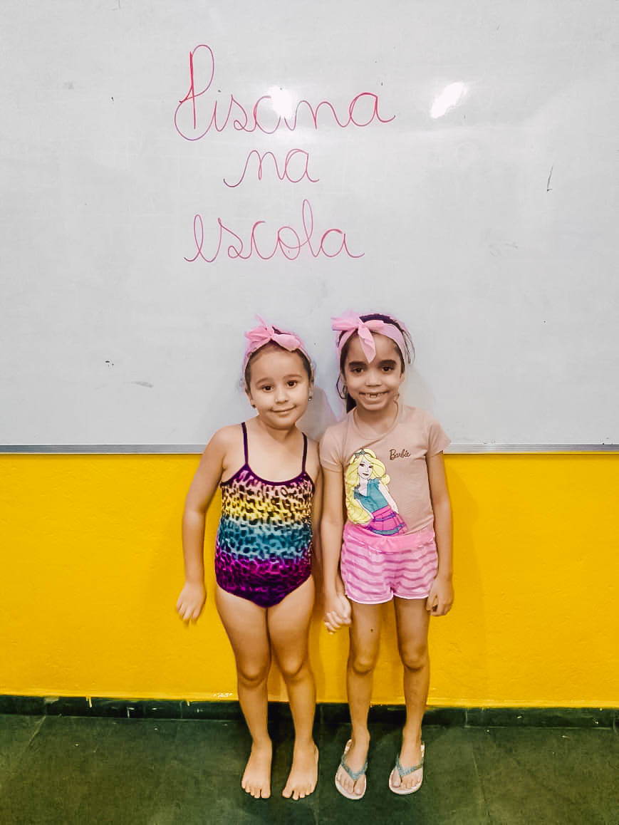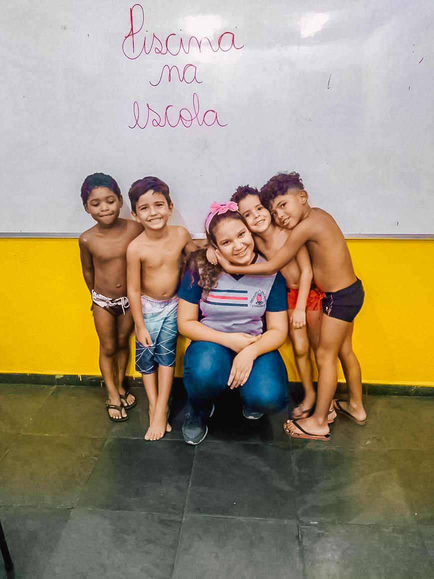 O banho de piscina é uma atividade recreativa que estimula a socialização, a coordenação motora e o autocuidado (enxugar-se, se vestir, guardar suas roupas na mochila, entre outros).
